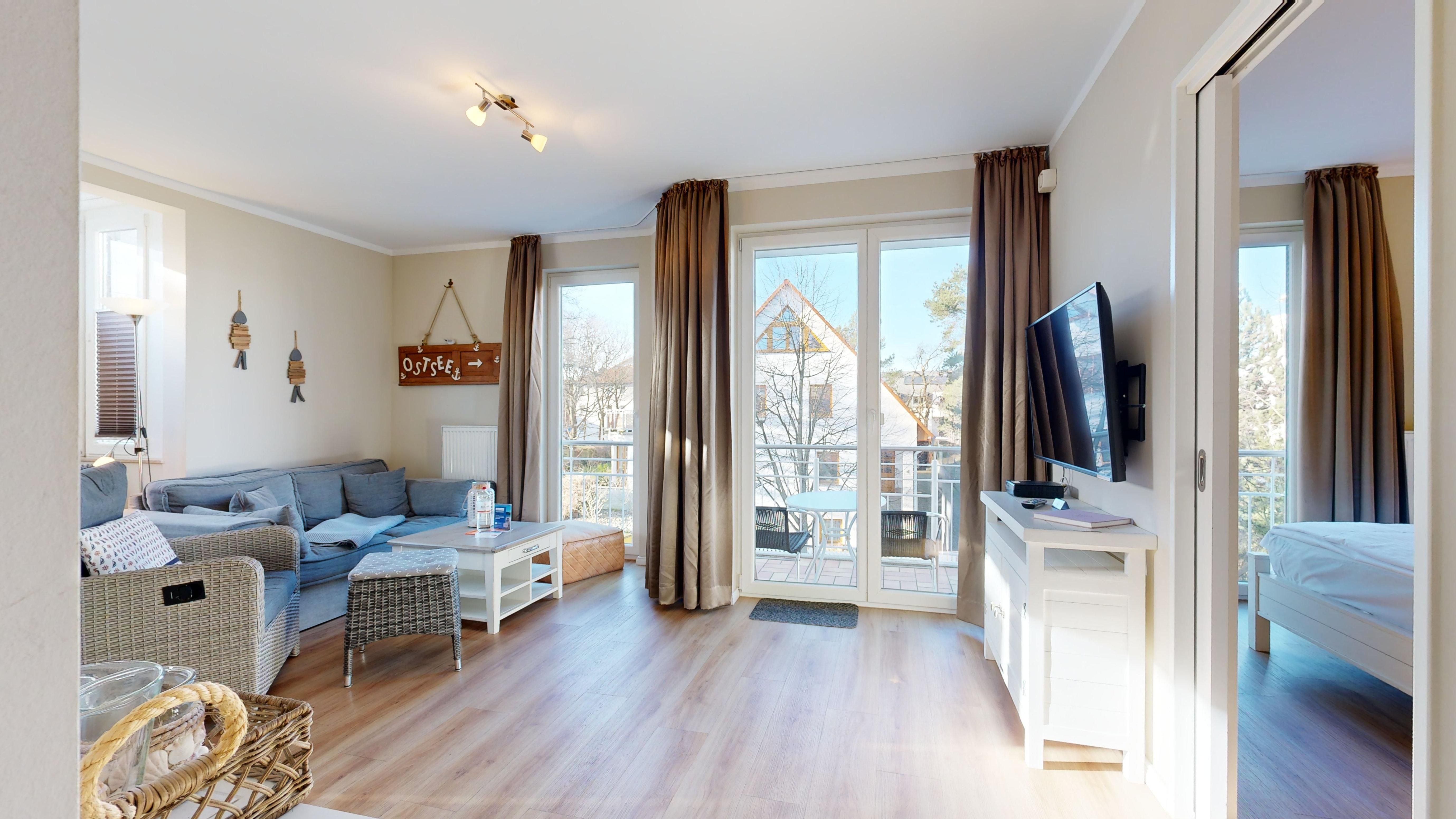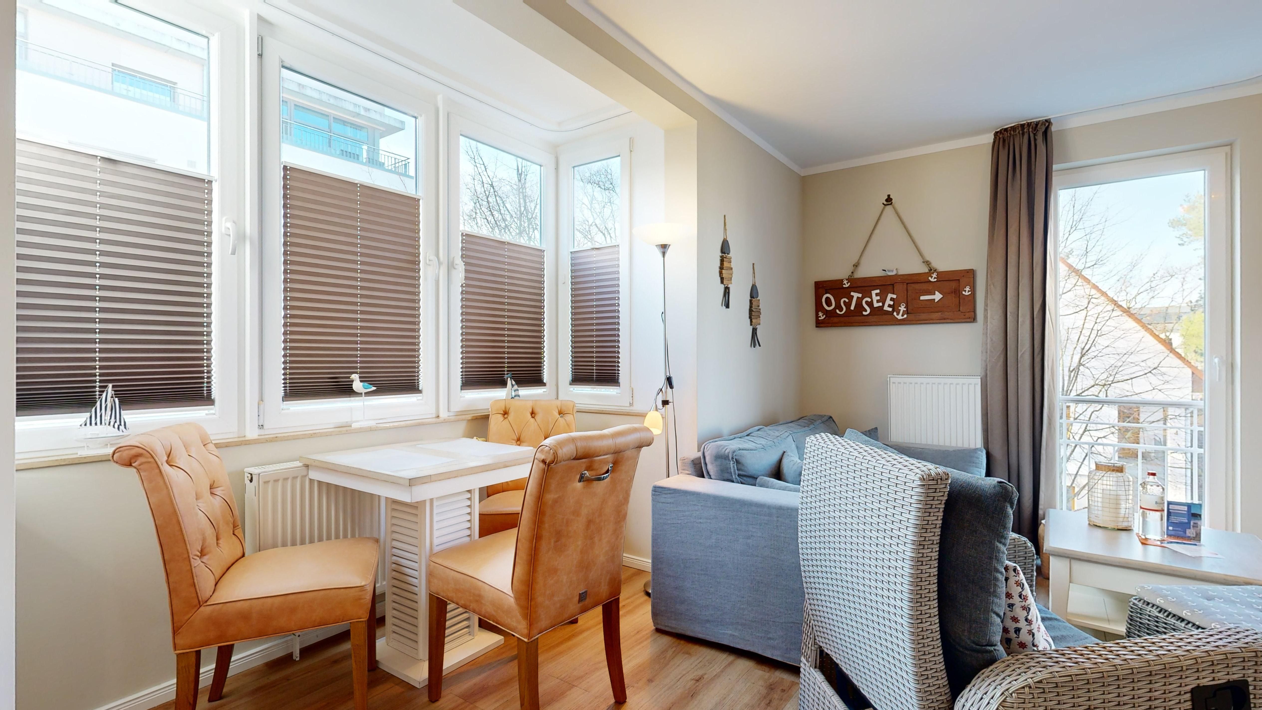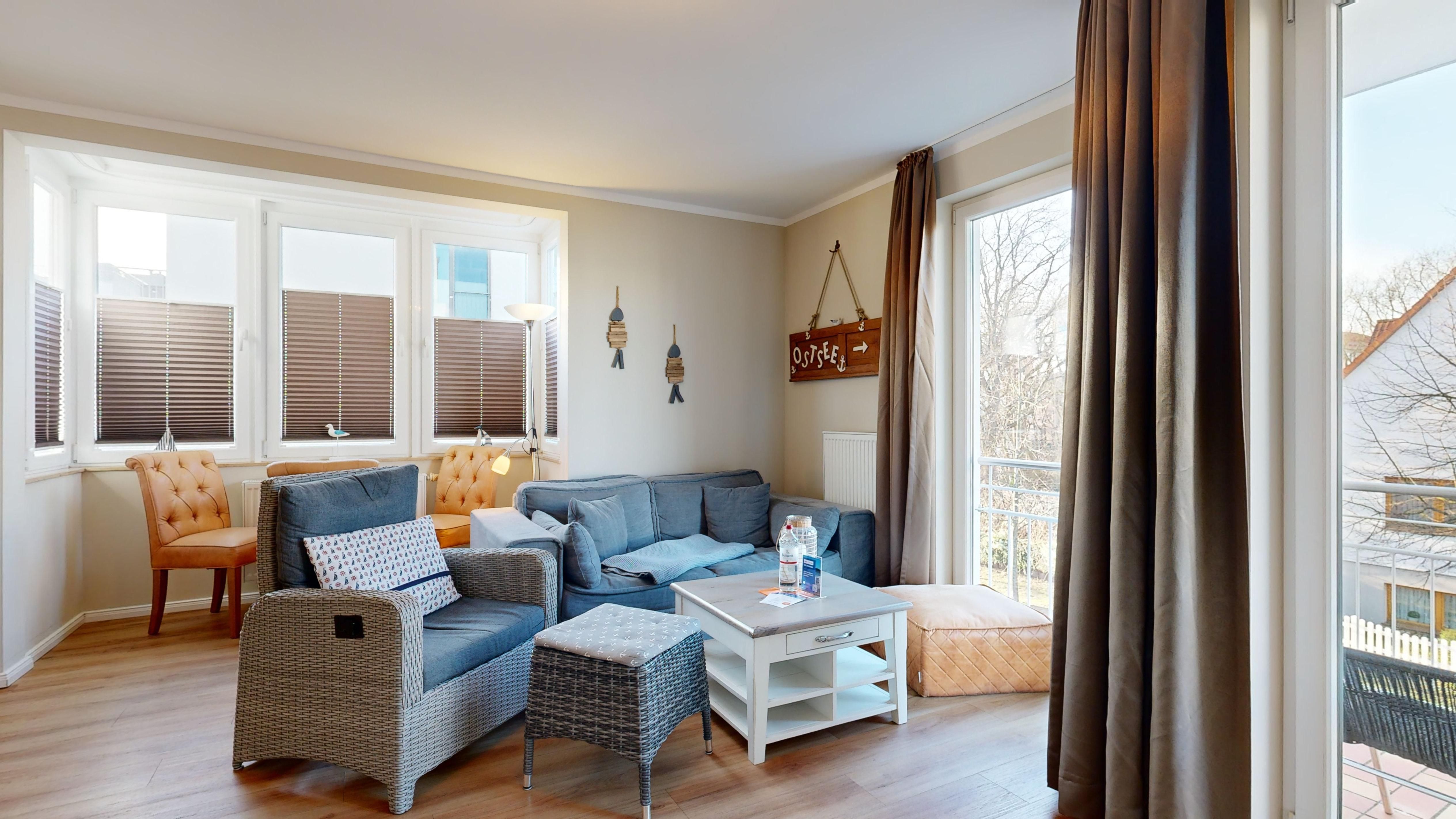 Balkon mit eingeschränktem Ostseeblick und mit Balkonmöbeln (Nord-West-Ausrichtung)