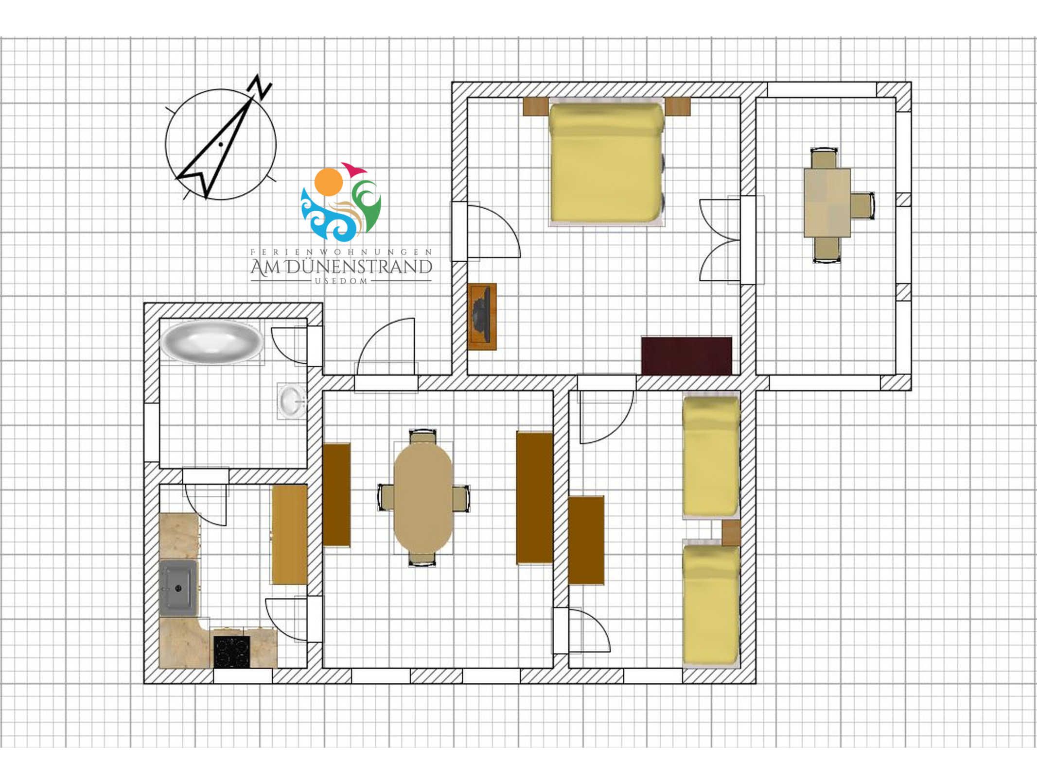 Die großzügige Ferienwohnung verfügt über zwei Schlafzimmer. Das große Schlafzimmer ist mit einem Doppelbett ausgestattet und verfügt über eine schöne Veranda mit Meerblick zum entspannen. Das zweite Schlafzimmer verfügt über zwei Einzelbetten.Vom Esszimmer gelangt man in die voll ausgestattete, separate Küche und das Wannenbad. Die Wohnung besticht durch ihre komfortable Ausstattung, die Größe und die direkte Nähe zum schönen Ostseestrand.
