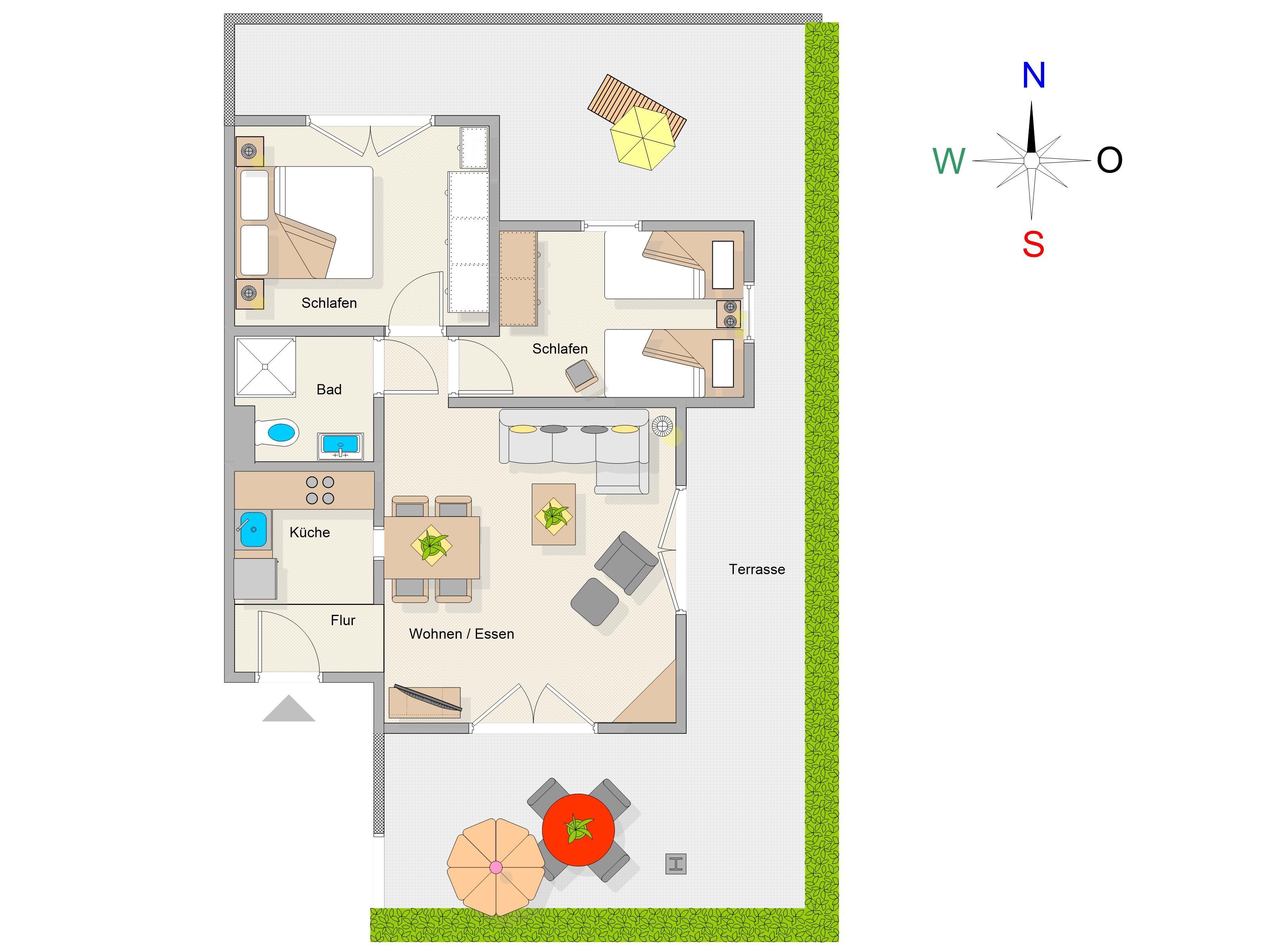 DIE WOHNUNG MÜHLENFALTER: 3-RAUM-FEWO MIT RUNDUM-TERRASSE (SÜD UND NORD)