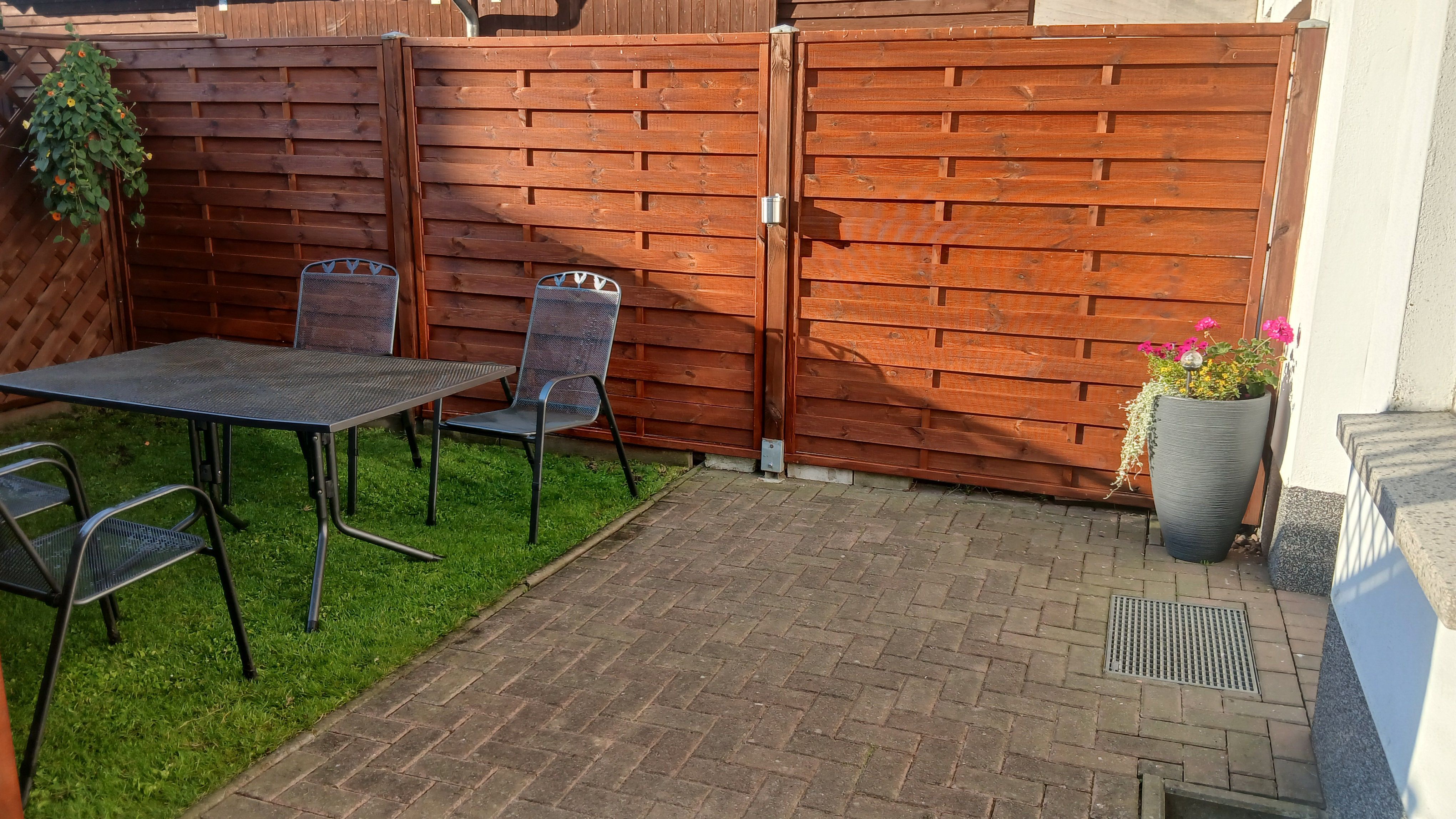 Auf dem Grundstück steht unseren Gästen eine möbilierte Sitzecke mit Grill zur Verfügung.