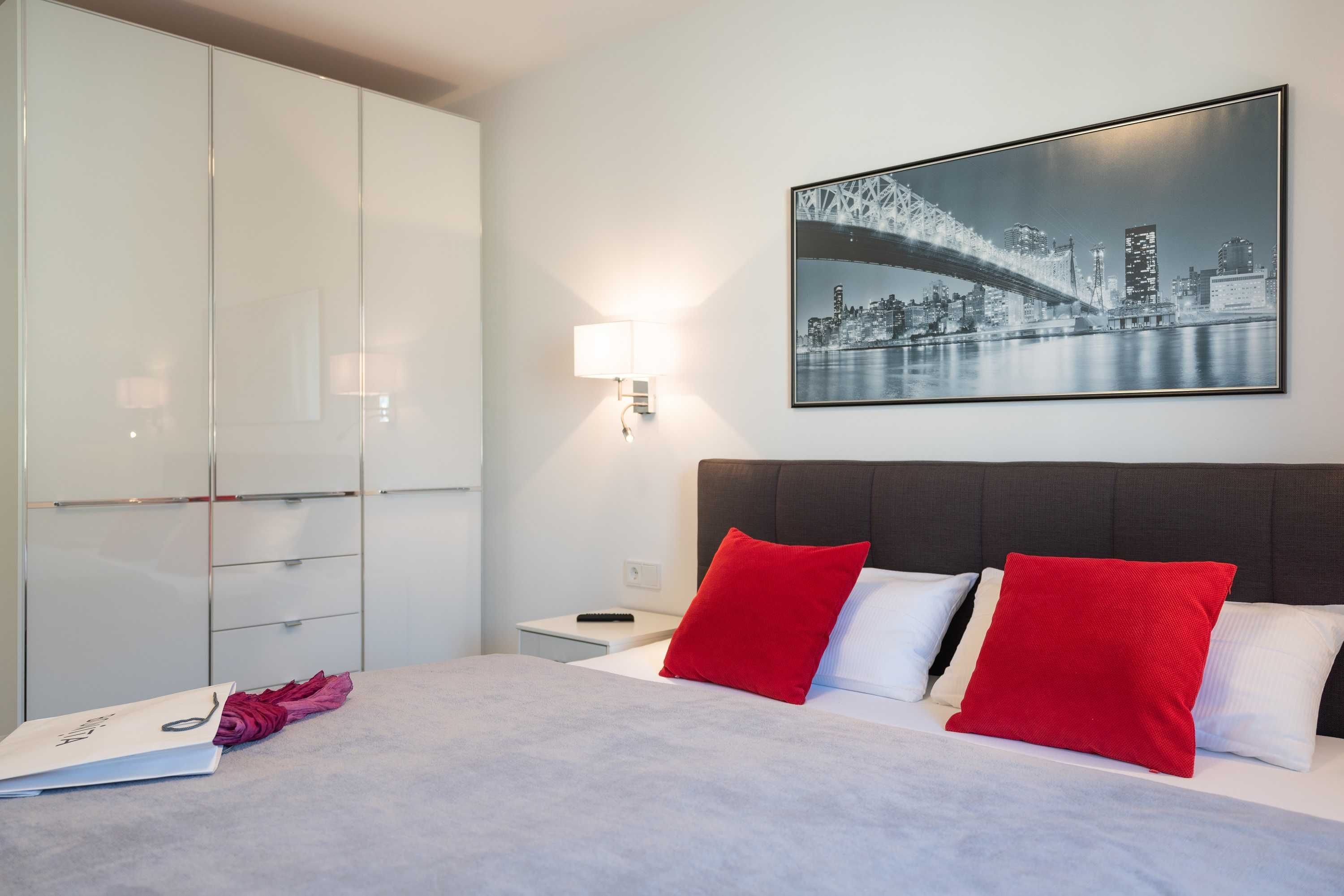 Diese luxuriöse 4-Zimmer-Wohnung im ersten Obergeschoss von Haus 3 (Aufzug vorhanden) mit Platz für maximal 6 Personen sowie einem Kleinkind bis 2 Jahre im Babybett verfügt über eine Wohnfläche von 119 m² und hat 3 Schlafzimmer sowie 2 voll ausgestattete Duschbäder. Die große Sonnenterrasse mit 17 m² liegt in idealer Süd-Ausrichtung. Die Wohnung ist modern eingerichtet mit offenem Wohn-Essbereich, großem Esstisch, Ledersofa sowie Smart-TV (inkl. Sky-Abo). Die hochwertig ausgestattete Küche, offen zum Wohnbereich, lässt keine Wünsche offen. Erholsamer Schlaf in den beiden Schlafzimmern mit Boxspringbetten und Smart-TV ist garantiert. Im dritten Schlafzimmer befindet sich ein bequemes Schlafsofa (Liegefläche: 1,80 x 2,00 m) und ein Smart-TV. Das Badezimmer en Suite ist mit einer begehbaren Dusche ausgestattet. Auf dem großen, überdachten Sonnenbalkon mit Essgruppe und zwei Relax-Sesseln, Fußhockern sowie einem Sonnenschirm können Sie die Seele baumeln lassen.