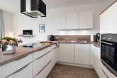Diese lichtdurchflutete, helle 4-Zimmer-Wohnung im obersten Geschoss von Haus 3 (Aufzug vorhanden) mit Platz für maximal 6 Personen verfügt über eine Wohnfläche von 94 m² und hat 3 Schlafzimmer sowie 2 voll ausgestattete Duschbäder. Die große Sonnenterrasse mit 17 m² liegt in idealer Süd-Ausrichtung. Die Wohnung ist modern eingerichtet mit offenem Wohn-Essbereich, großem Esstisch, Ledersofa sowie Smart-TV (inkl. Sky-Abo). Die hochwertig ausgestattete Küche, offen zum Wohnbereich, lässt keine Wünsche offen. Erholsamer Schlaf in den beiden Schlafzimmern mit Boxspringbetten und Smart-TV ist garantiert. Im dritten Schlafzimmer befindet sich ein bequemes Schlafsofa (Liegefläche: 1,60 x 2,00 m), Schreibtisch und ein Smart-TV. Auf dem großen, überdachten Sonnenbalkon mit Essgruppe und zwei Relax-Sesseln, Fußhockern sowie einem Sonnenschirm können Sie die Seele baumeln lassen.