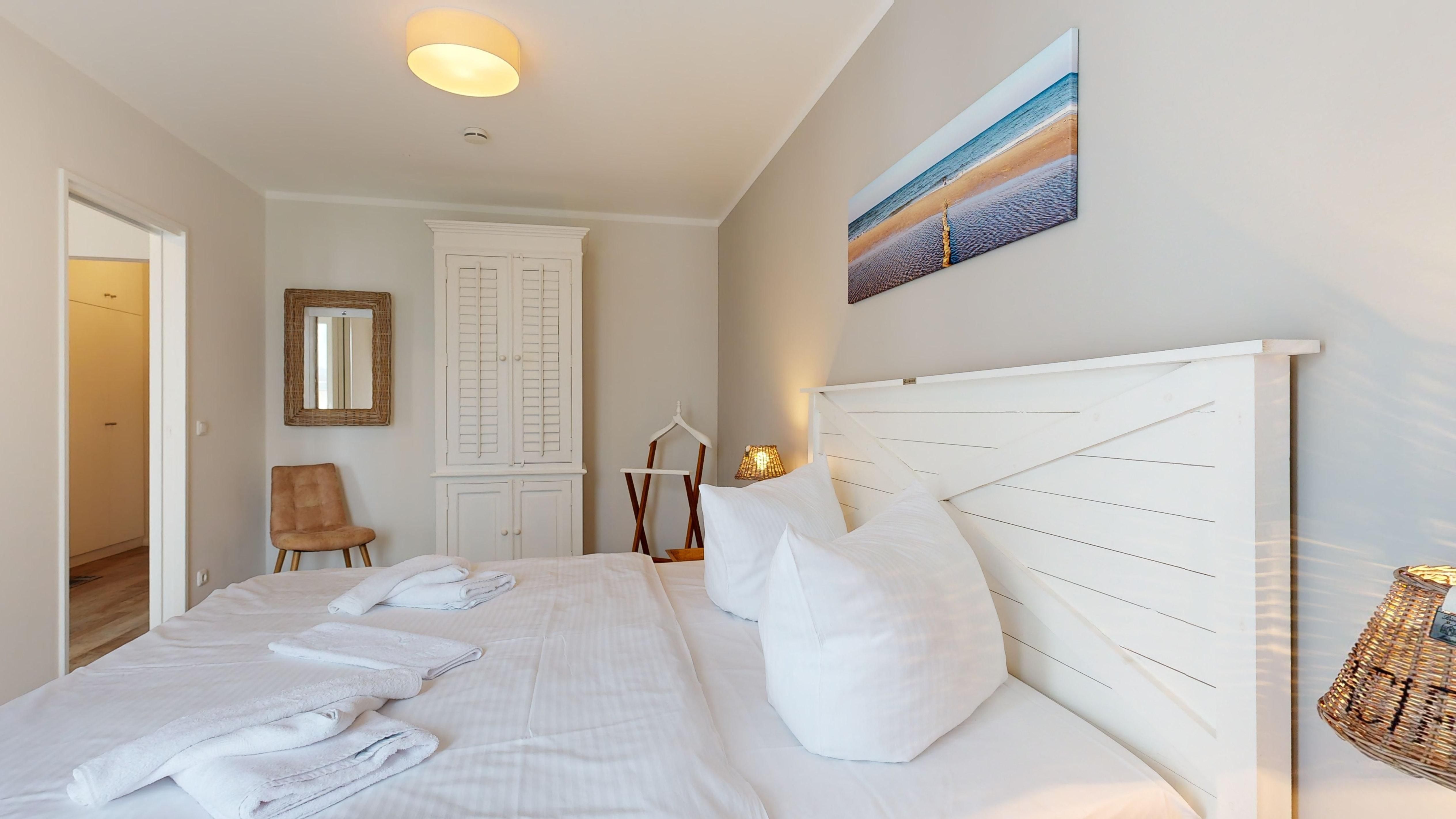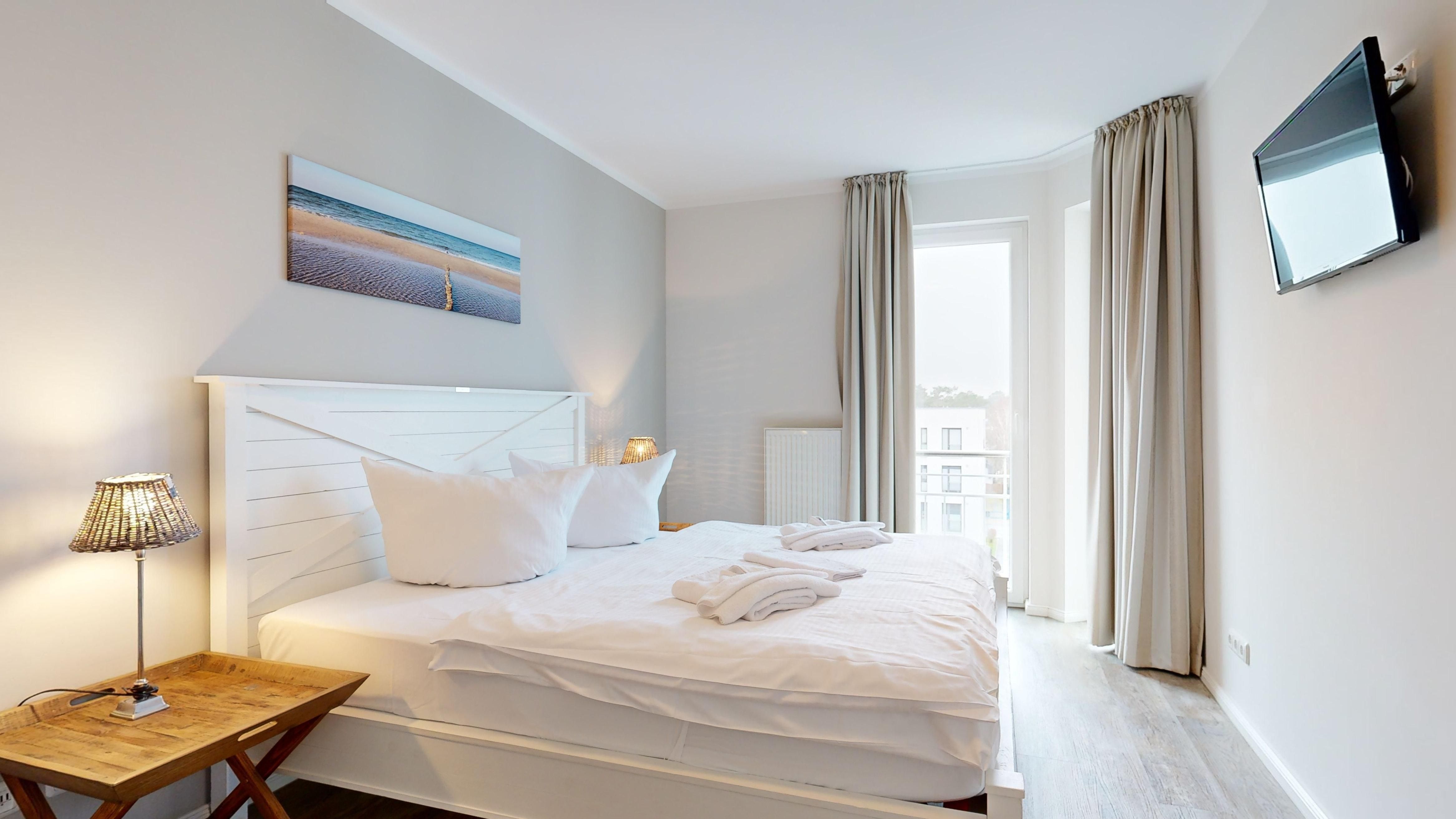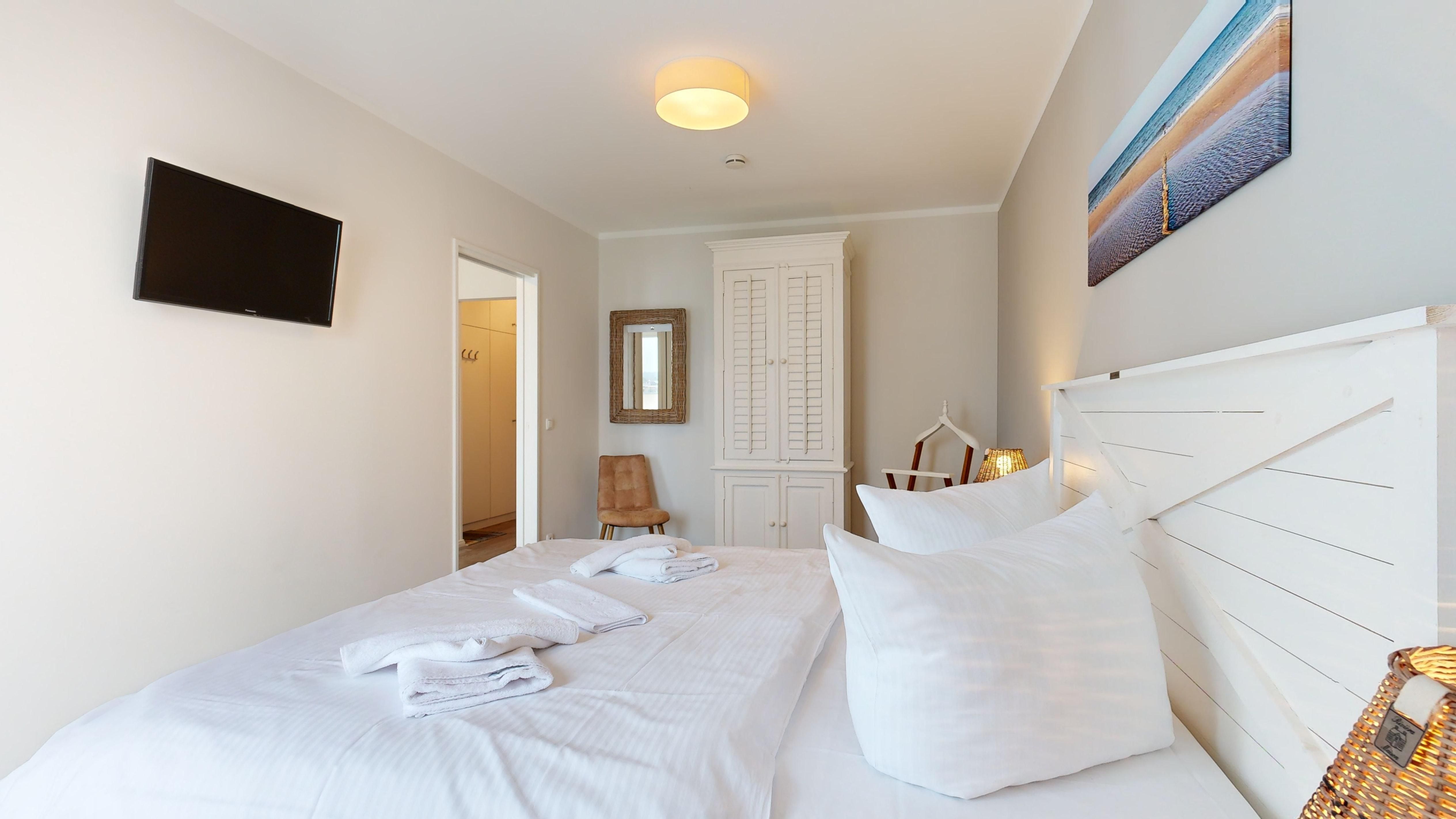 1 Schlafzimmer mit einem Doppelbett, Kleiderschrank und TV
