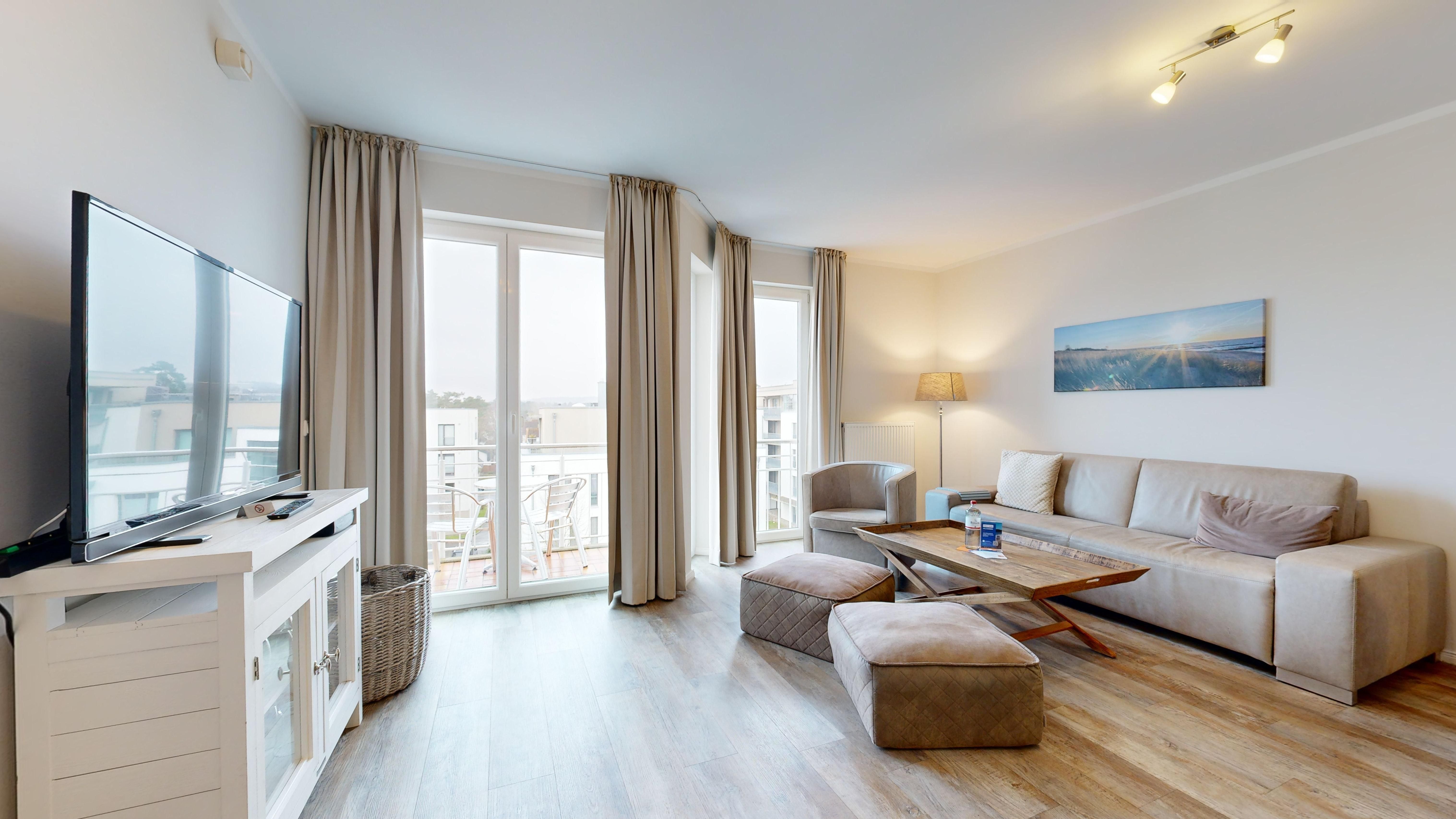 Ferienwohnung mit hochwertiger Möblierung und Balkon für 2-4 Personen im 3. OG mit 1 Schlafzimmer (2 Zimmer / 57 m²):