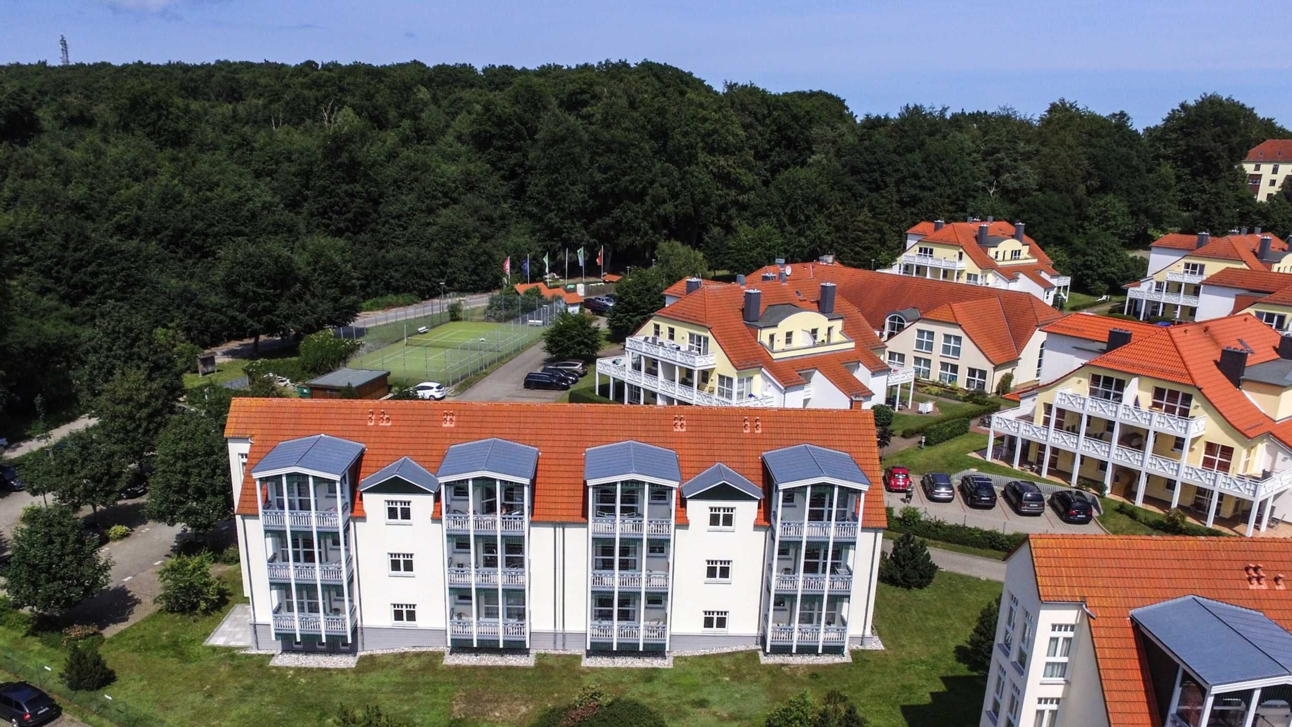 Die Vineta Ferienresidenz Usedom liegt im Bernsteinbad Koserow, in der Inselmitte zwischen Ostsee und Achterwasser, einer Lagune des Peenestroms.