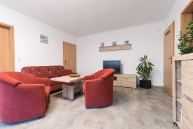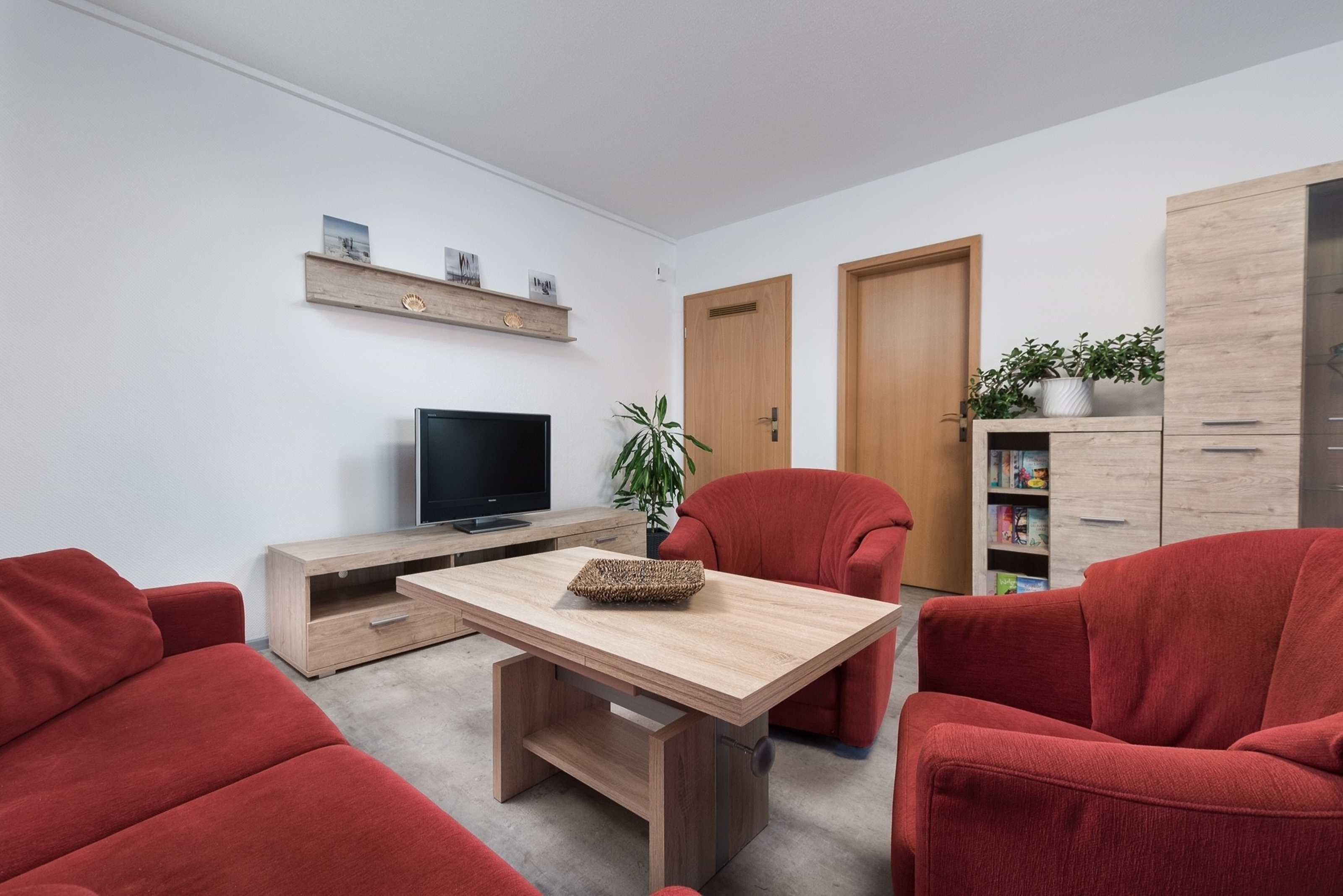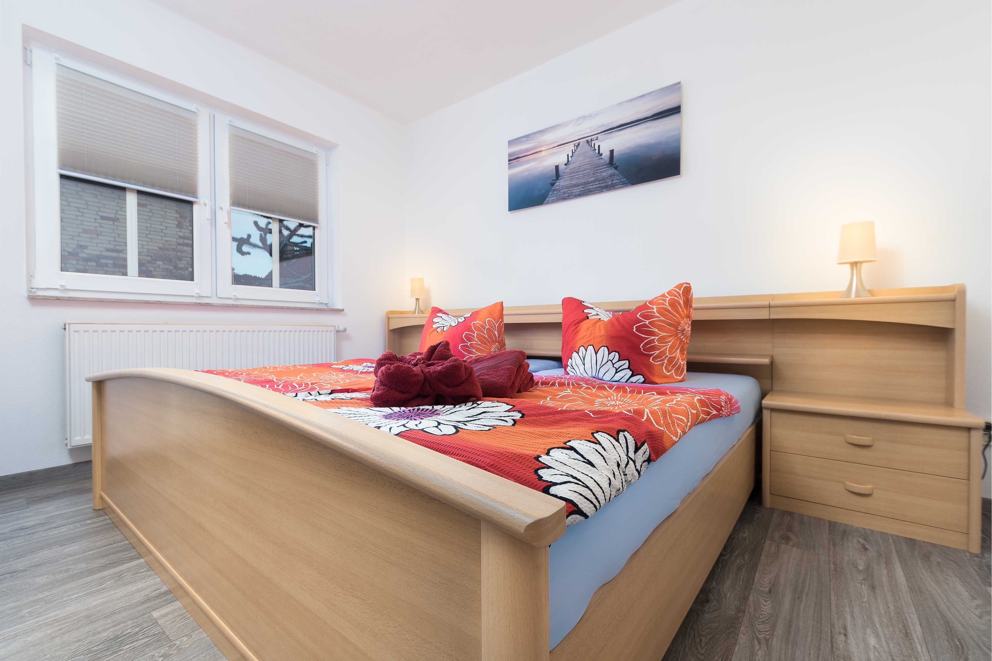 Die 60 qm Ferienwohnung befindet sich im Erdgeschoss und ist für bis zu vier Personen geeignet. Die Wohnung verfügt über ein gemütliche Wohnzimmer mit Sitzecke, TV und Essecke sowie ein Schlafzimmer mit Doppelbett und ein Schlafzimmer mit einem Etagenbett (auch für Erwachsene geeignet). Die separate Küche ist mit einem Backofen, Spülmaschine, Mikrowelle und Kühlschrank ausgestattet. Bad mit Dusche und WC. Die Erstausstattung Bettwäsche ist im Mietpreis bereits enthalten, ein Handtuchpaket kann gegen eine Gebühr hinzugebucht werden. Bei einer Belegung mit zwei Personen steht nur das Schlafzimmer mit dem Doppelbett zur Verfügung.