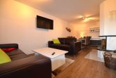 Der Wohn- und Küchenbereich ist kombiniert. Im Wohnbereich befinden sich eine hochwertige Sofa-Gruppe und ein Kamin. Die Küche ist komplett ausgestattet, u.a. mit Herd, Backofen, Kühlschrank mit Tiefkühlfach, Tiefkühlschrank, Geschirrspülmaschine, Kaffeemaschine, Toaster und Wasserkocher. Hier gibt es auch den Essbereich.