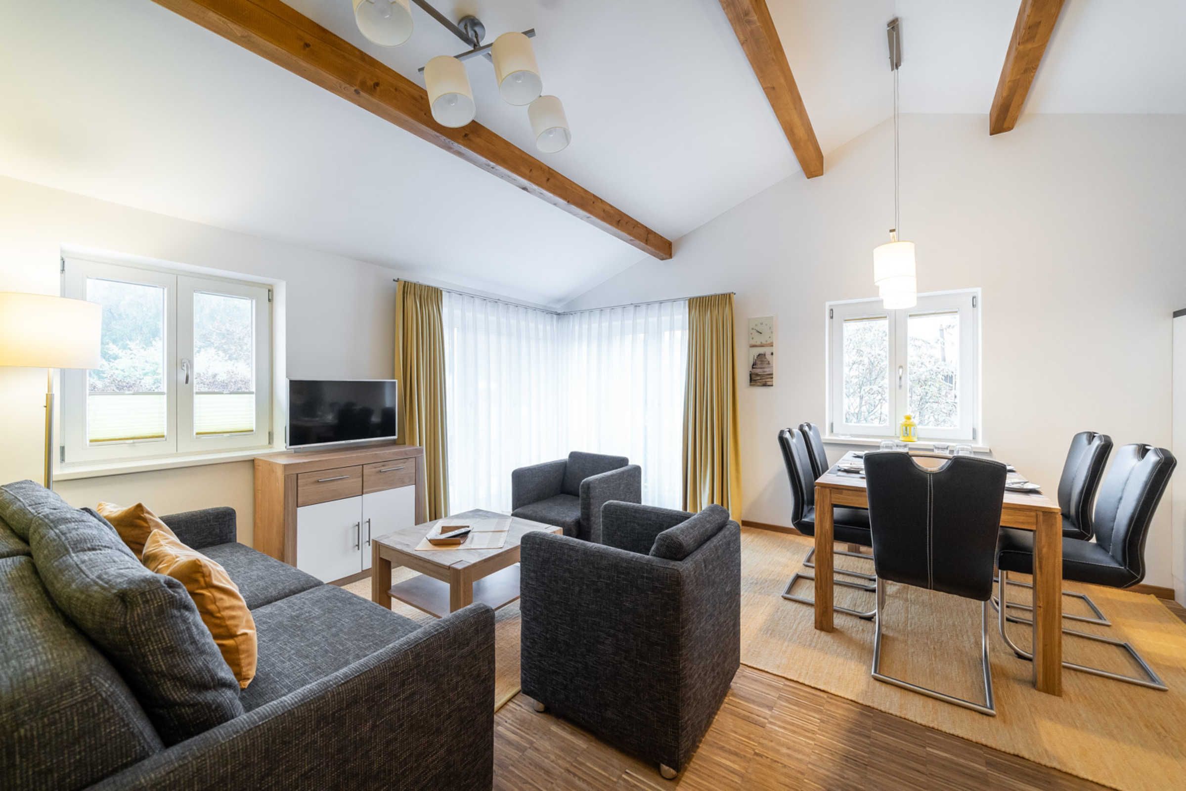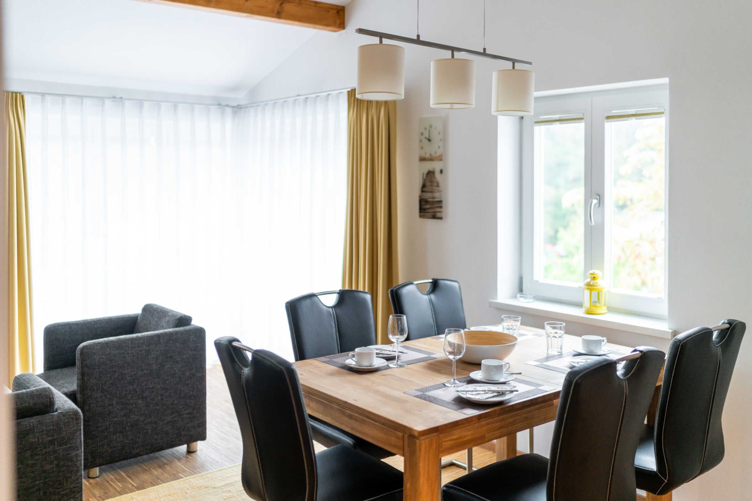 Ferienwohnung mit Wohn-/ Essraum mit Doppelbett-Schlafsofa und 2 separaten Schlafzimmenn mit Doppelbett. Bad, separates WC und Balkon im 2. OG. Aufzug und Tiefgaragenstellplatz vorhanden.