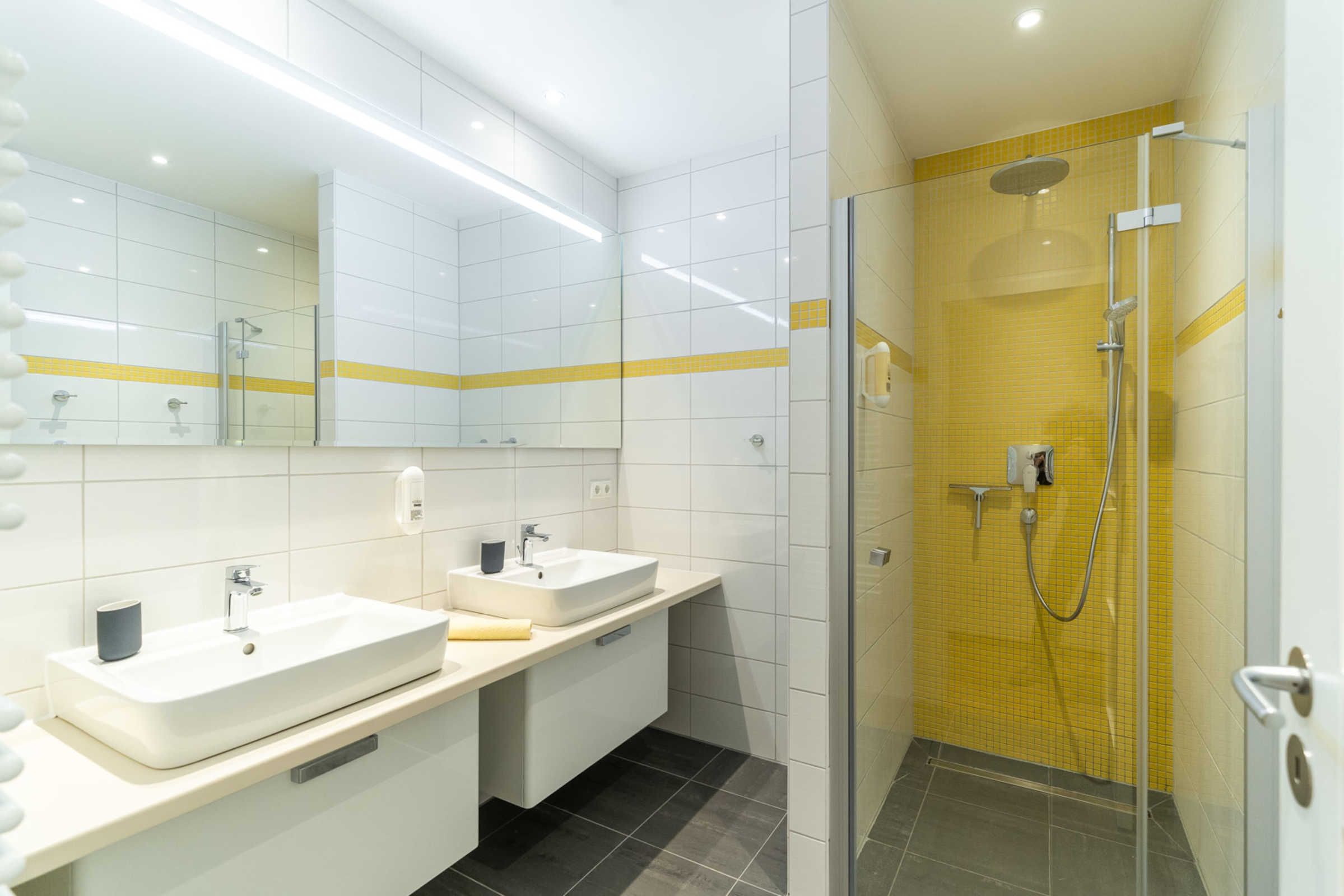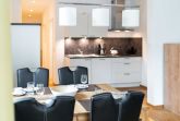 An den gemütlich eingerichteten Wohnraum schließt sich eine moderne, voll ausgestattete offene Küche mit Spülmaschine, Kühlschrank, Backofen, Cerankochfeld, Kaffeemaschine, Toaster, Wasserkocher und ausreichend Geschirr an, auf dem zugehörigen Balkon kann man bereits zum Frühstück die Ostseesonne genießen. WLAN und internetfähige TV-Flachbildschirme sind in jedem Raum selbstverständlich, zwei geräumige Schlafzimmer mit großem Wandschrank und Boxspringbett sowie das schöne Bad mit ebenerdiger Überkopfdusche und WC vervollständigen die moderne Ferienwohnung Düne.