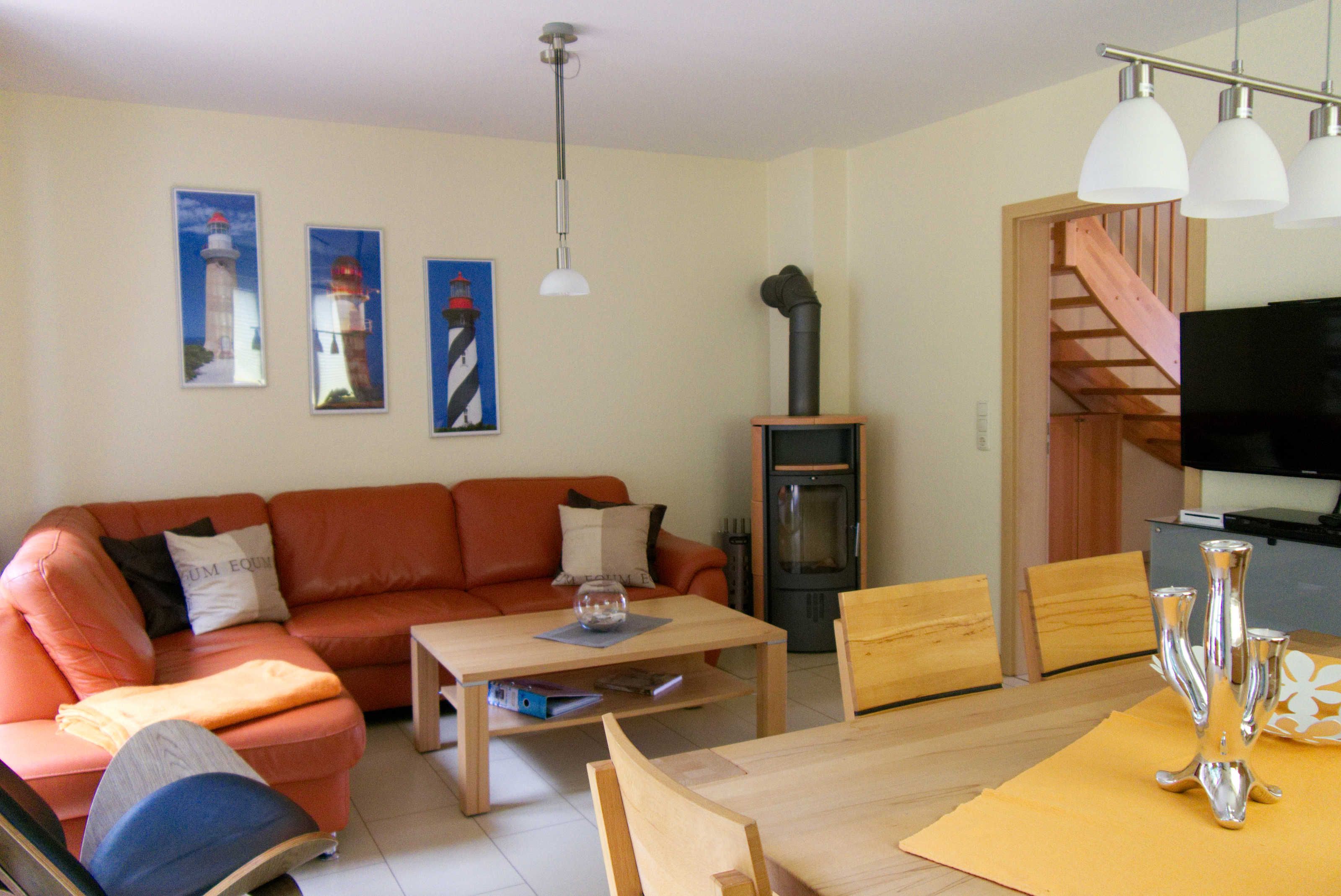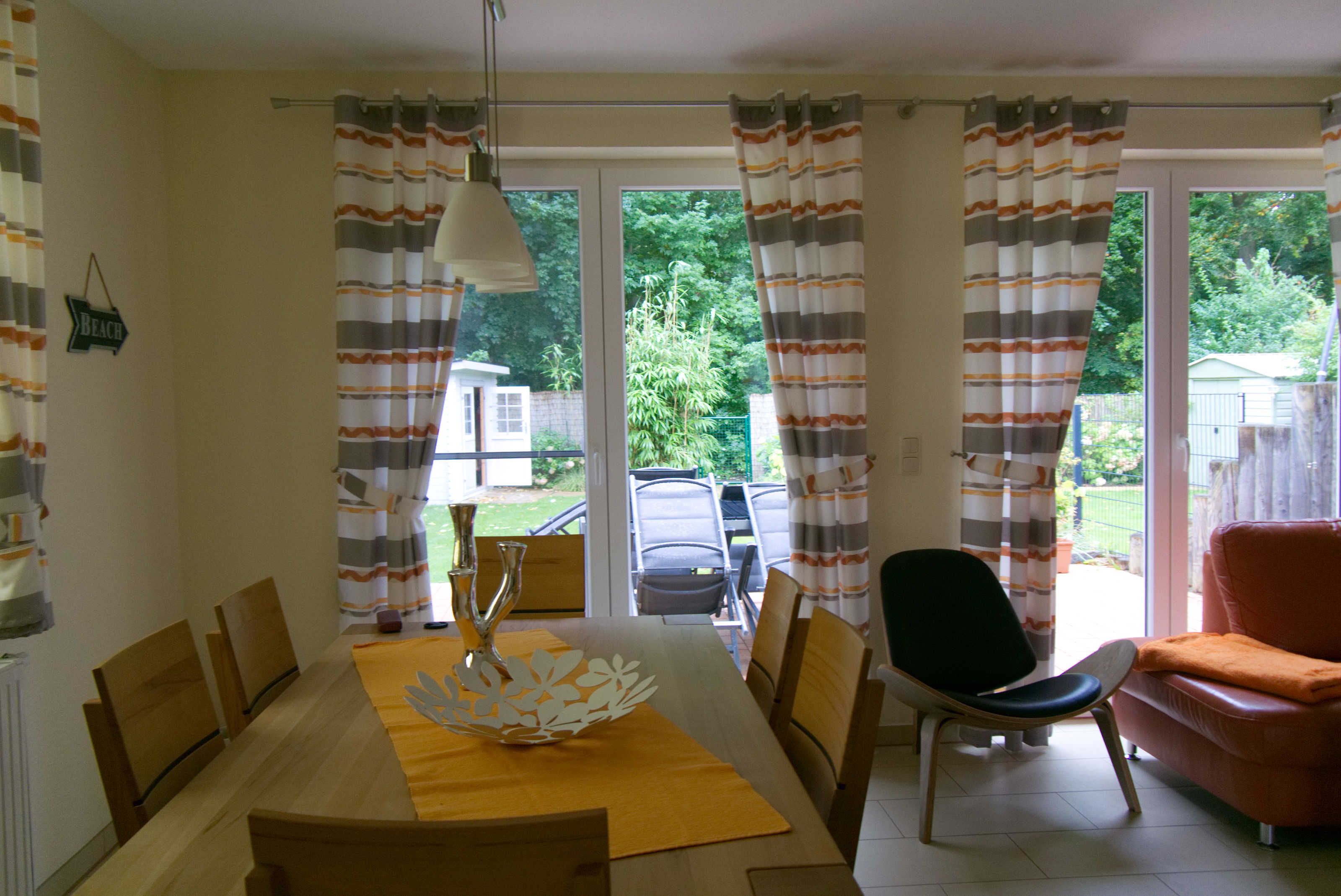 Unser Ferienhaus bietet Ihnen Komfort zu jeder Jahreszeit. Der Kamin im Wohnzimmer sorgt für wohlige Wärme im Winter, im Frühjahr und Herbst lädt ein Saunabesuch zum Aufwärmen ein und nach einem ausgiebigen Strandtag bzw. -spaziergang im Sommer kann man bei einem Grillabend auf der Terrasse mit Blick in den Garten und den Wald den Urlaubstag genießen und ausklingen lassen.