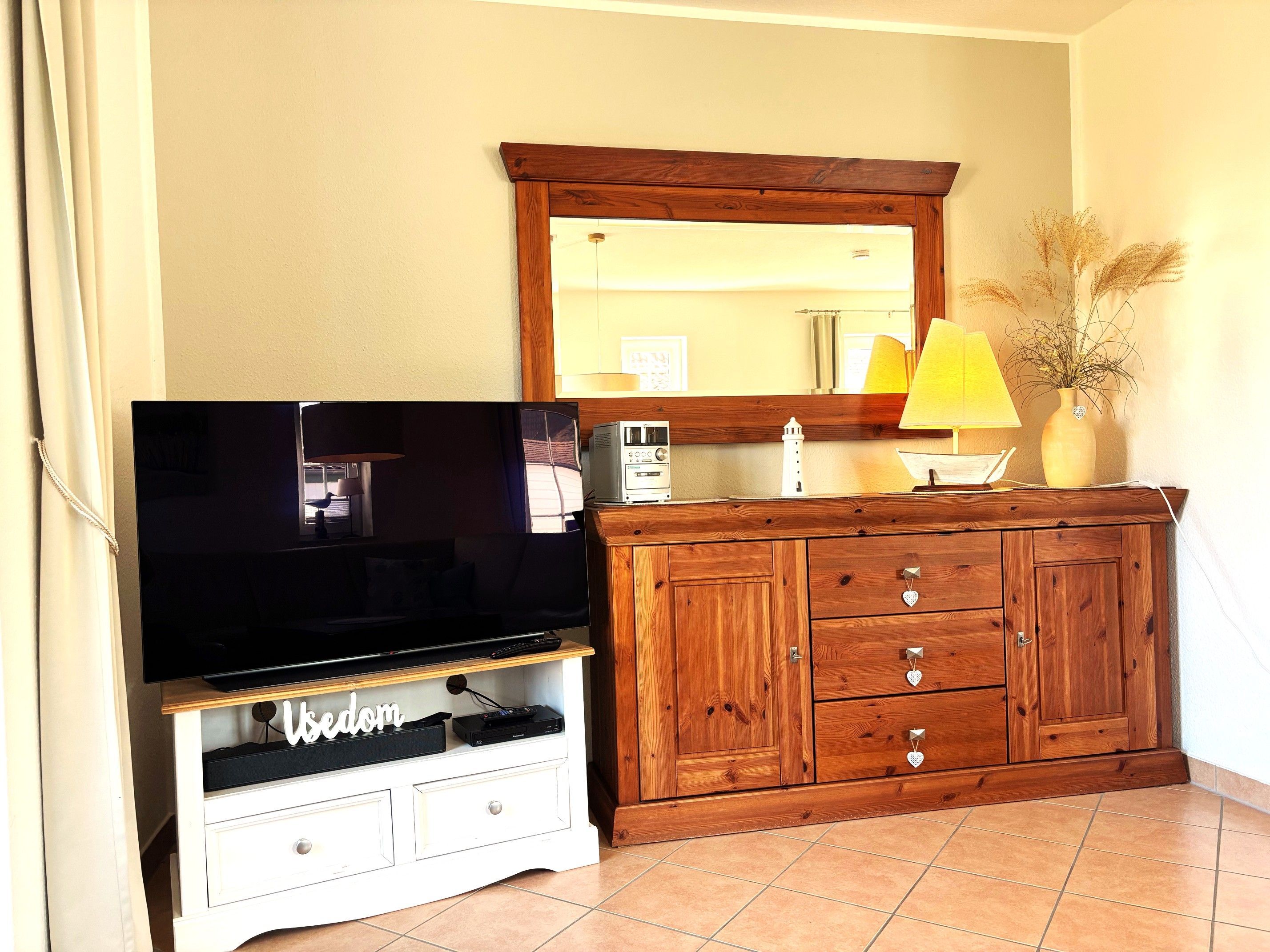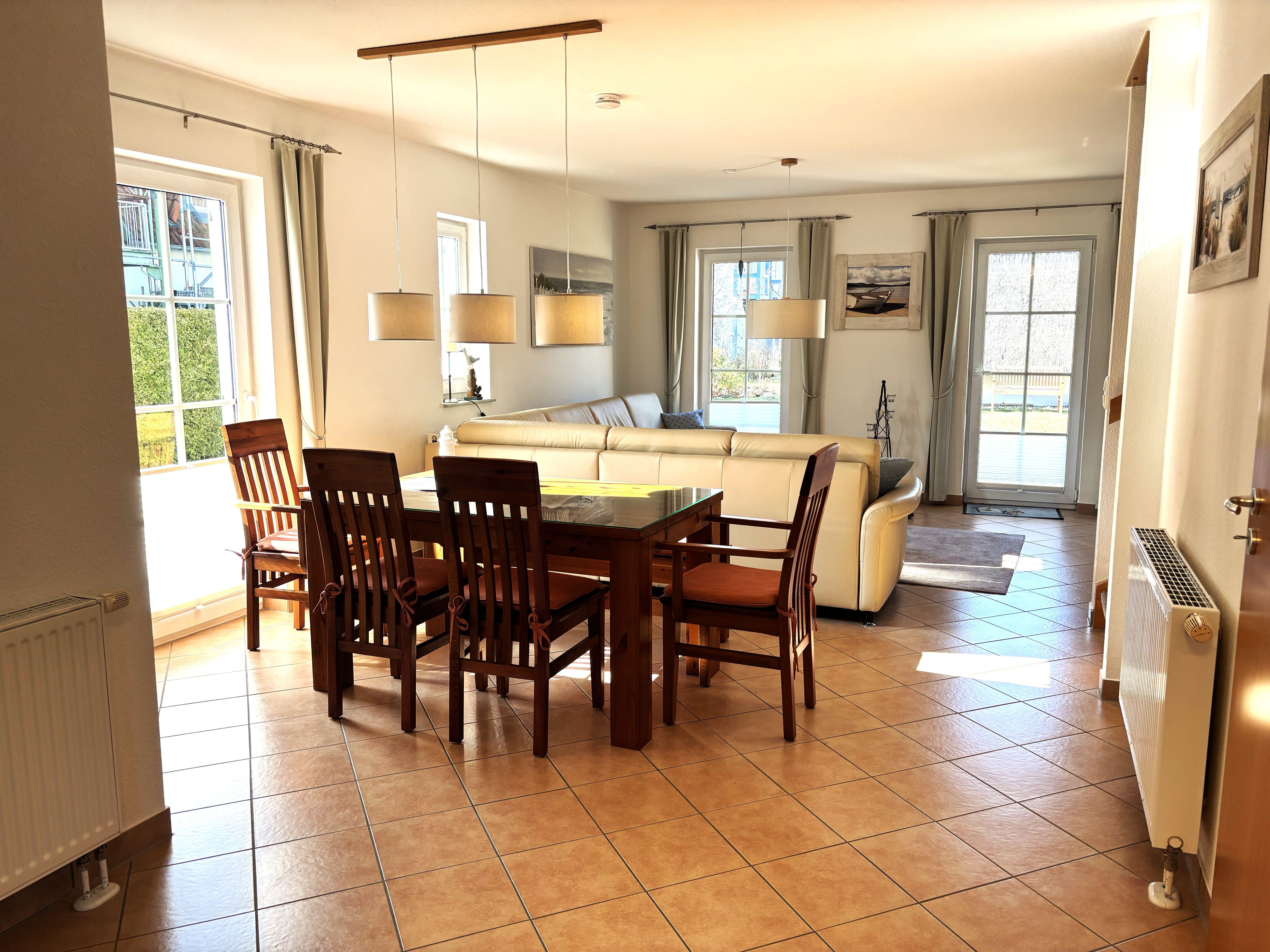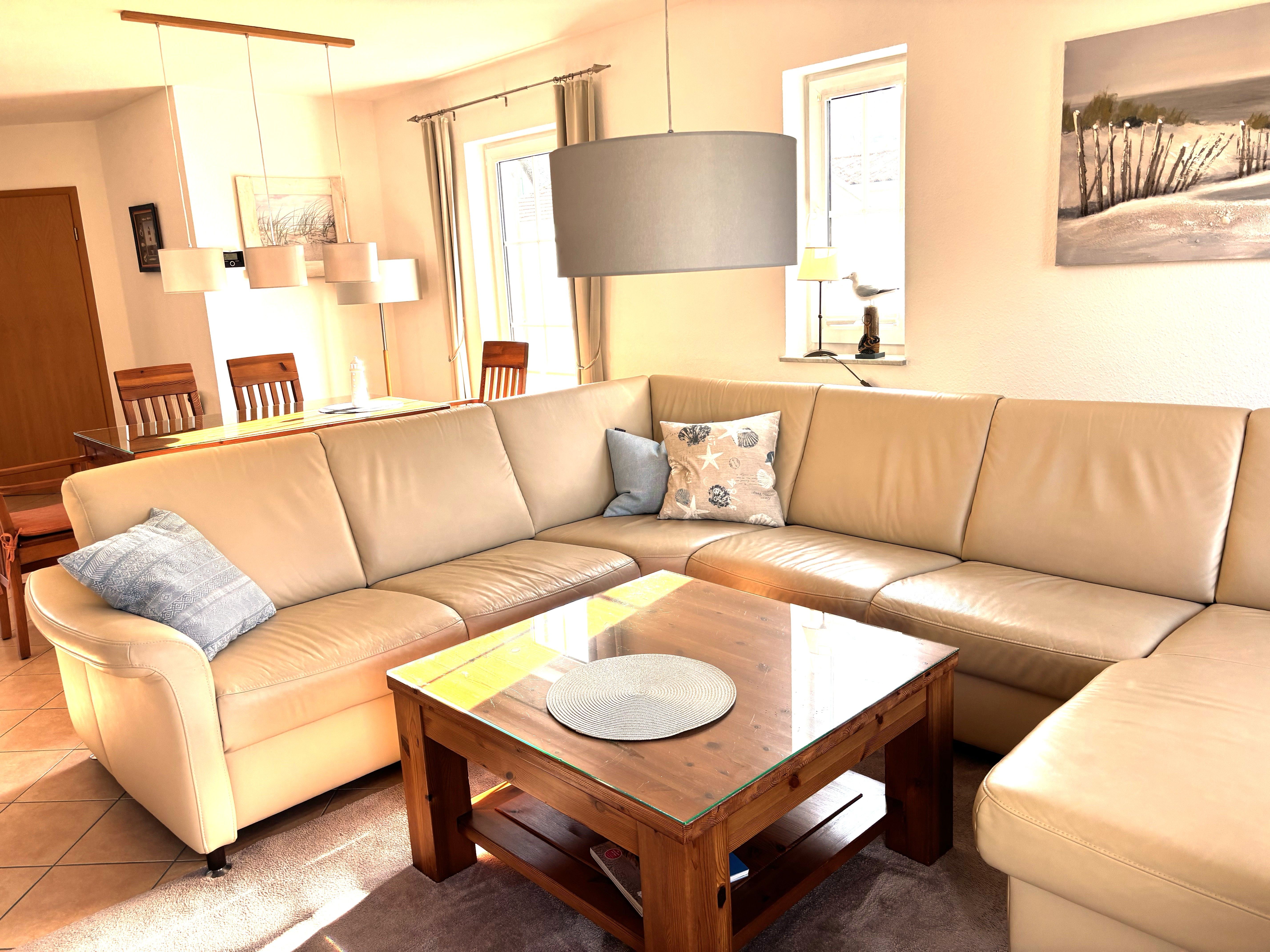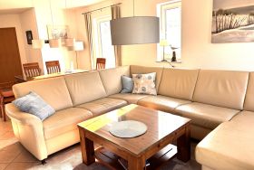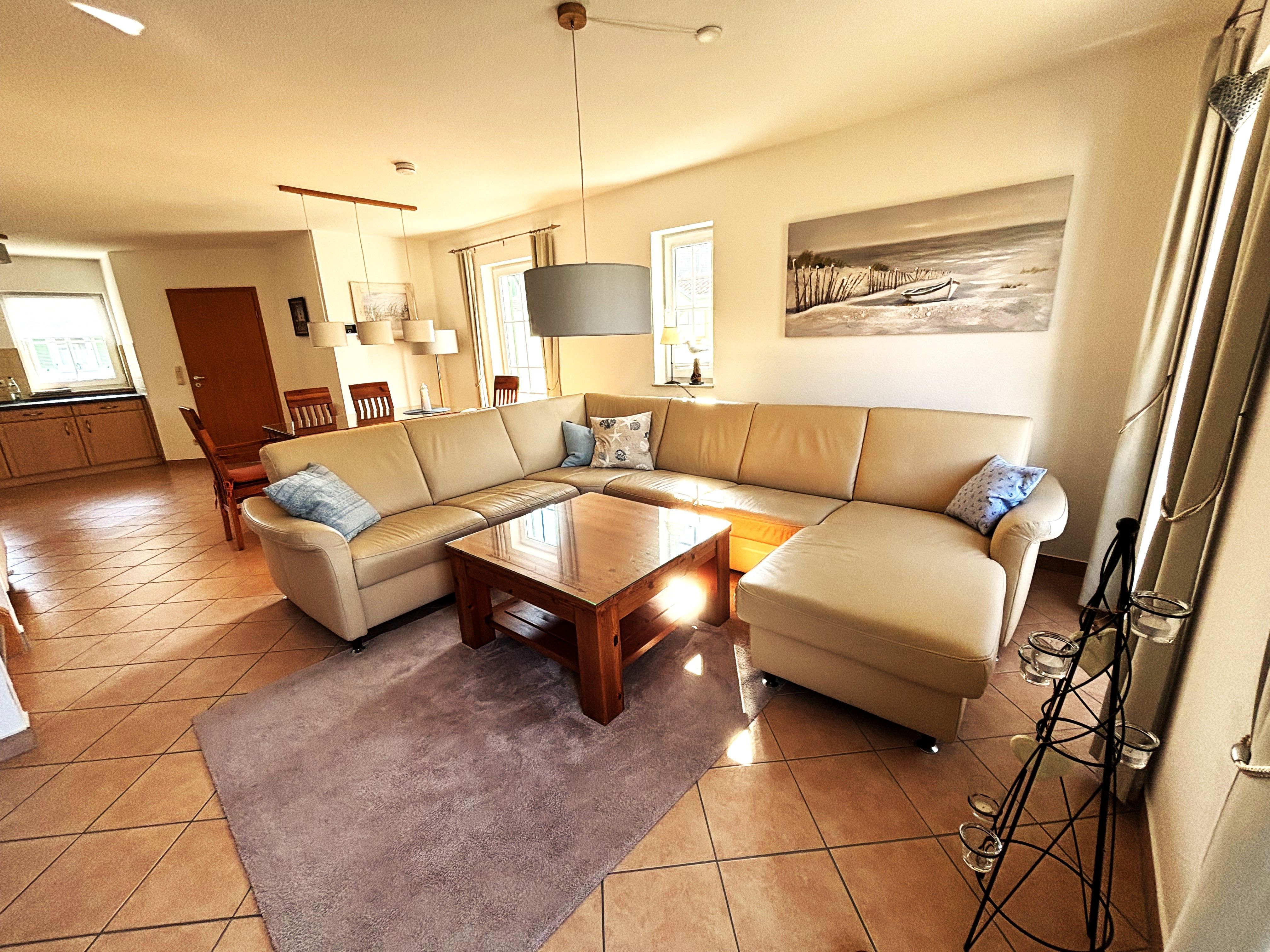 • Wohnraum mit Sitzecke, integrierter Küche und Esstisch, Internet-WLAN, Flat-TV, Radio, DVD-Player