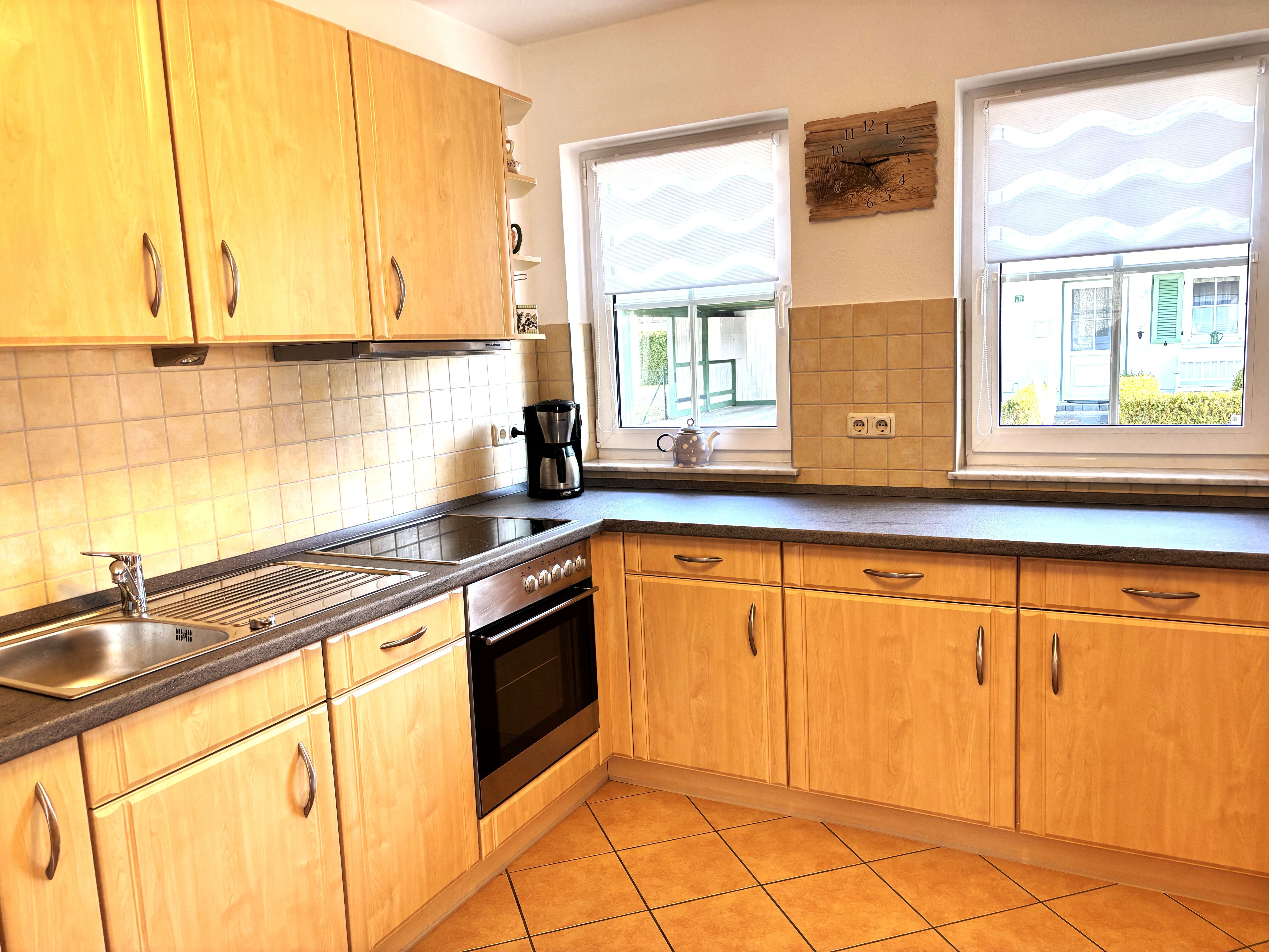 • Küchenzeile mit Herd (Backröhre), Kühlschrank mit Gefrierfach, Geschirrspüler, Kaffeemaschine, Wasserkocher & Toaster, Mikrowelle