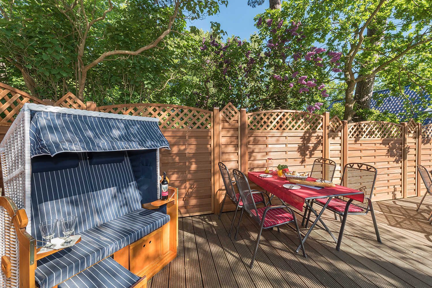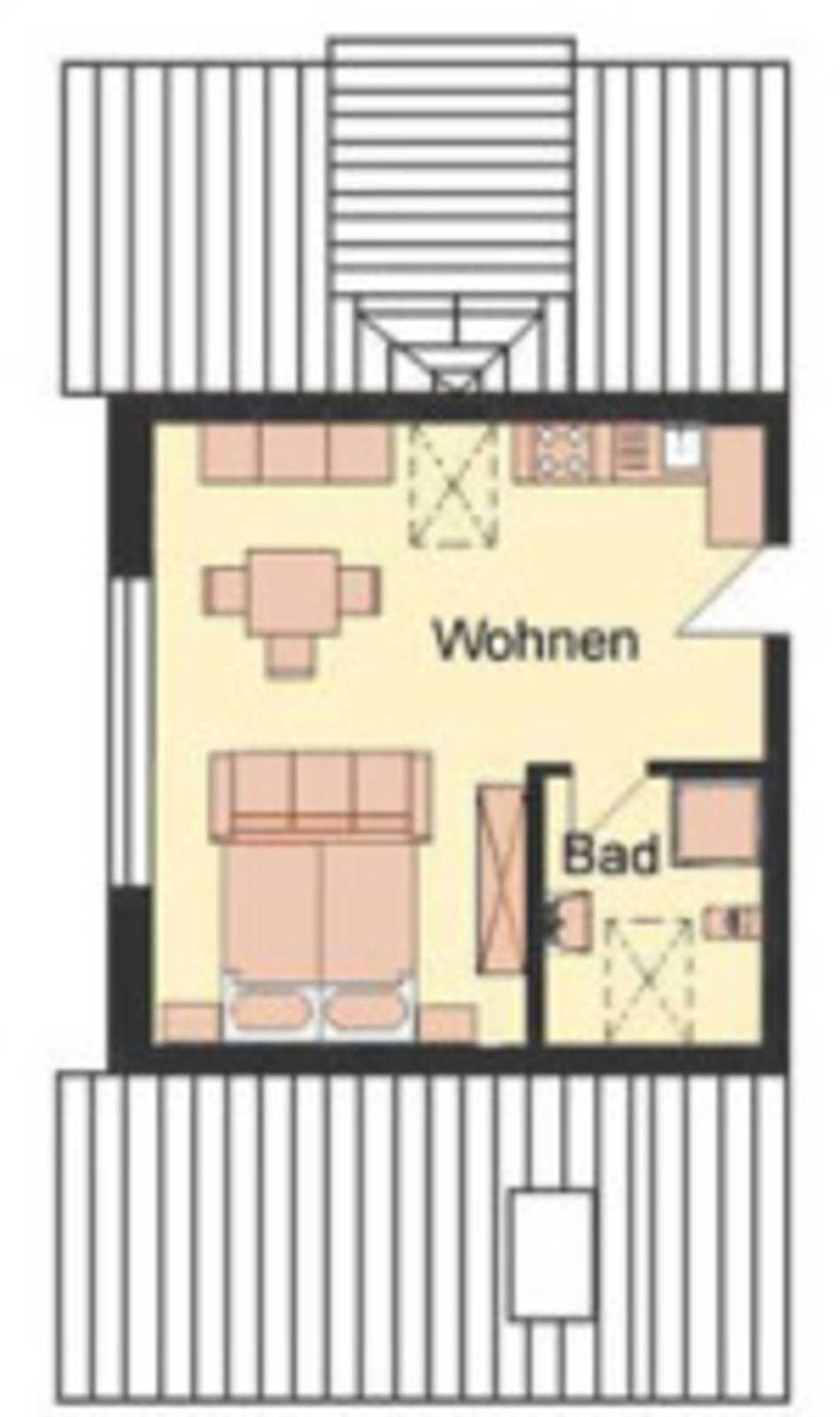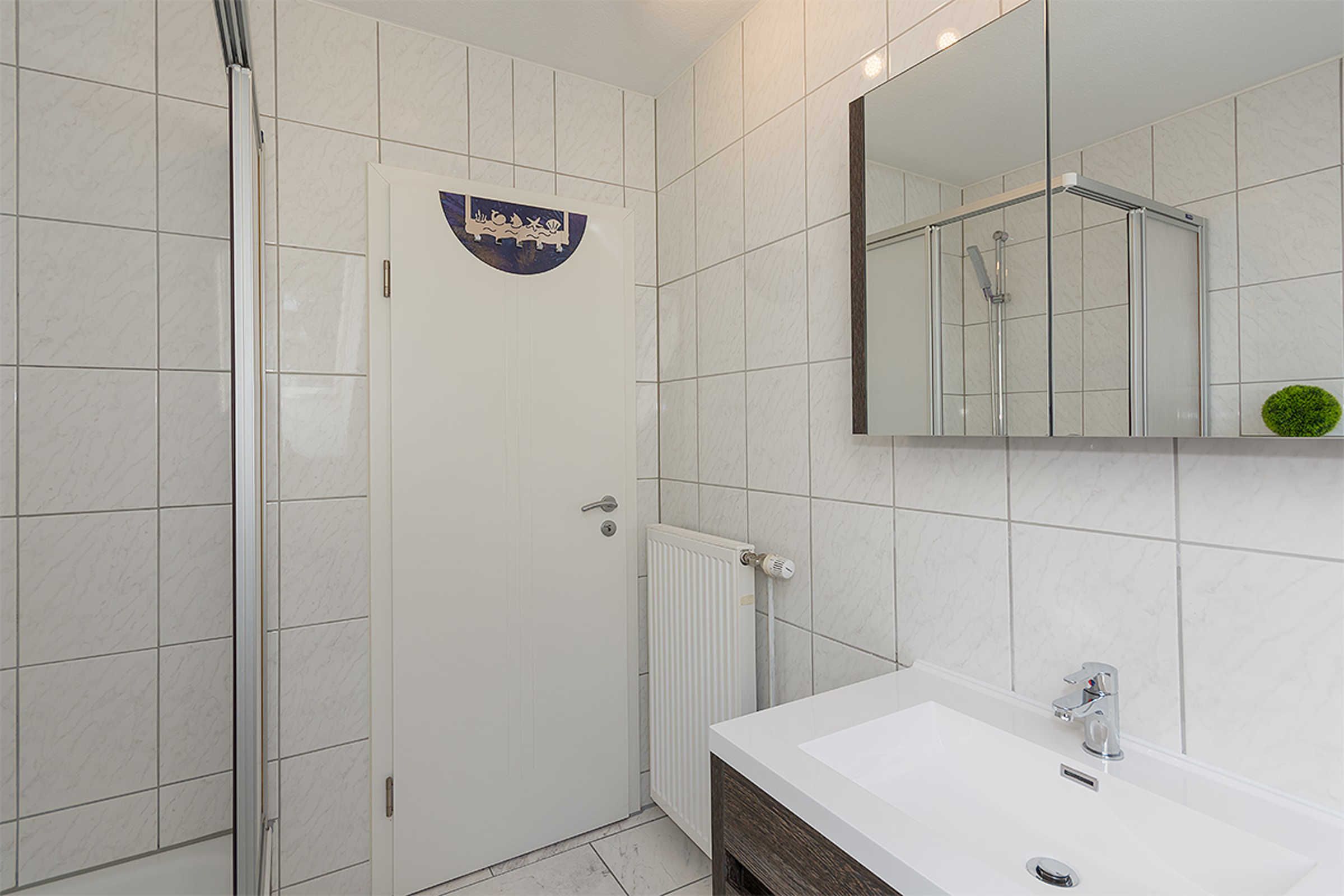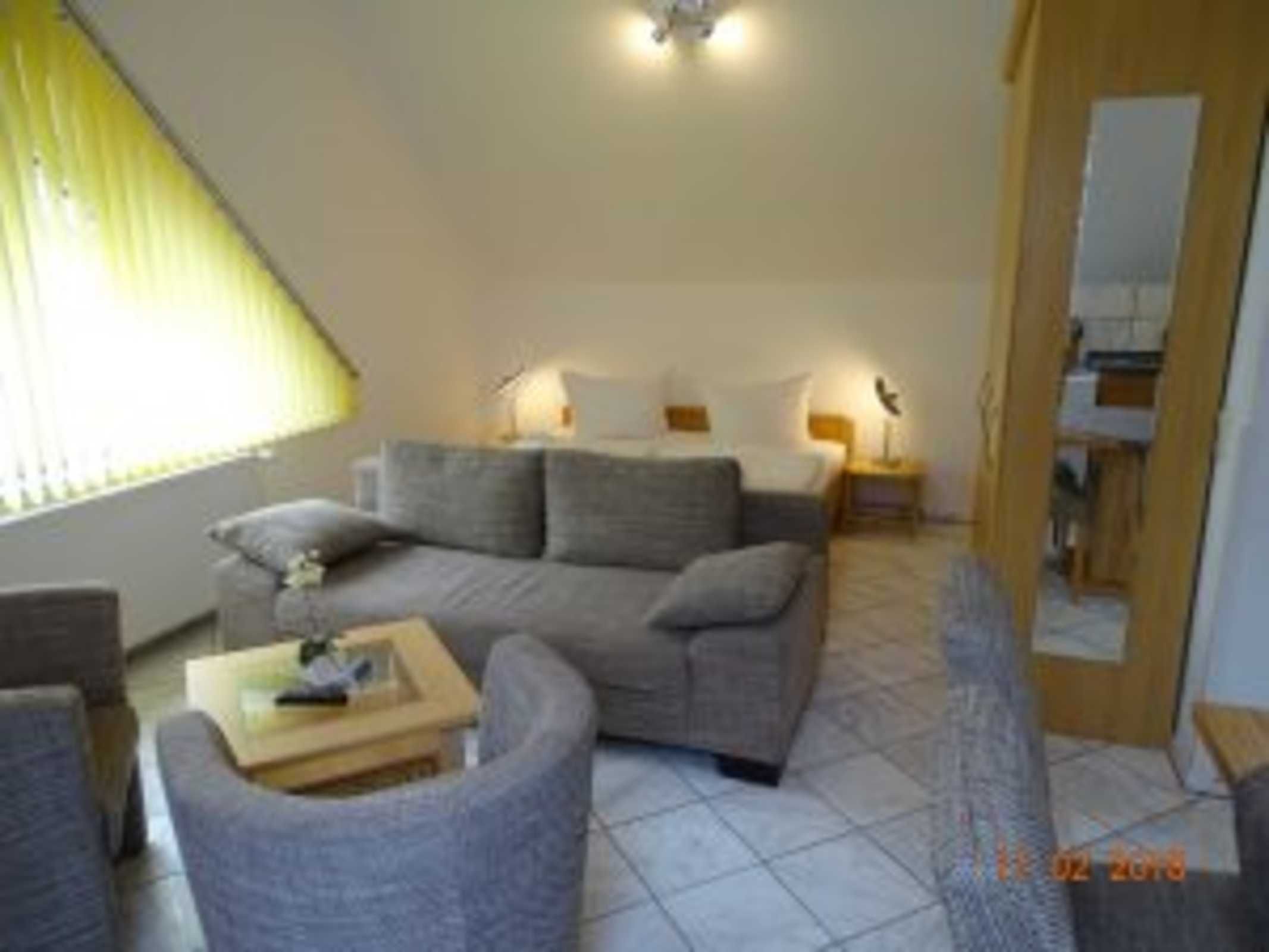 Diese ca. 35 m² große Studio-Wohnung finden Sie im Dachgeschoss des Hauses. Ausgestattet mit jeweils einer kompletten Miniküche mit Doppelcerankochfeld Geschirrspüler, Mikrowelle, einer Essgruppe, einem bequemen Doppelbett, einem großen Kleiderschrank, einer gemütlichen Schlafcouch sowie einem separaten Bad mit Dusche, WC und Waschtisch. Hier finden 1 bis 4 Personen eine ideale Ferienunterkunft. Gern können auch die beiden Wohnungen 5 und 6 zusammen (somit die obere Etage komplett) gebucht werden.