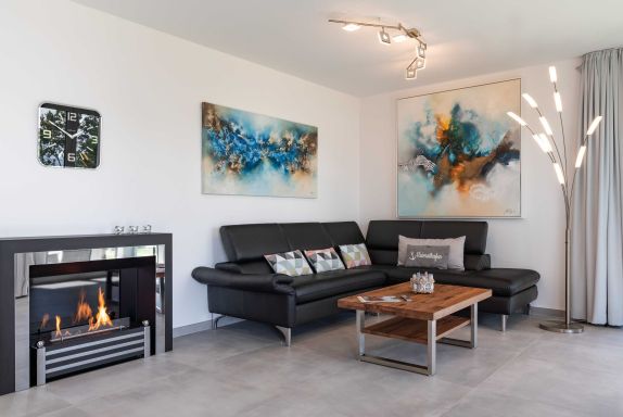 Diese luxuriöse 4-Zimmer-Wohnung im ersten Obergeschoss von Haus 4 (Aufzug vorhanden) mit Platz für maximal 6 Personen sowie einem Kleinkind bis 2 Jahre im Babybett verfügt über eine Wohnfläche von 119 m² und hat 3 Schlafzimmer sowie 2 voll ausgestattete Duschbäder. Die große Sonnenterrasse mit 17 m² liegt in idealer Süd-Ausrichtung. Die Wohnung ist modern eingerichtet mit offenem Wohn-Essbereich, großem Esstisch, Ledersofa sowie Smart-TV (inkl. Sky-Abo). Die hochwertig ausgestattete Küche, offen zum Wohnbereich, lässt keine Wünsche offen. Für gemütliche Abende sorgt der Elektrokamin mit seinem stimmungsvollen Flammenspiel.