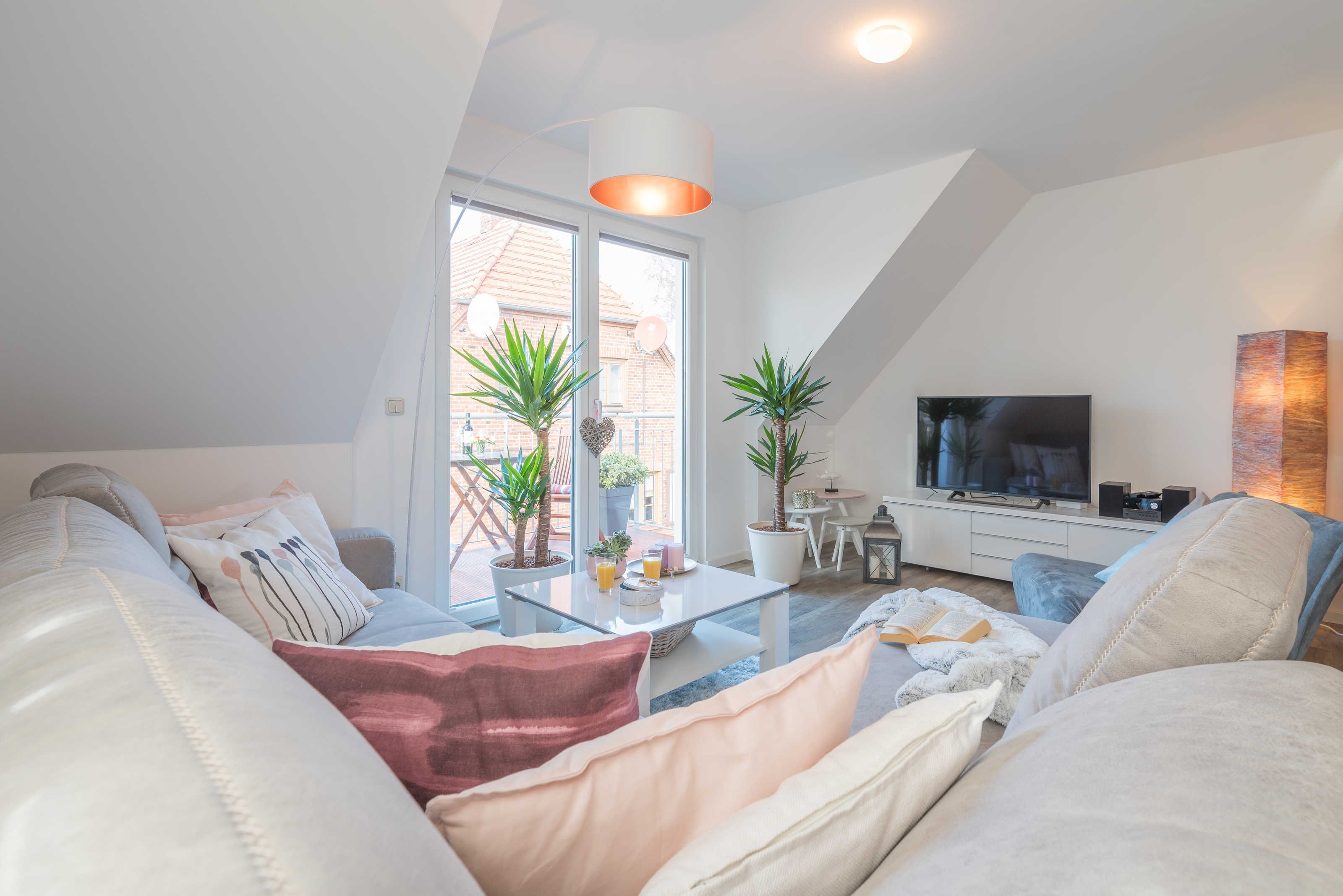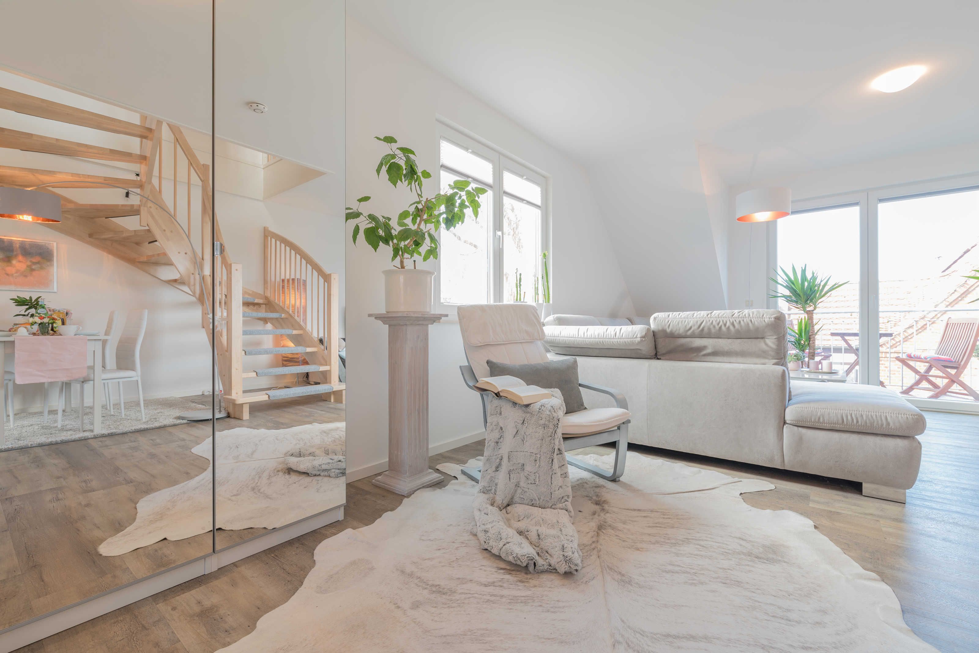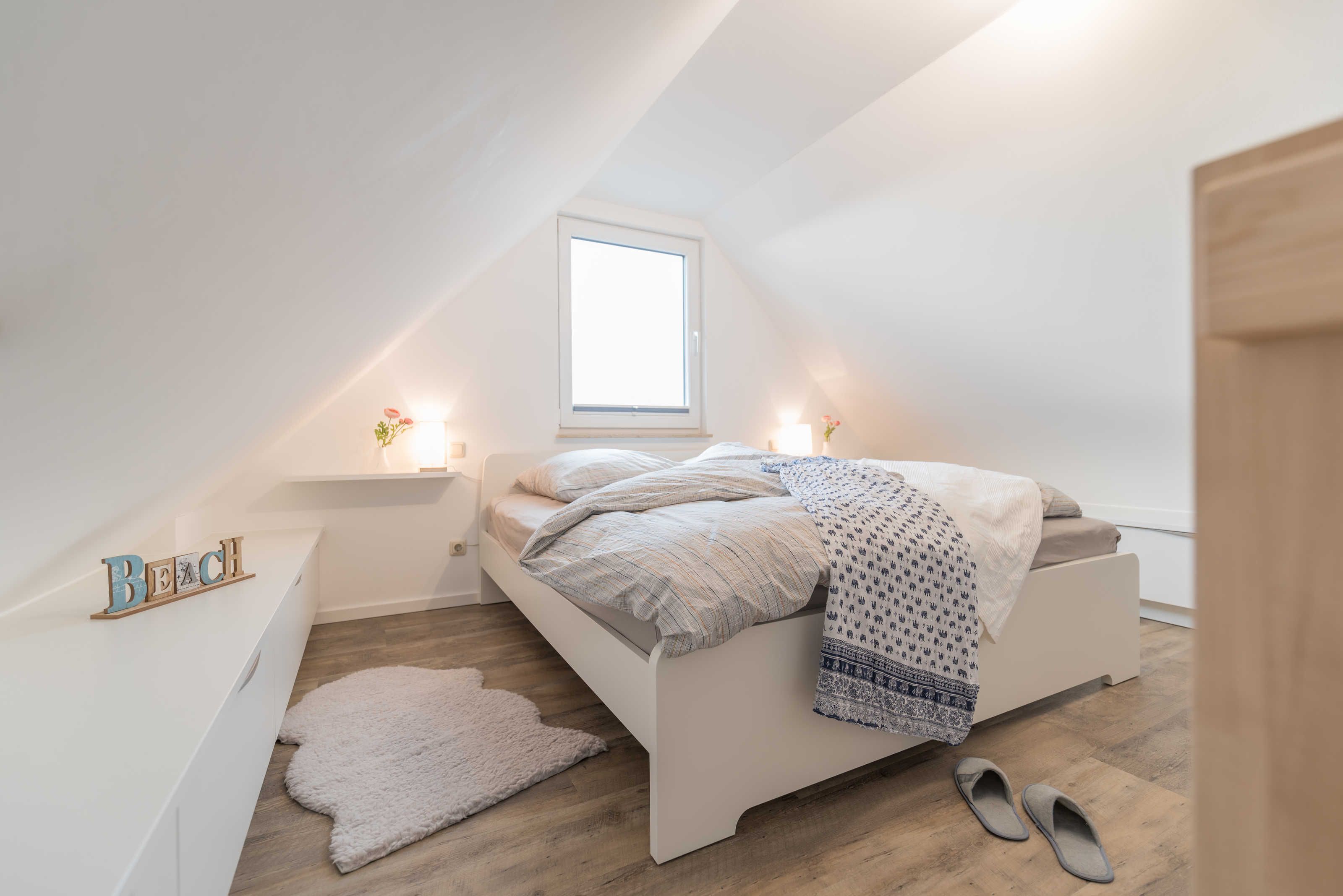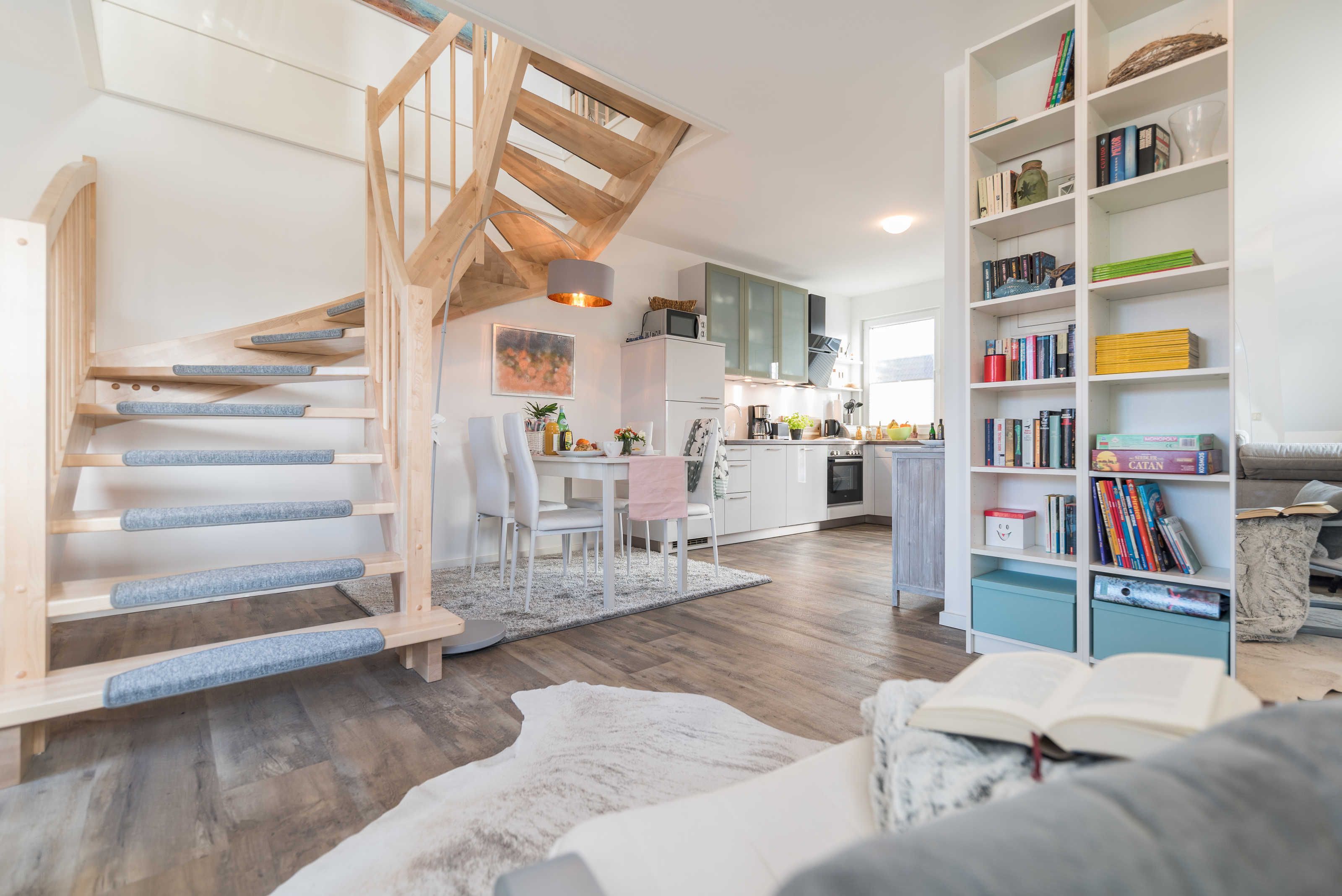 Die liebevoll eingerichtete 2-Zimmer-Maisonette-Zimmerwohnung (1. Obergeschoss und Dachgeschoss) bietet genug Platz für 4 Personen. Bitte beachten Sie, dass die Wohnung nur über eine Gittertreppe erreichbar ist.