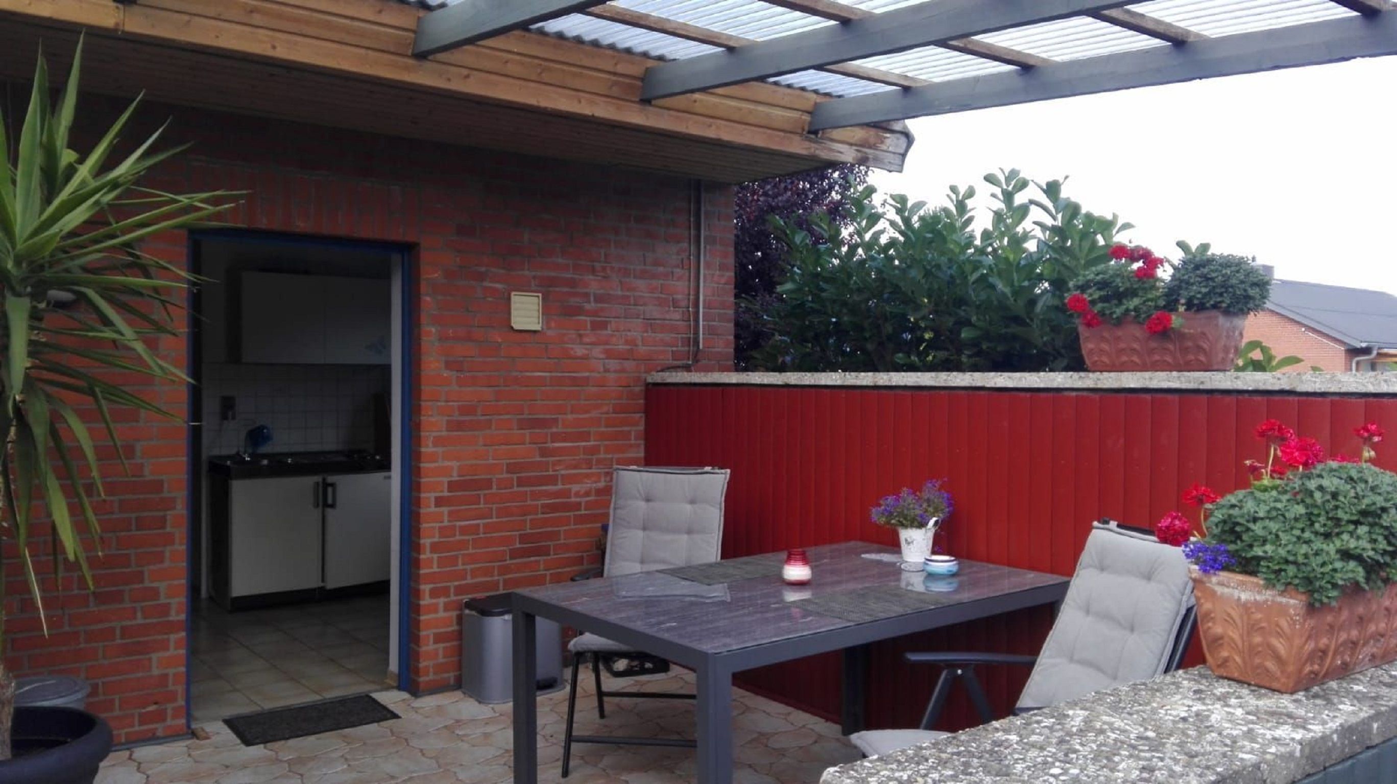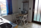 Die Ferienwohnung hat einen separaten Eingang. Es gibt einen kombinierten Wohn- und Schlafraum mit einer Schlafcouch. Das Bad hat eine Dusche. Es gibt eine kleine Pantry Küch. Vor der Wohnung ist ein PKW-Stellplatz vorhanden. Die Ferienwohnung hat eine überdachte Terrasse mit Südlage.