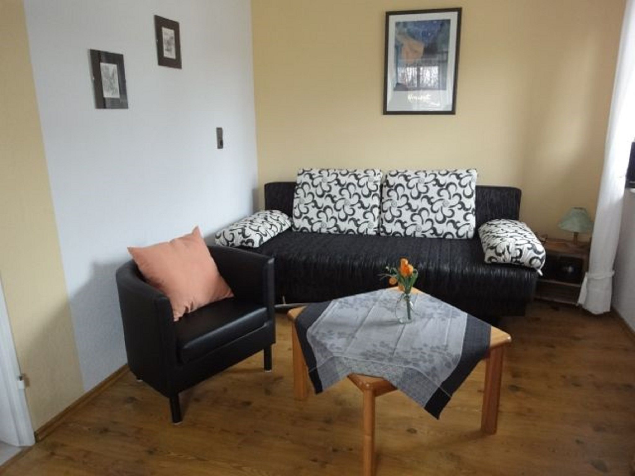 Ferienwohnung 30 m² separater Eingang, Wohn-Schlafraum kombiniert, Schlafcouch mit Federkernmatratze, Dusche/WC, Küche, SAT-TV und DVD Player.