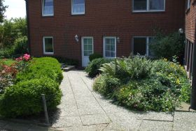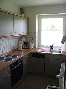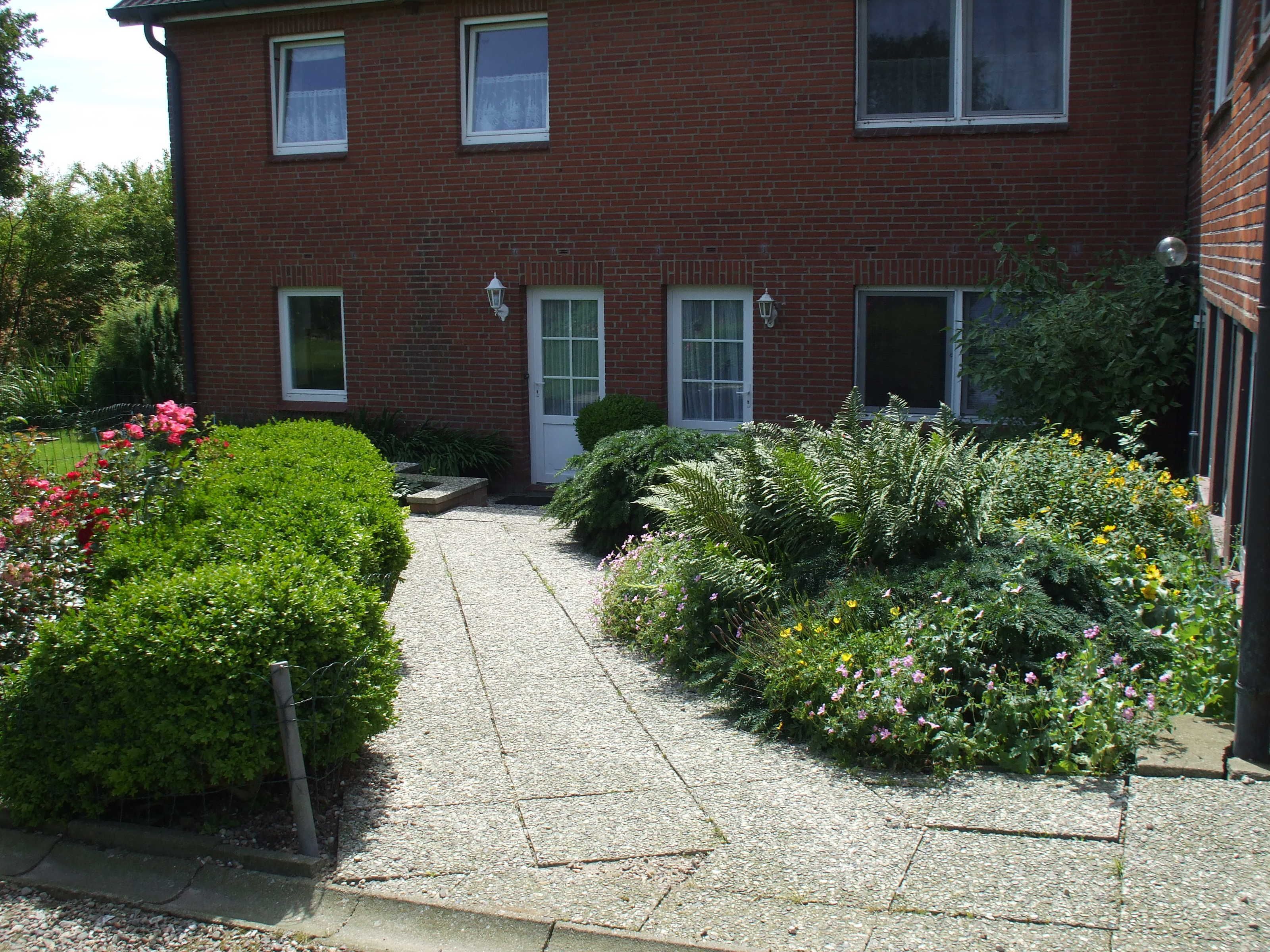 Die Ferienwohnung Gertrud ist 74 m² groß und bietet Platz für bis zu 6 Personen. Im Erdgeschoss gibt es ein großes Schlafzimmer mit Doppelbett sowie ein Kinderzimmer mit Etagenbett. Ein Badezimmer mit Dusche und WC befindet sich ebenso im EG.