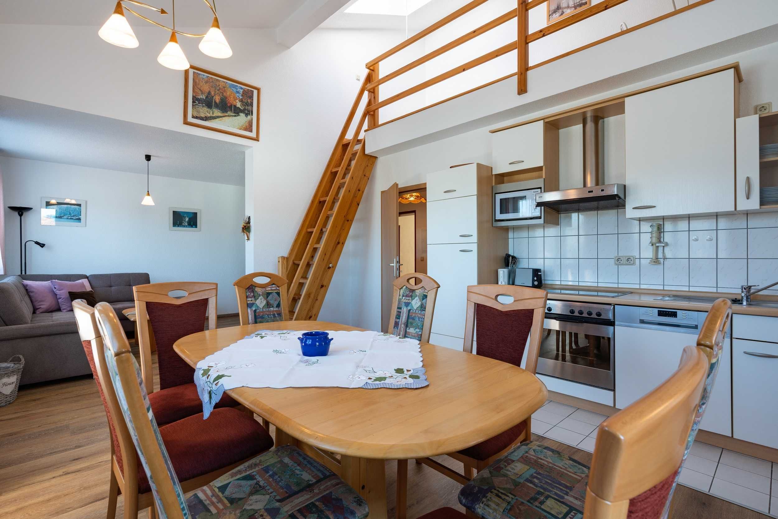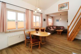 Ferienwohnung mit offener Galerie im Wohnbereich und 1 Schlafzimmer.