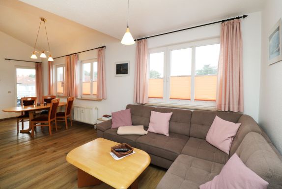 - 1 Wohnzimmer mit Schlafcouch und Couchtisch