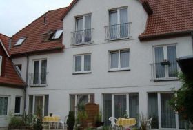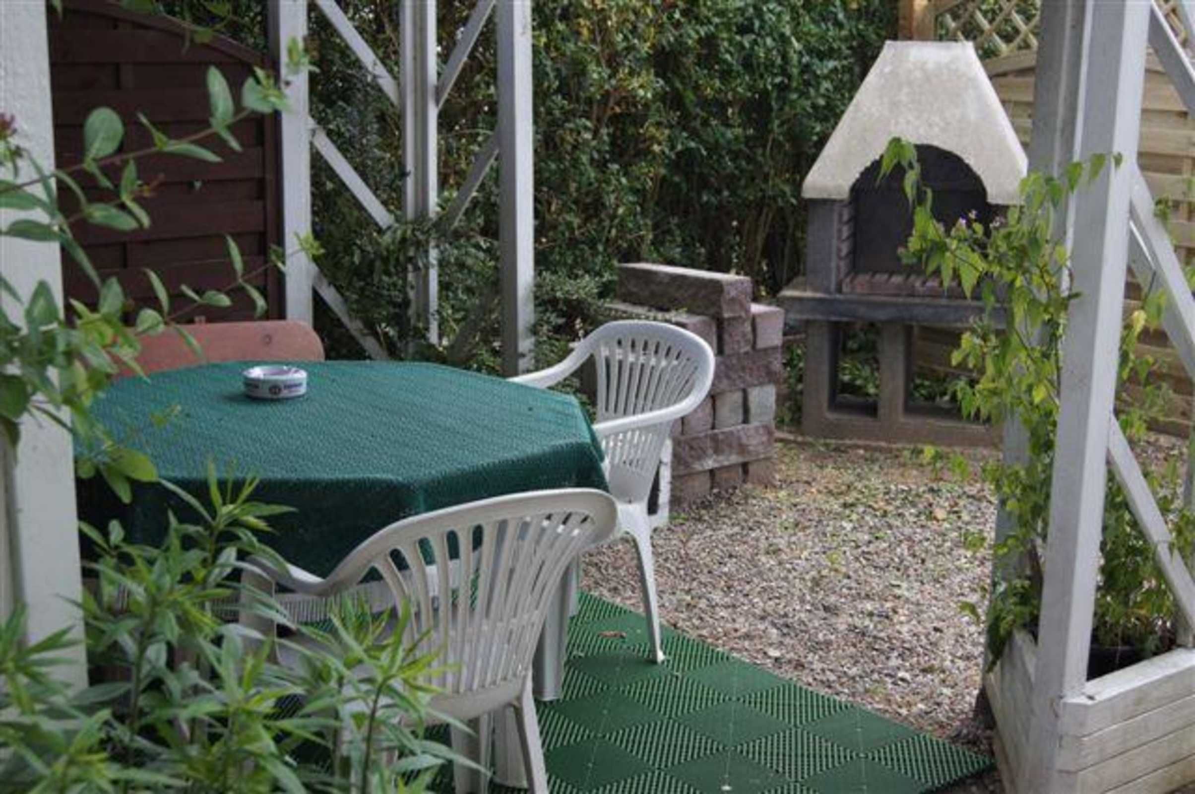 Ferienwohnungen Parterre mit Terrasse, für die Etagenwohnungen stehen Sitzgruppen auf dem Grundstück sowie ein Pavillon und Grill zur Verfügung.