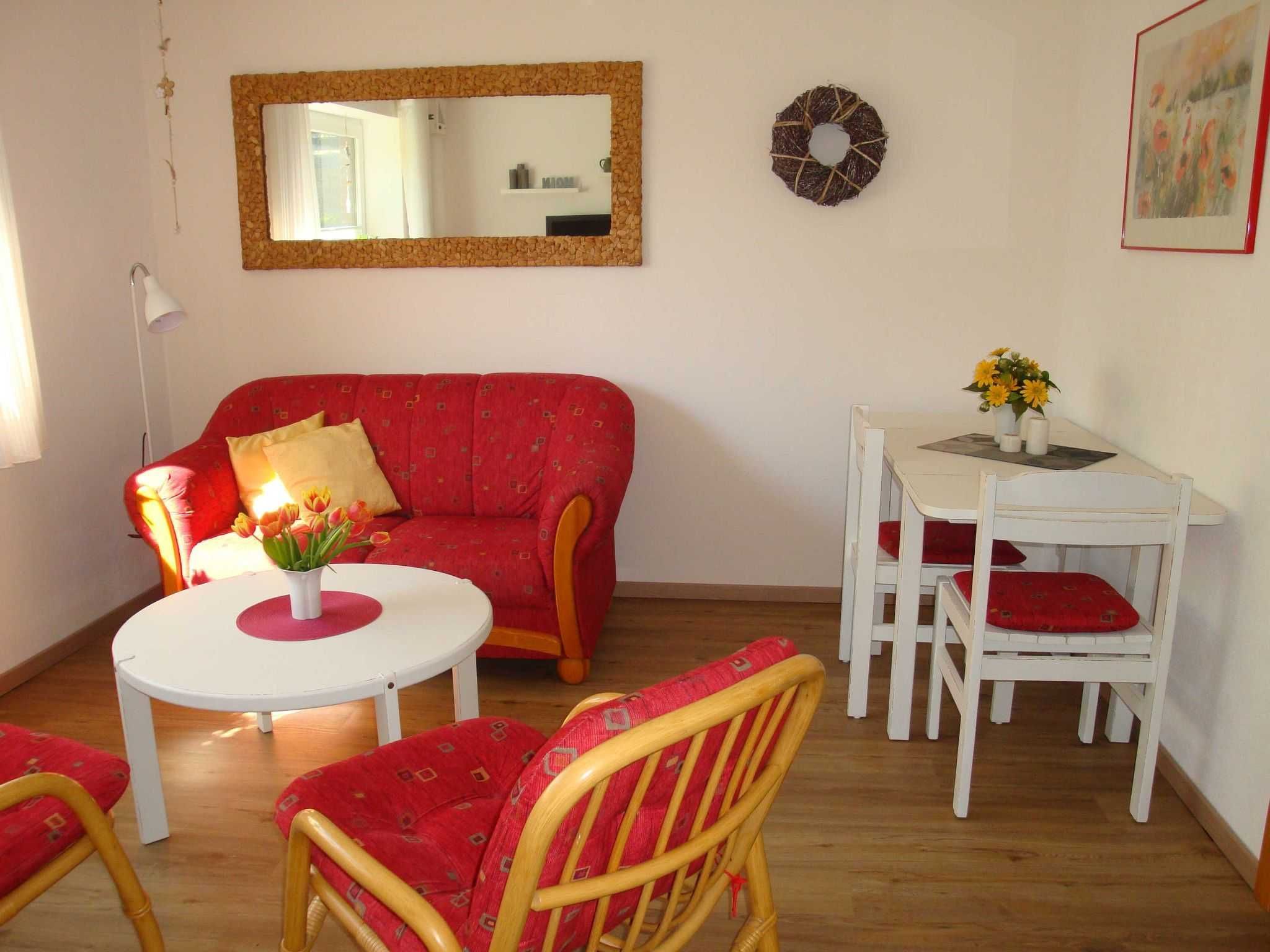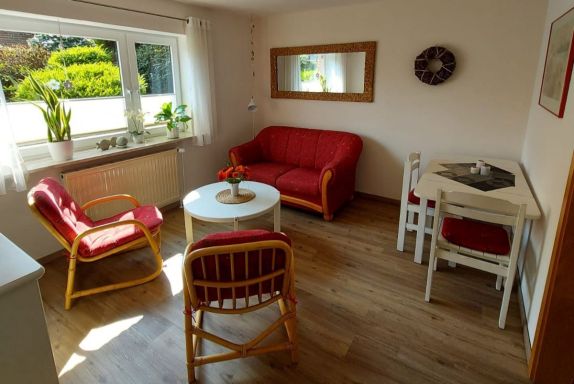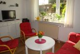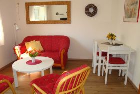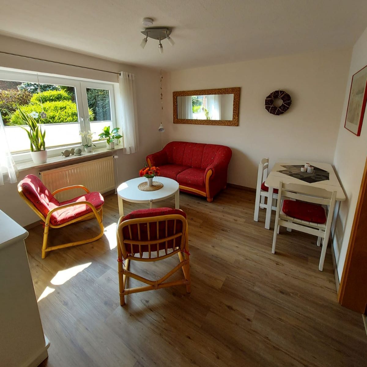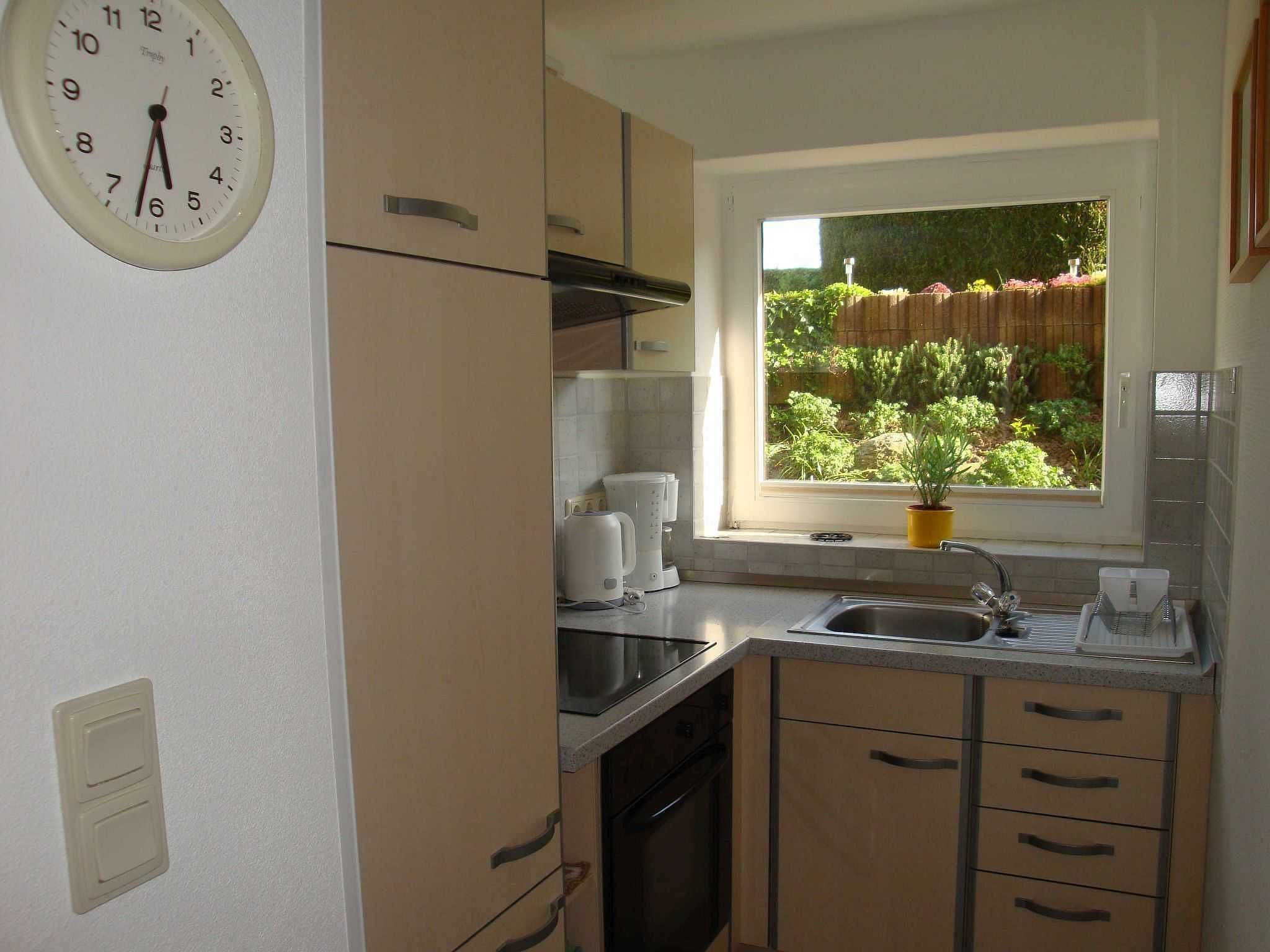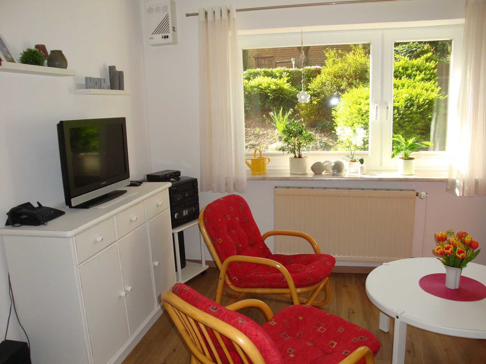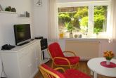 Die 40 qm große und ruhige, gemütlich eingerichtete Ferienwohnung mit separatem Eingang befindet sich im Souterrain (südliche Lage). Große Fenster lassen viel Licht und Sonne herein und gestatten den Blick in den Garten. Die Ausstattung umfasst ein Wohnzimmer mit Couchgarnitur, Essecke und eine komplett eingerichtete Einbauküche, ein Schlafzimmer mit Doppelbett, Badezimmer mit Dusche und WC. SAT-TV, CD-Player, Stereo-Radio, Telefon und WLAN.