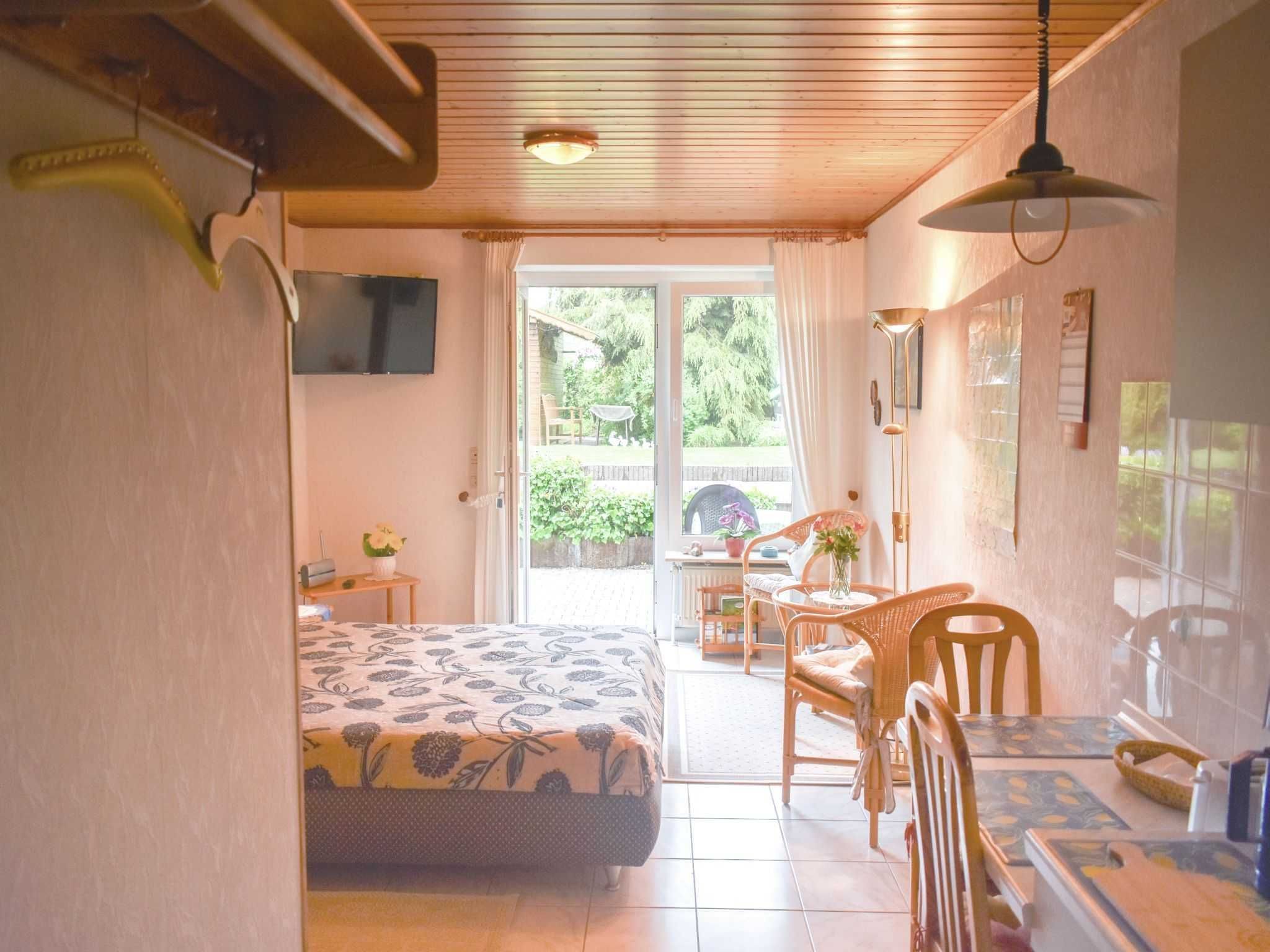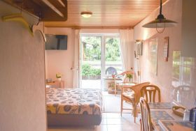 Unsere 2 kleinen Ferienwohnugen ( je 28qm) verfügen über einen Balkon oder eine Terrasse. Sie sind mit einem Doppelbett eine kleine Sitzreihe und mit Telefon und Fernseher ausgestattet. Auch eine Küchenzeile ist vorhanden mit Kaffeemaschine, Toaster und einen Wasserkocher.