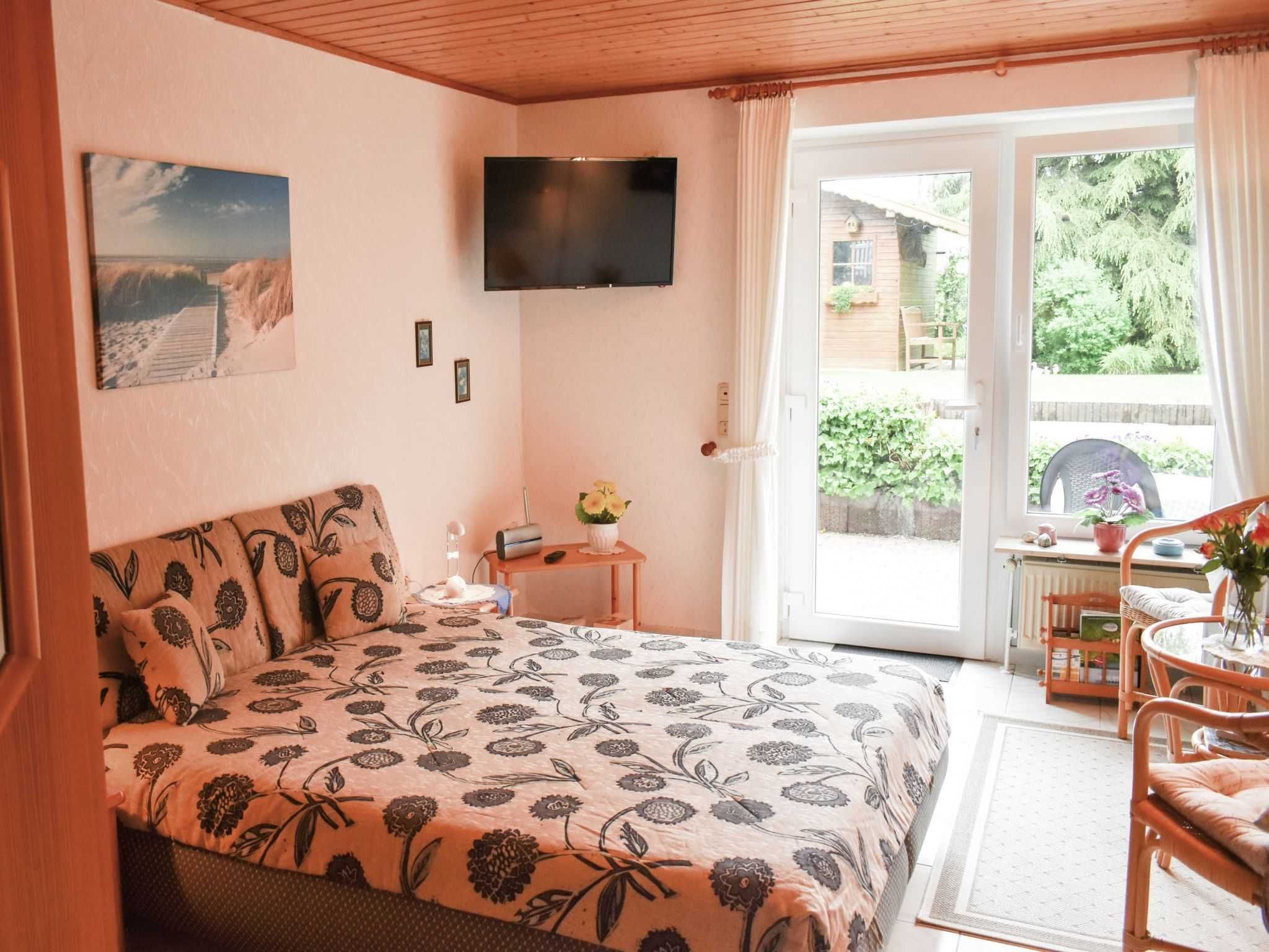 Unsere komfortablen Ferienwohnungen haben alle separate Eingänge; Farb -TV und Balkon oder Terasse mit Südseite, Tisch, Stühle und Sonnenliegen.Auf unserem Hof, findet jeder Feriengast seinen eigenen Autostellplatz, mitgebrachte oder geliehene Fahrräder können im Holzhaus untergebracht werden.