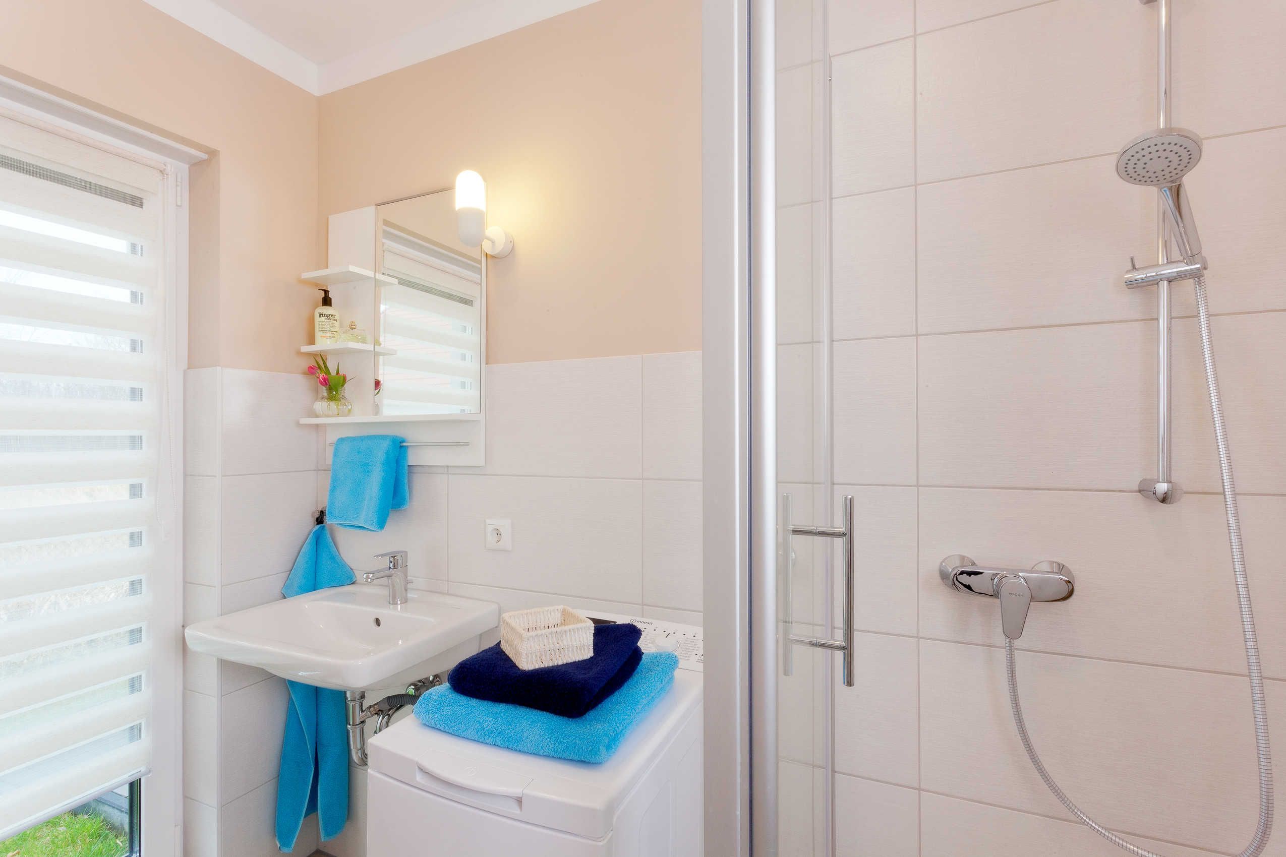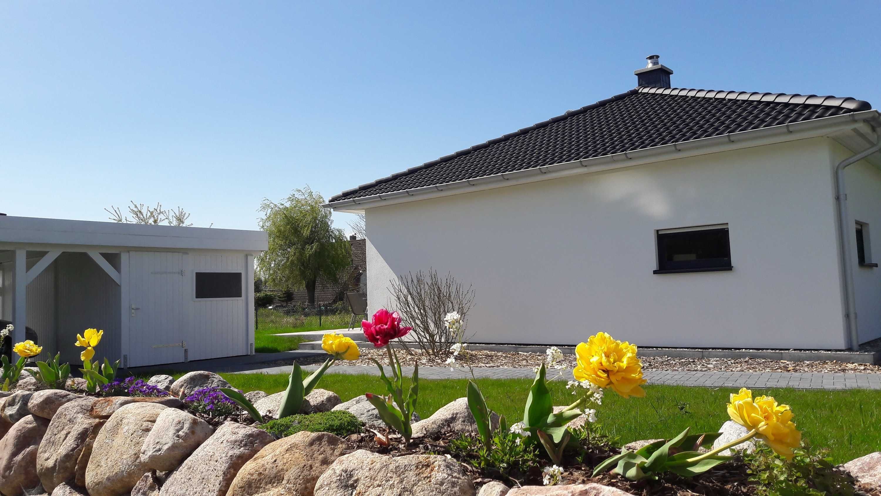 Das 2017 erbaute Ferienhaus in Karlshagen befindet sich in ruhiger Lage und ist ca. 25 Gehminuten vom Strand entfernt. Dieses Ferienhaus mit großer Sonnenterrasse ist mit Terrassenmöbeln ausgestattet und bietet den Gästen reichlich Platz. Es verfügt über Außenrollos, Waschmaschine, Badewanne, Internet-WLAN, 2 PKW-Stellplätze (Carport für 2 PKW) und einen abschließbaren Fahrradschuppen.