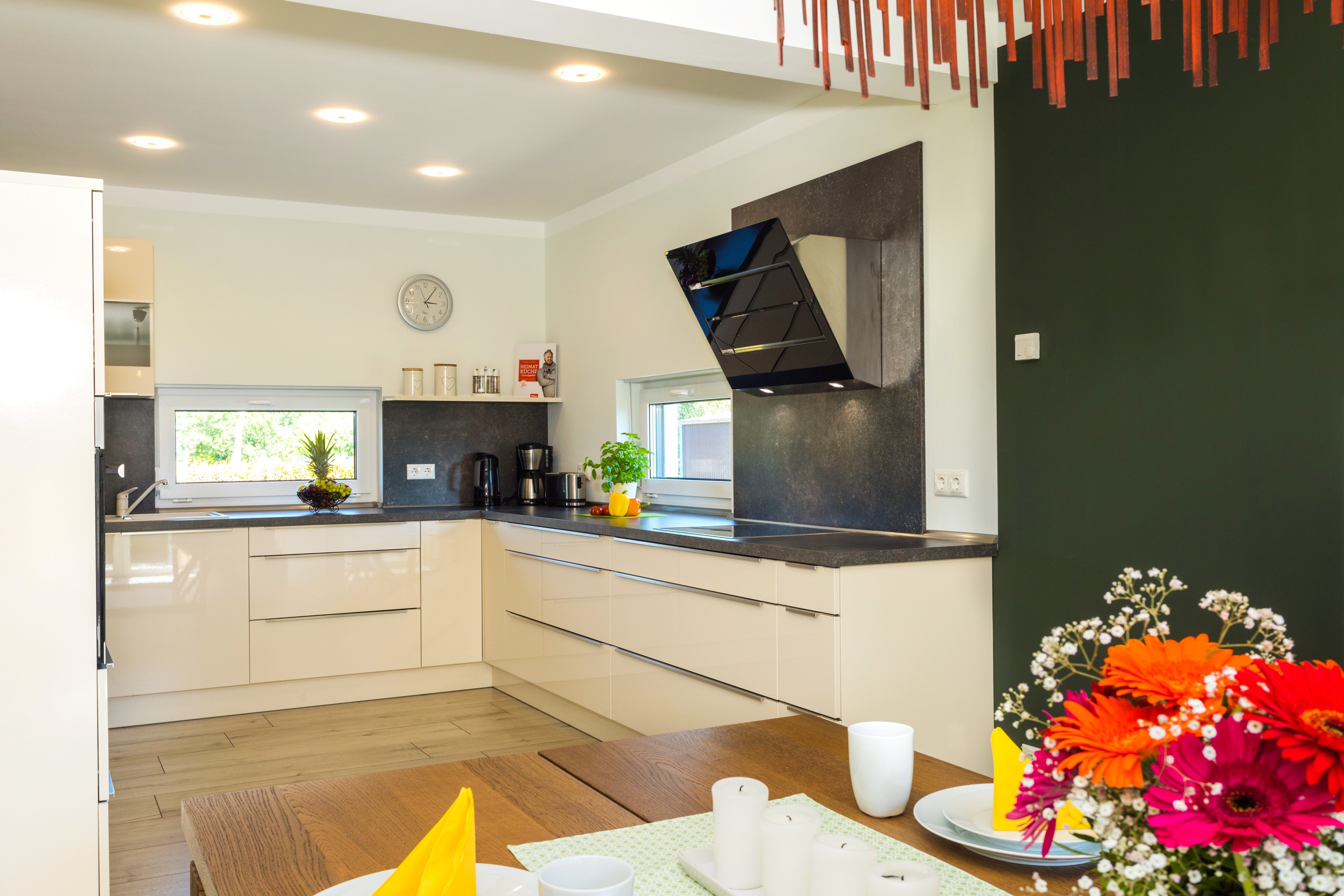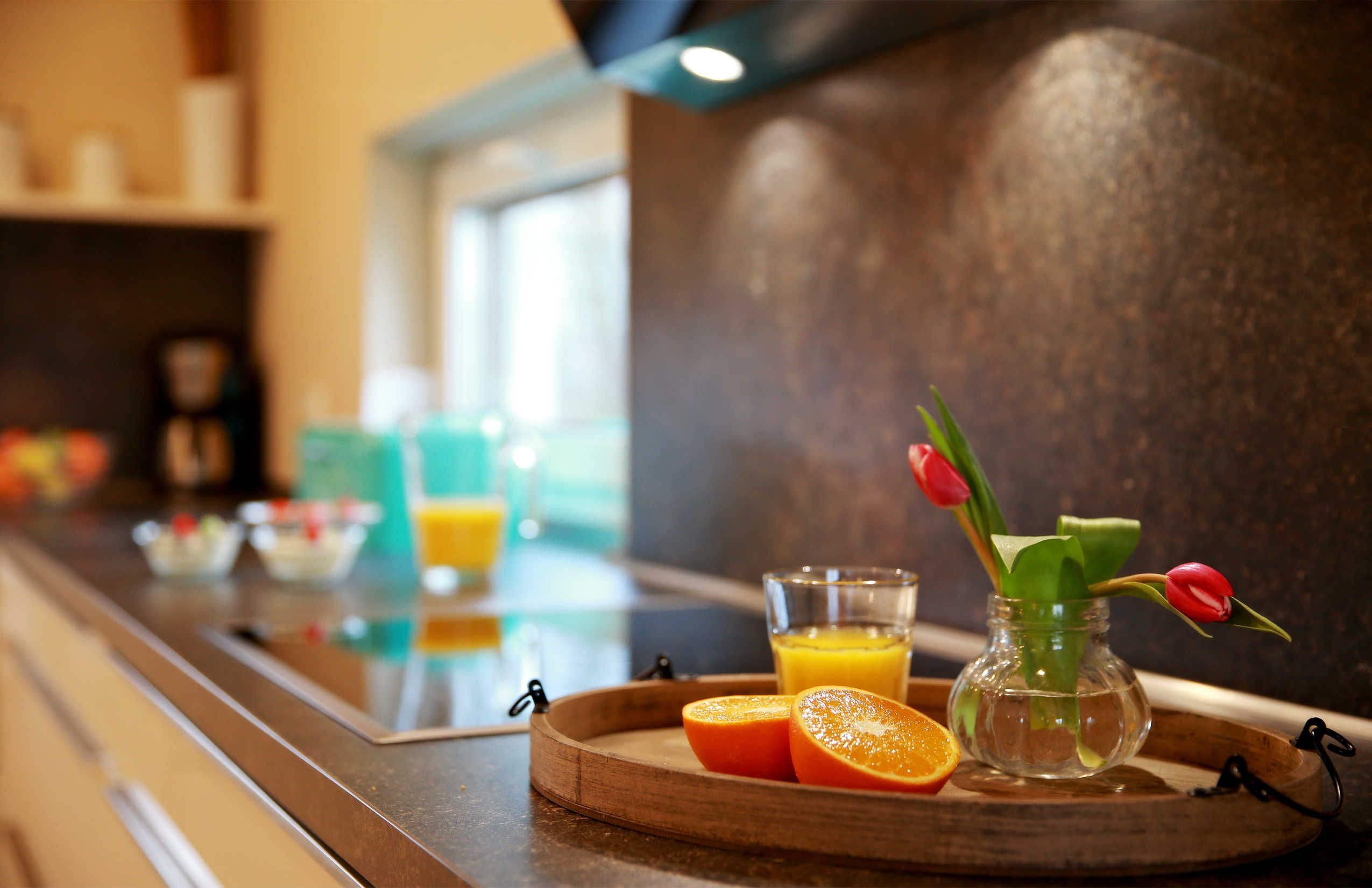 • offene Küche mit Geschirrspüler, Induktionsherd, Backofen, Mikrowelle, Kaffeemaschine, Wasserkocher, Toaster, Kühl-/ Gefrierkombination