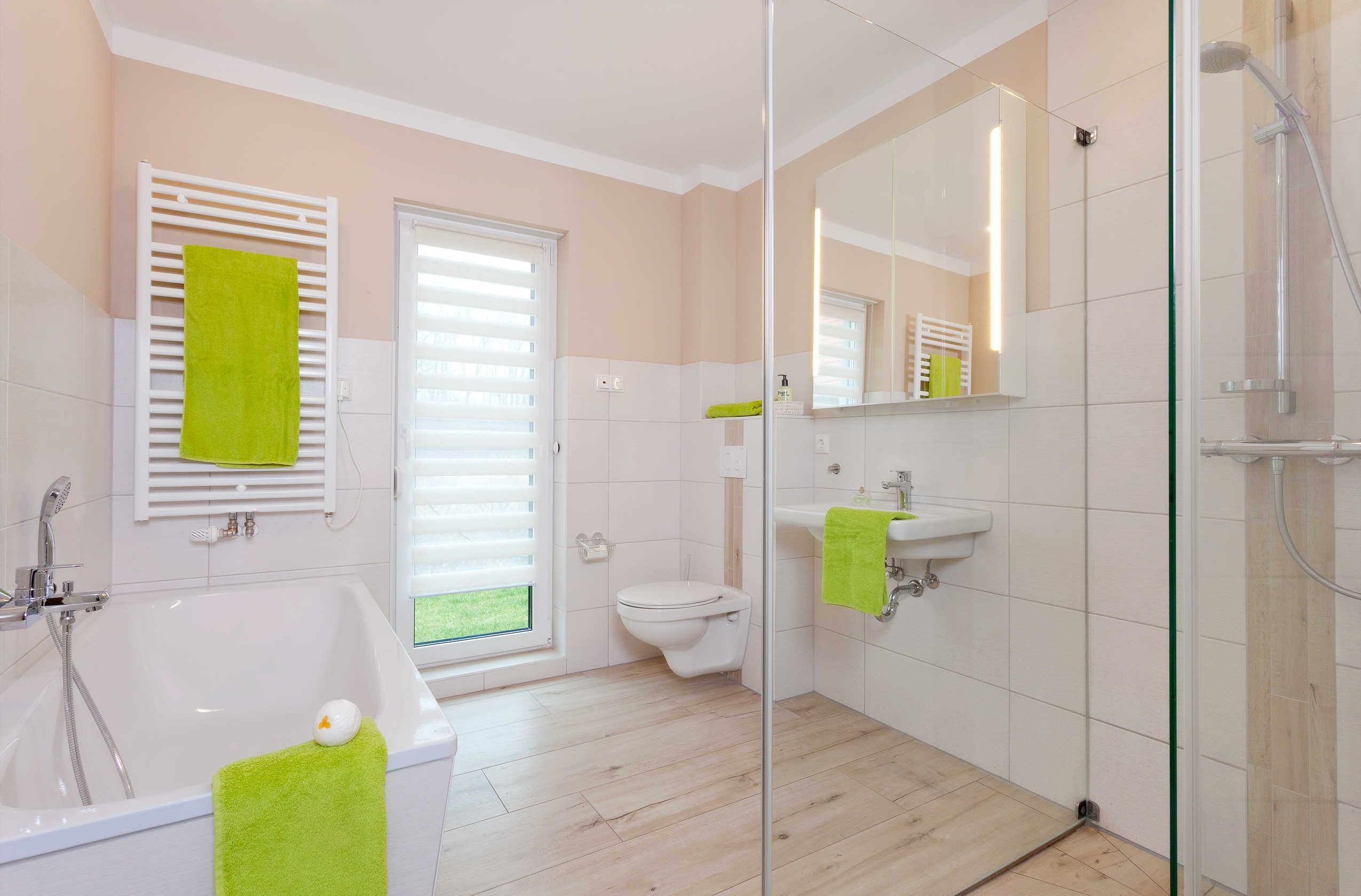 • Fußbodenheizung im ganzen Haus, alle Fenster mit Außenrollos