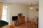 und eigenem Strandkorb liegt fast am Meer. Der Wohn- und Aufenthaltsraum besitzt große Fensterflächen. Dort finden Sie auch eine komplett ausgerüstete Küchenzeile inkl. Microwelle. Im Schlafraum befindet sich ein Doppelbett. Für eine Aufbettung steht eine Schalfcouch für 2 Personen zur Verfügung.