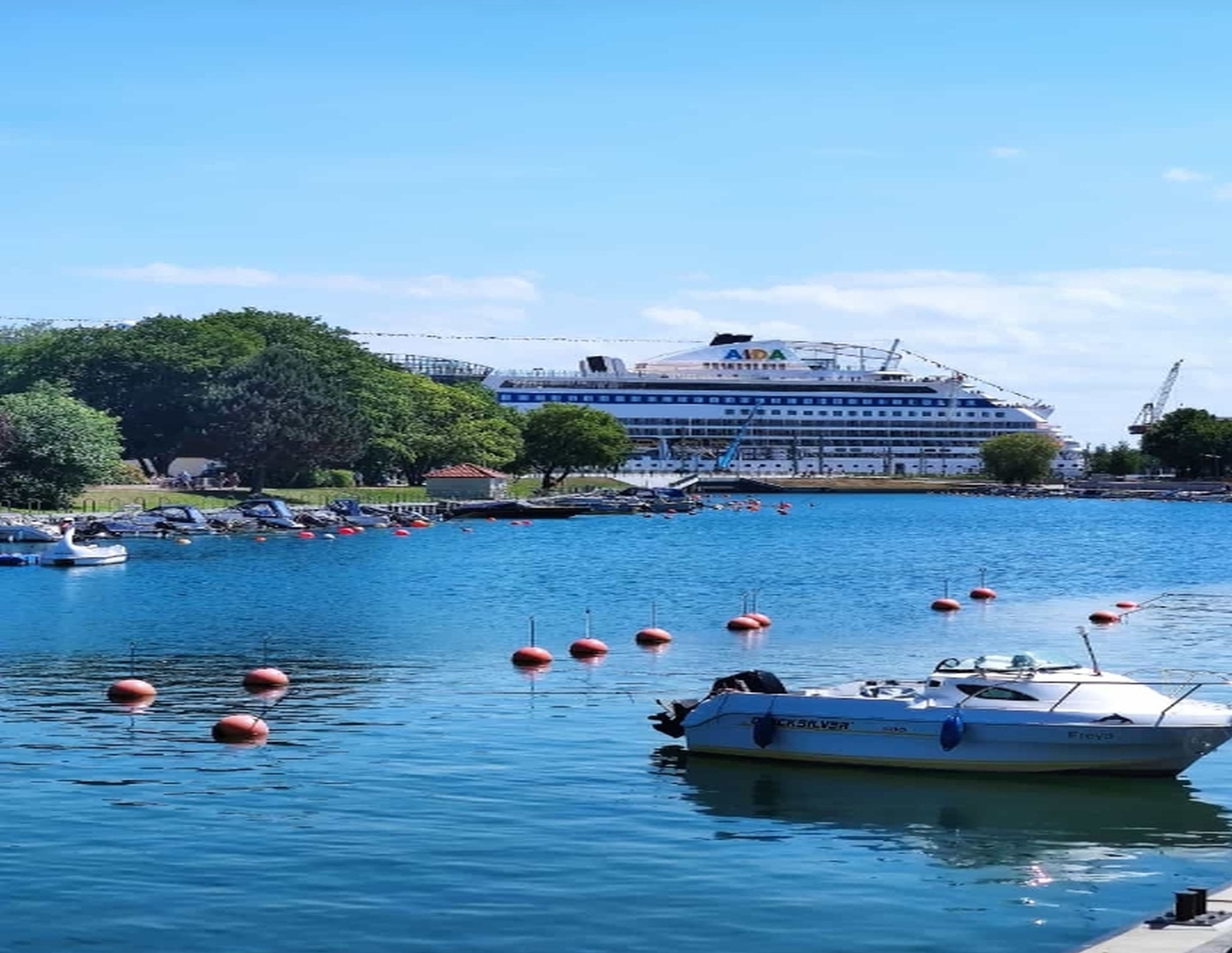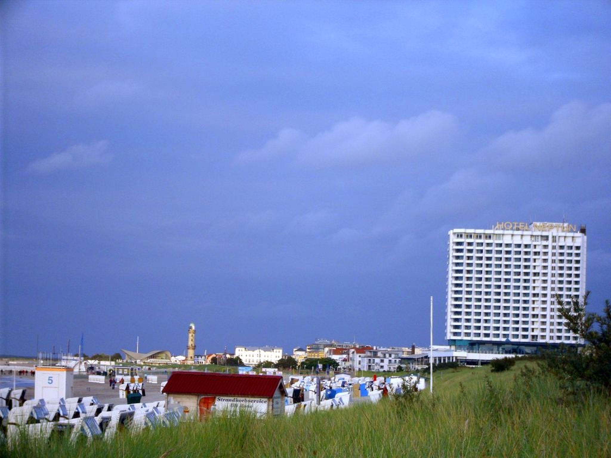 ca.750m. Dort können Sie den Schiffsverkehr von und aus Warnemünde beobachten.