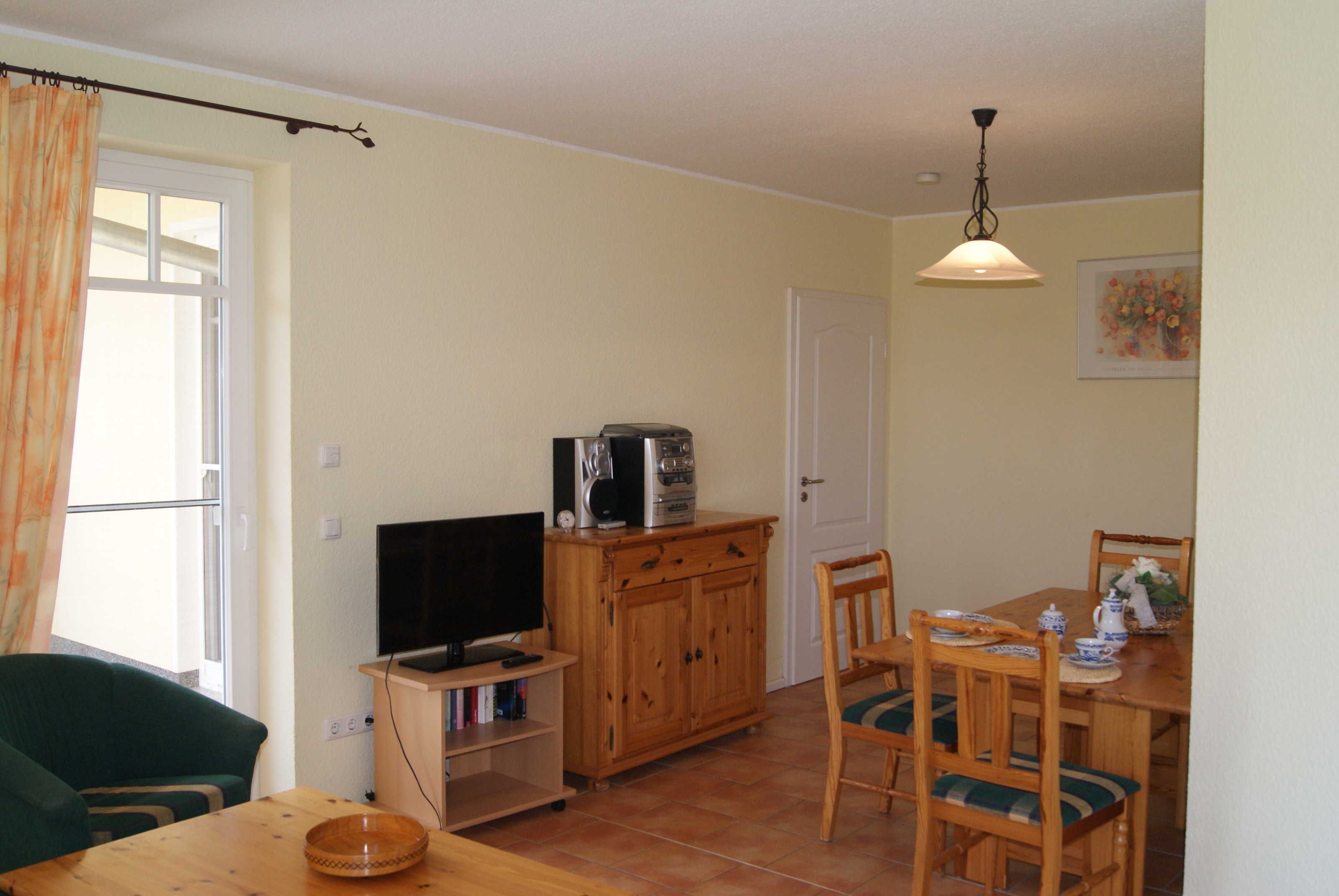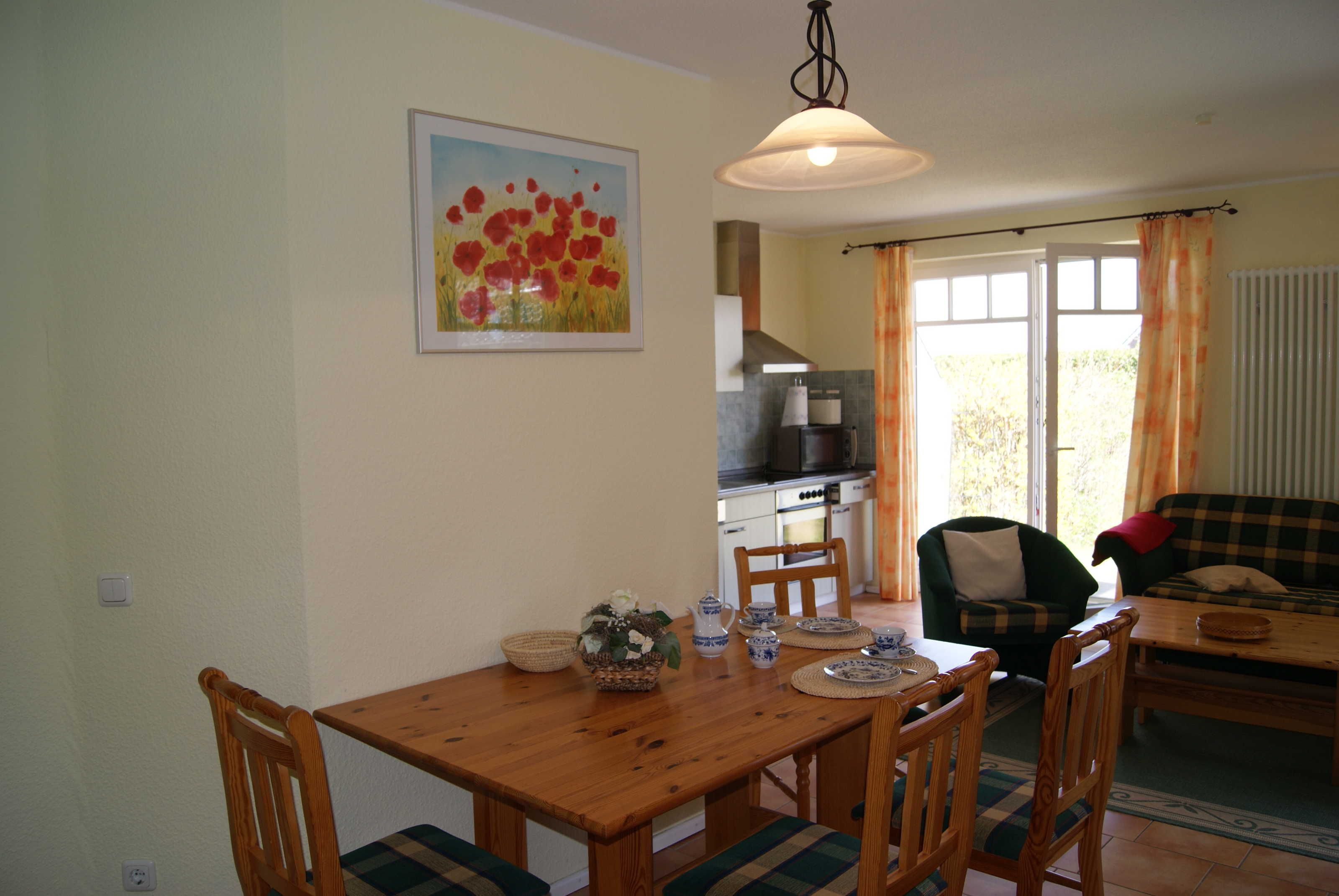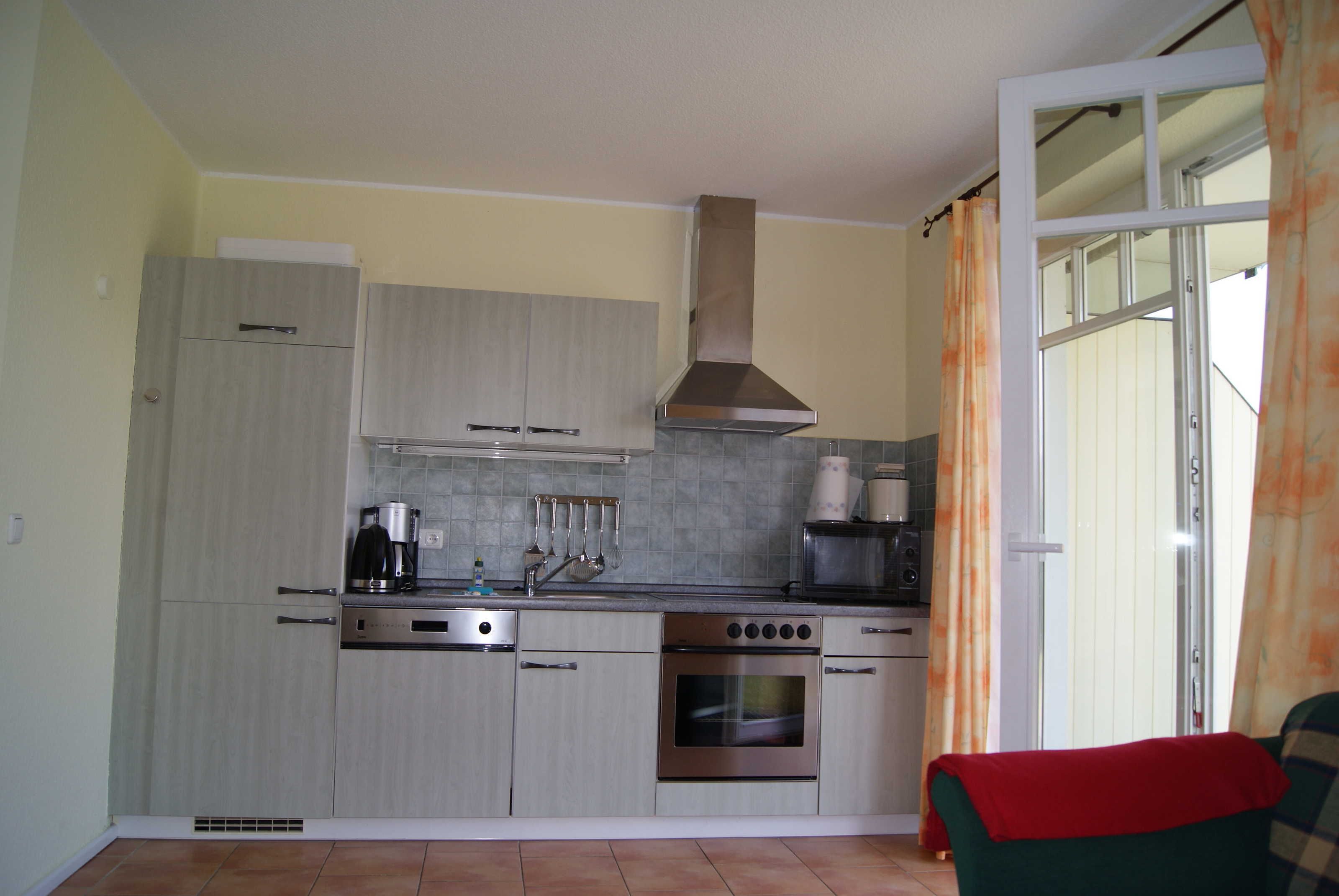 und eigenem Strandkorb liegt fast am Meer. Der Wohn- und Aufenthaltsraum besitzt große Fensterflächen. Dort finden Sie auch eine komplett ausgerüstete Küchenzeile inkl. Microwelle. Im Schlafraum befindet sich ein Doppelbett. Für eine Aufbettung steht eine Schalfcouch für 2 Personen zur Verfügung. Zum Strand sind es