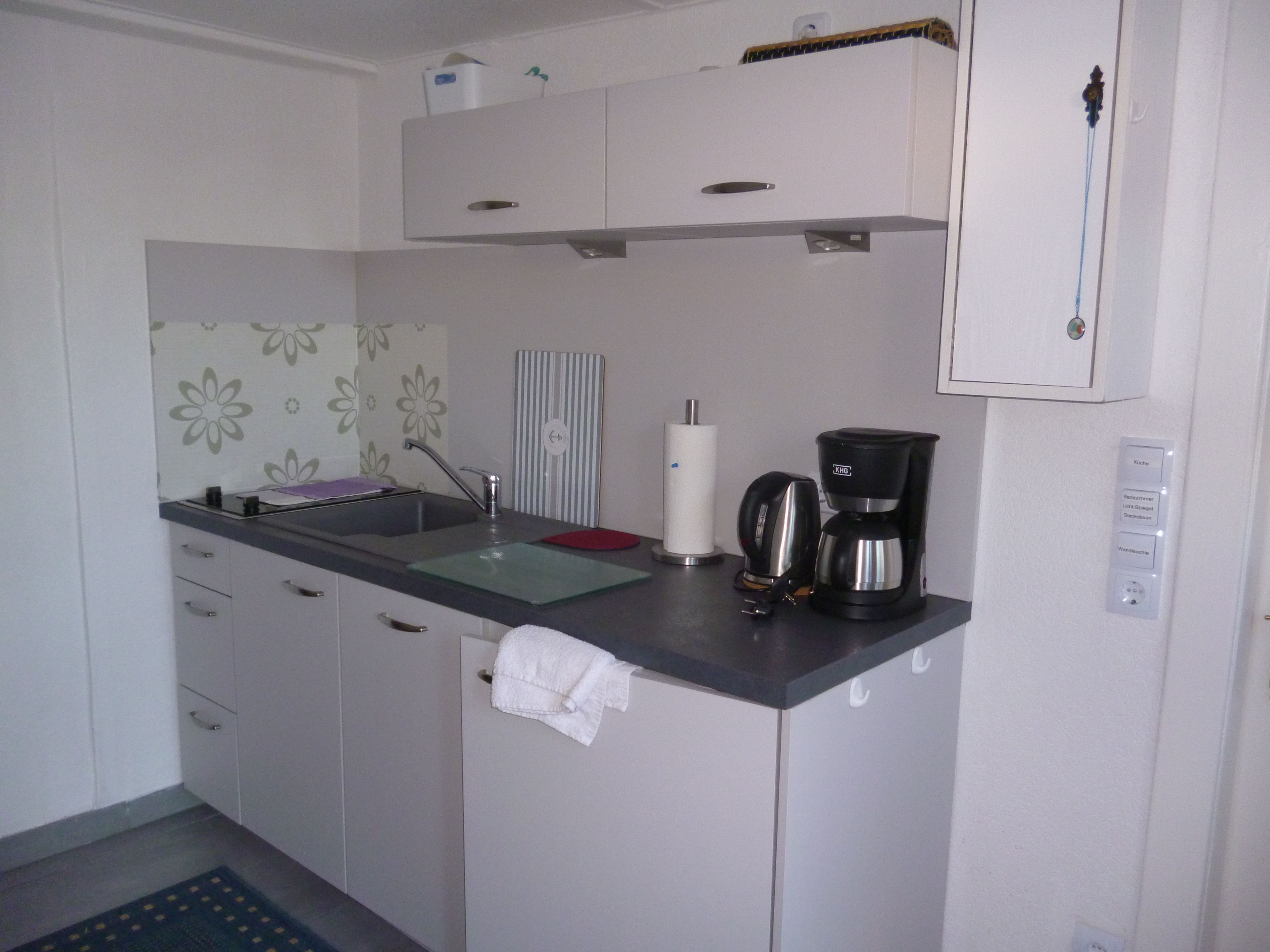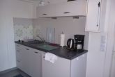 Ferienwohnung 27 für 2 Personen im EG. Wohnzimmer mit Schlafcouch und Schlafzimmer mit Doppelbett. Neue Einbauküche mit Geschirrspüler und Cerankochfeld. Große Dusche (120) und WC.