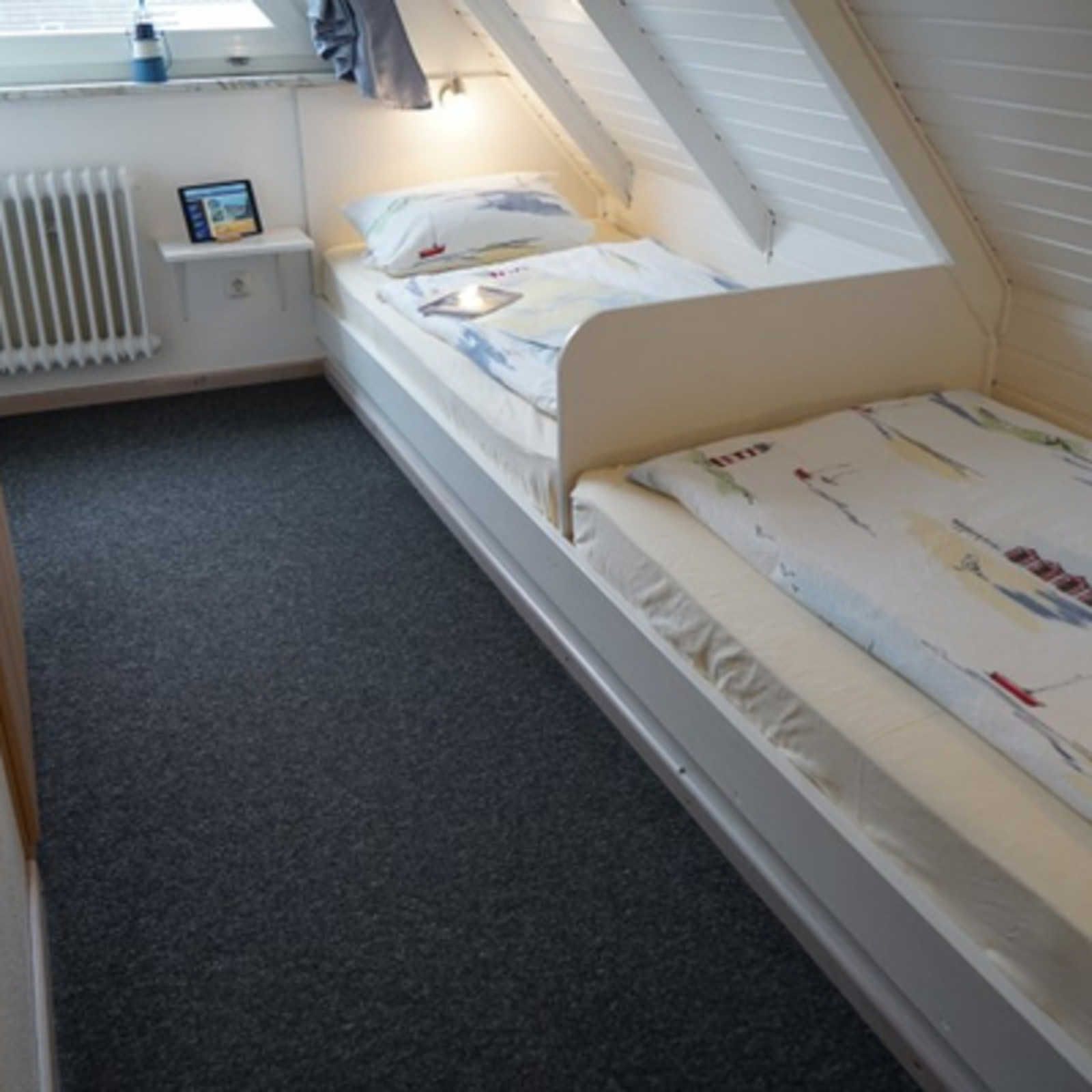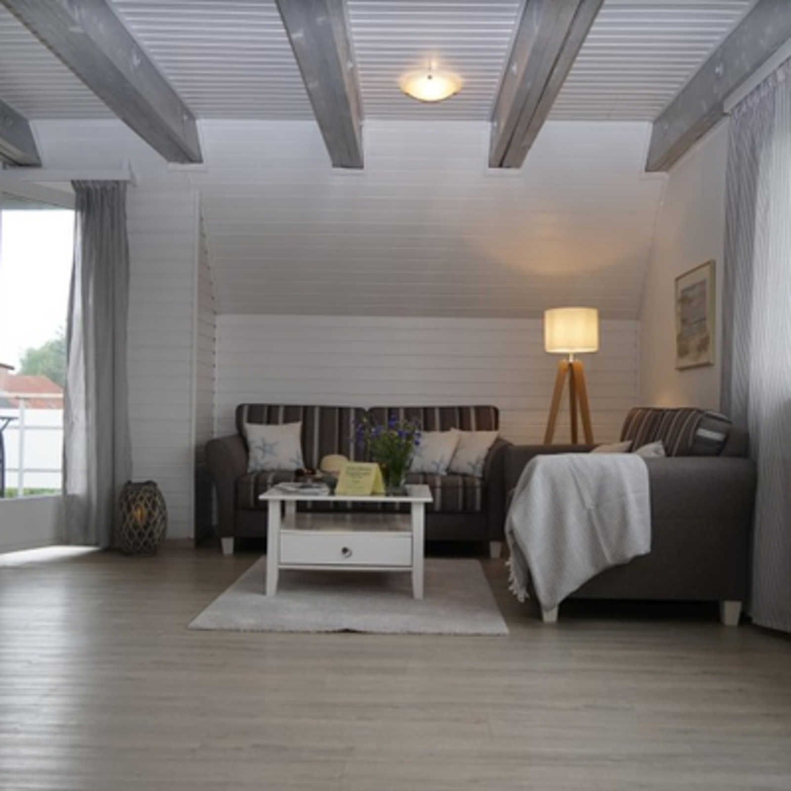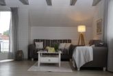 Die gemütliche, helle modern eingerichtete De lütte Stove befindet sich im OG des Ferienhauses Espenisstr. 4. Das Haus liegt 600 m von Schlei und einem Einkaufszentrum für den täglichen Bedarf entfernt. Die Wohnung bietet 60 qm Wohnfläche. Diese gliedern sich in einen großzügigen, offenen Wohnraum mit Essecke und moderner, voll ausgestatteter, Einbauküche, einschl. Spülmaschine, Backofen, Mikrowelle und Kaffeemsaschine. Duschbad / WC und einen schönen sonnigen Balkon mit Gartenmöbeln. Im Dachgeschoß befinden sich 2 Schlafzimmer mit je 2 Betten. Als Service sind die Betten bezogen, Handtücher und eine Grundausstattung Kosmetikartikel liegen bereit. Die Ferienwohnung ist zusätzlich mit einer Waschmaschine, W-LAN, Flachbildfernseher mit Kabel TV ausgestattet.