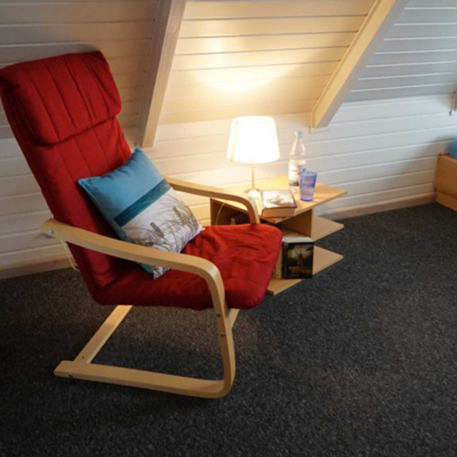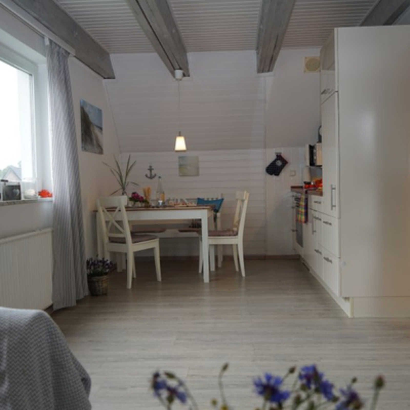 De lütte Stove ist eine helle und gemütlich eingerichtete Ferienwohnung in der ersten Etage und im Dachgeschoss eines Wohnhauses. Das Haus liegt 600 m von Schlei und einem Einkaufszentrum für den täglichen Bedarf entfernt. Die Wohnung bietet 60 qm Wohnfläche. Diese gliedern sich in einen offenen Wohnraum mit Essecke und Einbauküche mit Backofen und Spülmaschine , Duschbad/ WC und Balkon mit Gartenmöbeln. Im Dachgeschoß befinden sich 2 Schlafzimmer mit je 2 Betten.