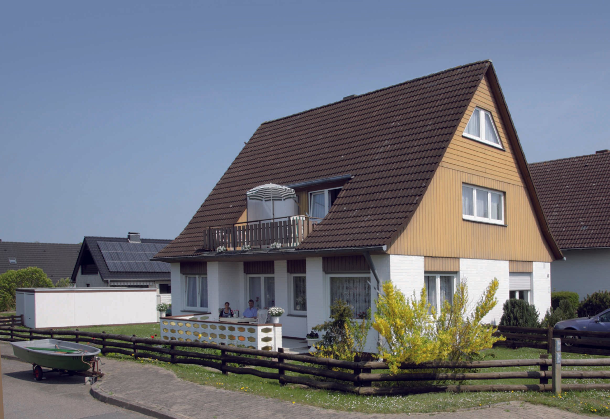 Die Sauna und das Solarium können in unserem Haus Espenisstraße 4, sowie ein Ruder- / Angelboot mit 5 PS Motor nach Absprache genutzt werden. Dort befindet sich auch eine Waschmaschine, die nach Absprache genutzt werden kann.