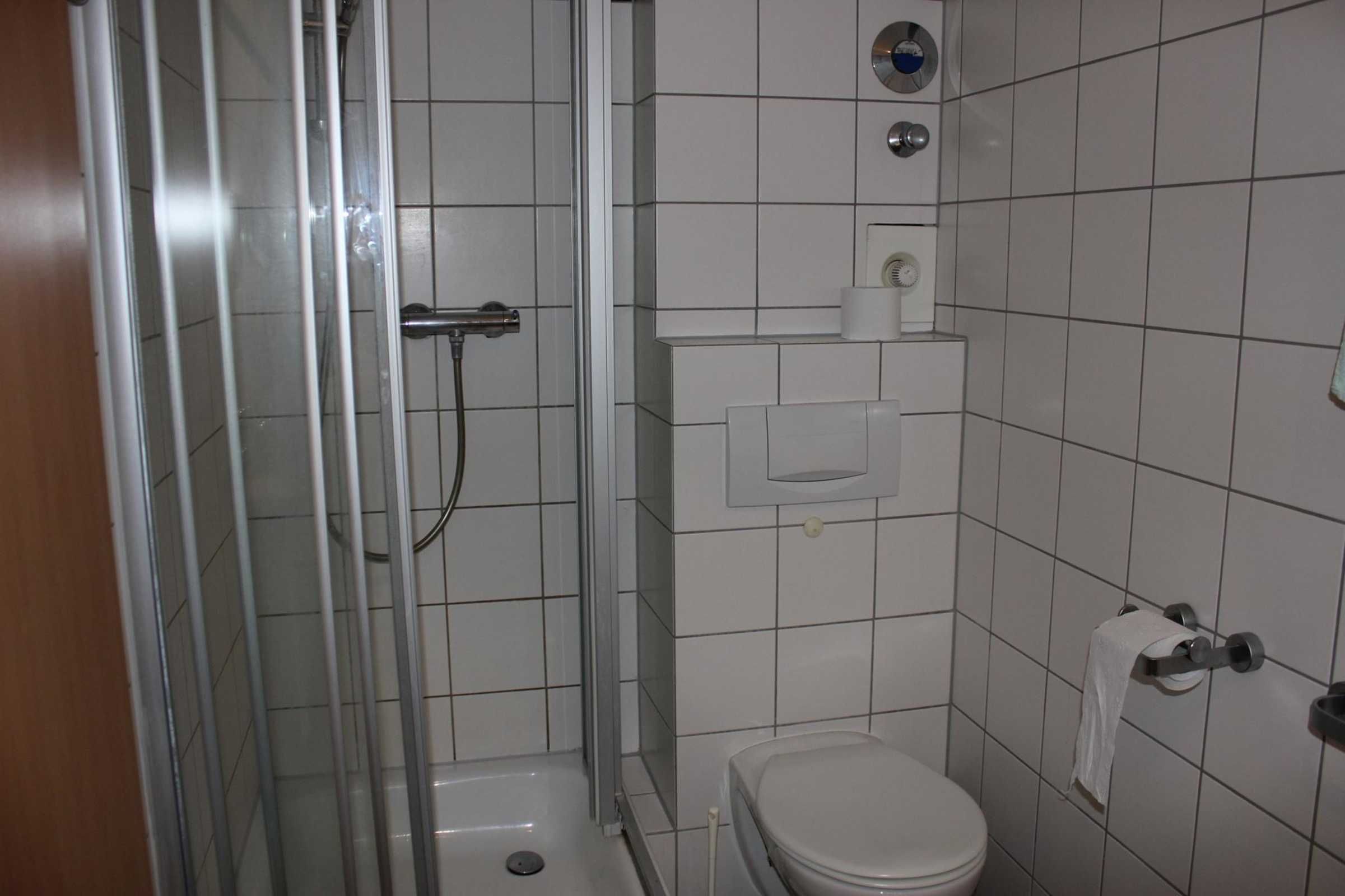 Im Dachgeschoss wurde ein kleines zweites Bad mit Dusche und WC eingebaut. Dort gibt es auch ein kleines Doppelbett (1,40 m).