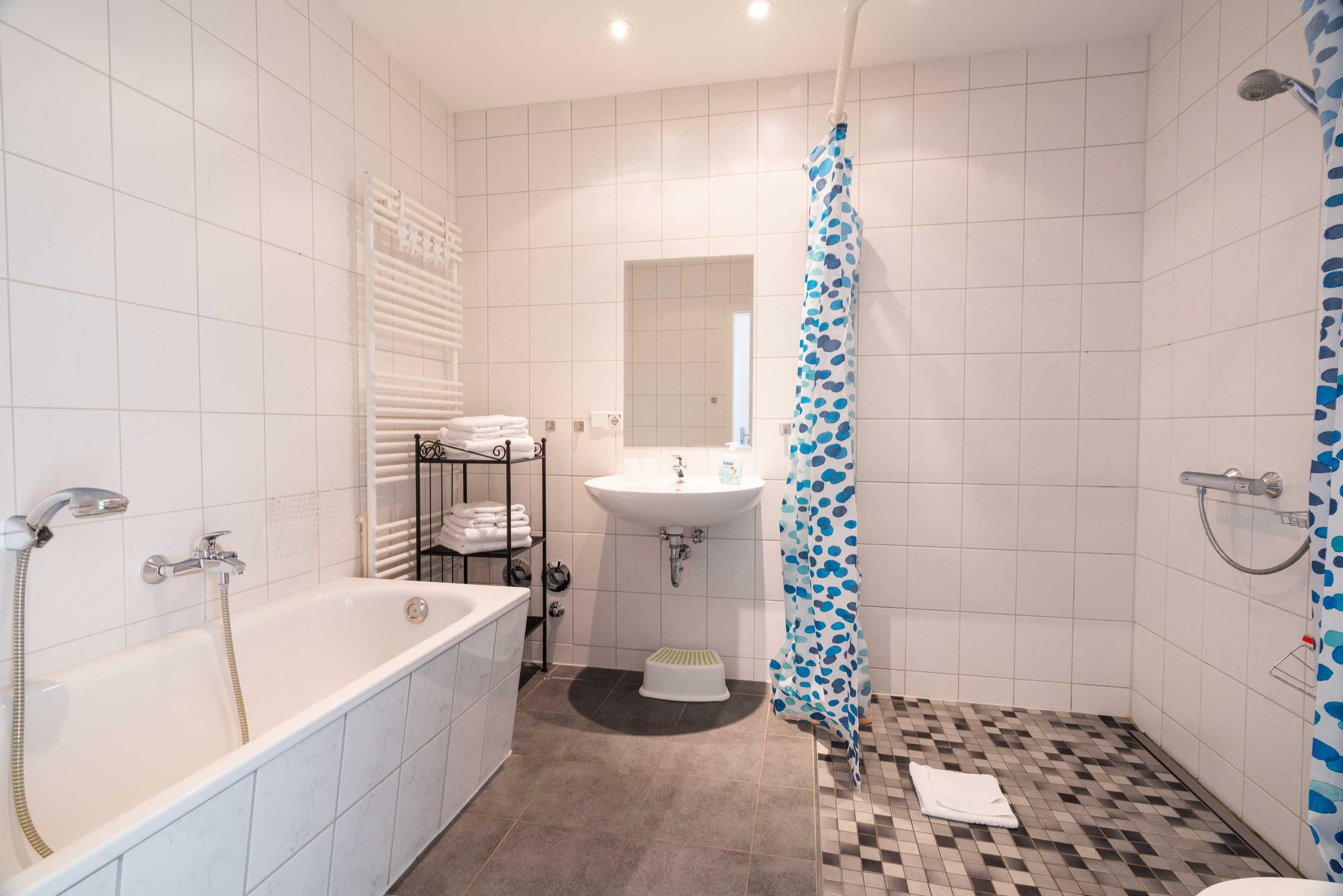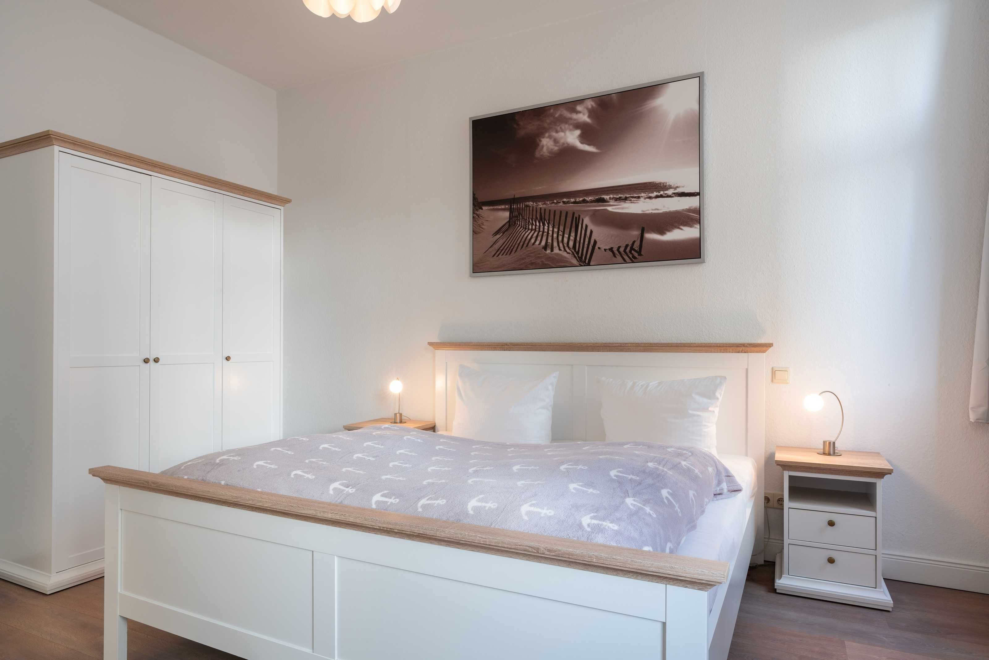 Ein Schlafzimmer ist mit einem Doppembett, das zweite Schlafzimmer mit zwei Einzelbetten ausgestattet.sind mit jeweils einen Einzelbett, das dritte Schlafzimmer ist mit einem Doppelbett ausgestattet. Bad mit Badewanne, ebenerdiger Dusche und WC. Eine kleine Sitzecke vor dem haus lädt zum Verweilen und Entspannen ein.
