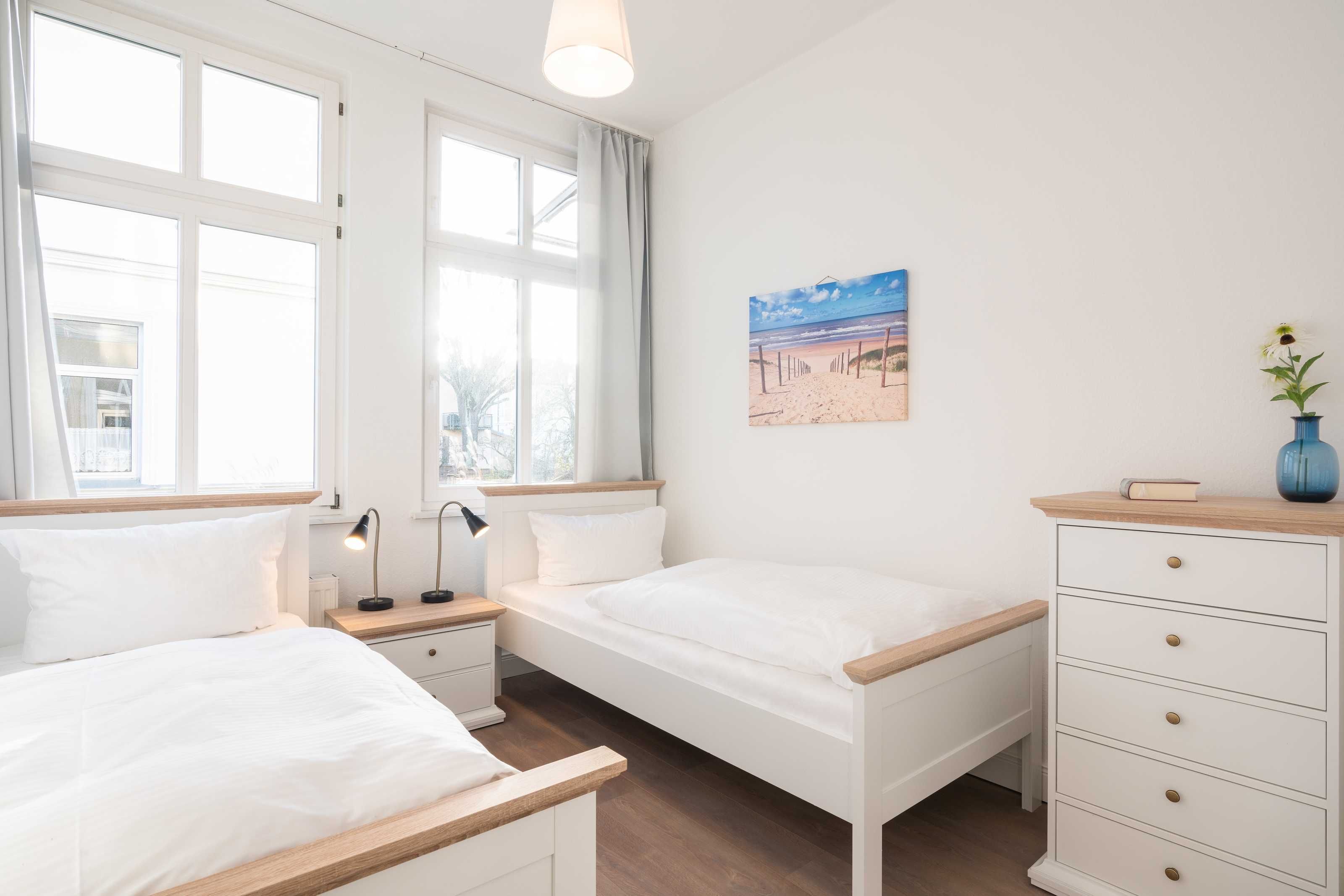 Die Wohnungen befinden sich in einer ruhigen Sackgasse mit direkt Zugang zur Strandpromenade, Geschäfte befinden sich in fußläufiger Entfernung.