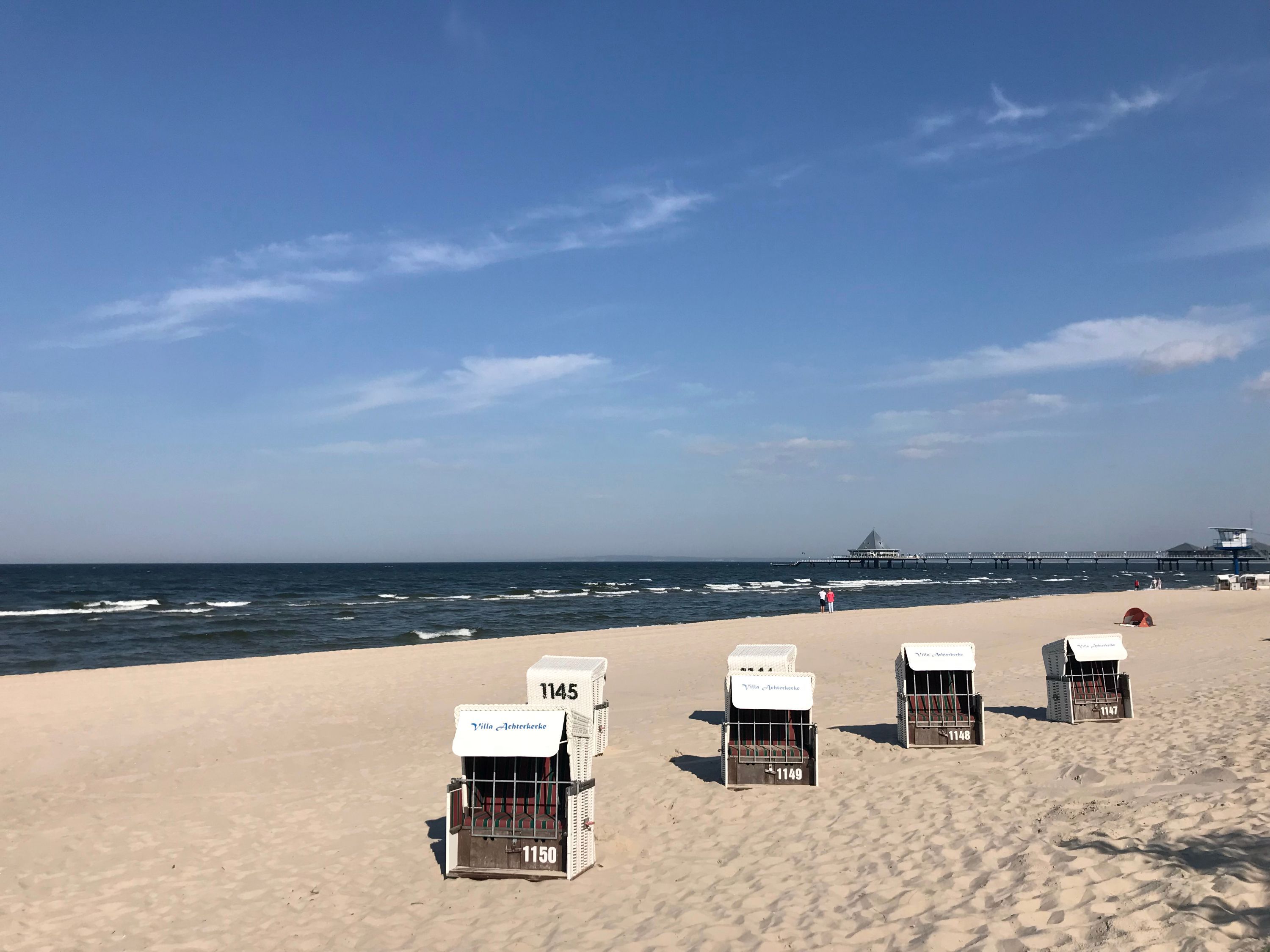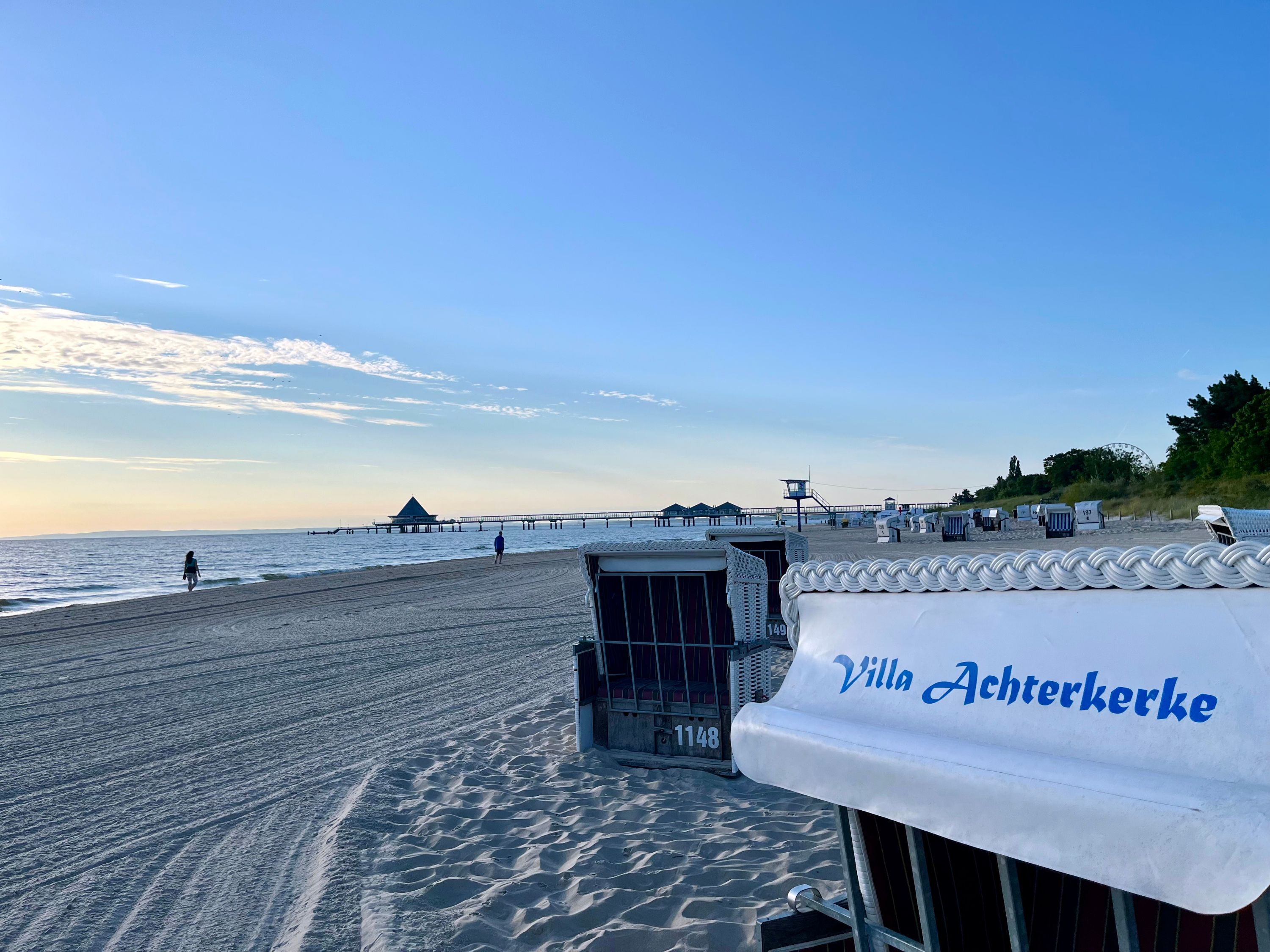 Auf dem Grundstück führt eine Treppe hinunter in den Kurpark und an den breiten, weißen Sandstrand. Hier bieten wir Ihnen von Mai bis September die Möglichkeit - noch vor Reiseantritt - einen unserer 4 Strandkörbe zu reservieren (70 €/Woche). Unser Strandabschnitt liegt etwas ruhiger, abseits vom quriligen Strandleben rund um die Seebrücke. Restaurants sowie Möglichkeiten zum Bummeln und Shoppen gibt es in der Kulmstraße und im wenige Schritte entfernten Ortszentrum.