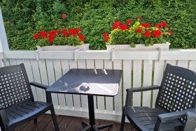 Genießen Sie die gepflegte, parkähnliche Außenanlage (Rasenflächen mit Sitzgruppe, Gartenbänken und Blumenschmuck) und entspannen Sie in unseren kostengünstigen Unterkünften, fernab vom Strandtrubel.