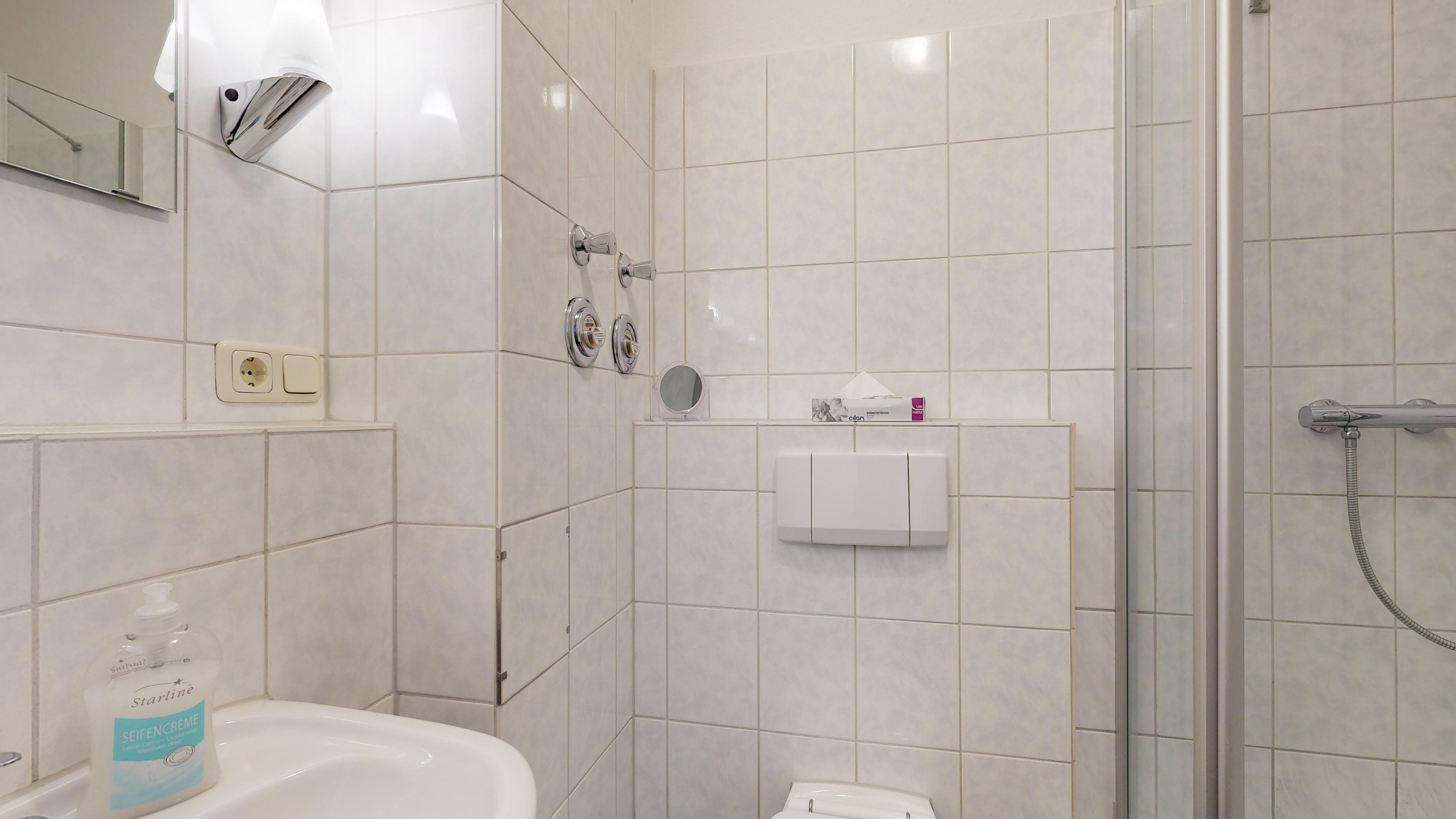 • Dusche (Tiefeinsteiger), WC, Haartrockner
