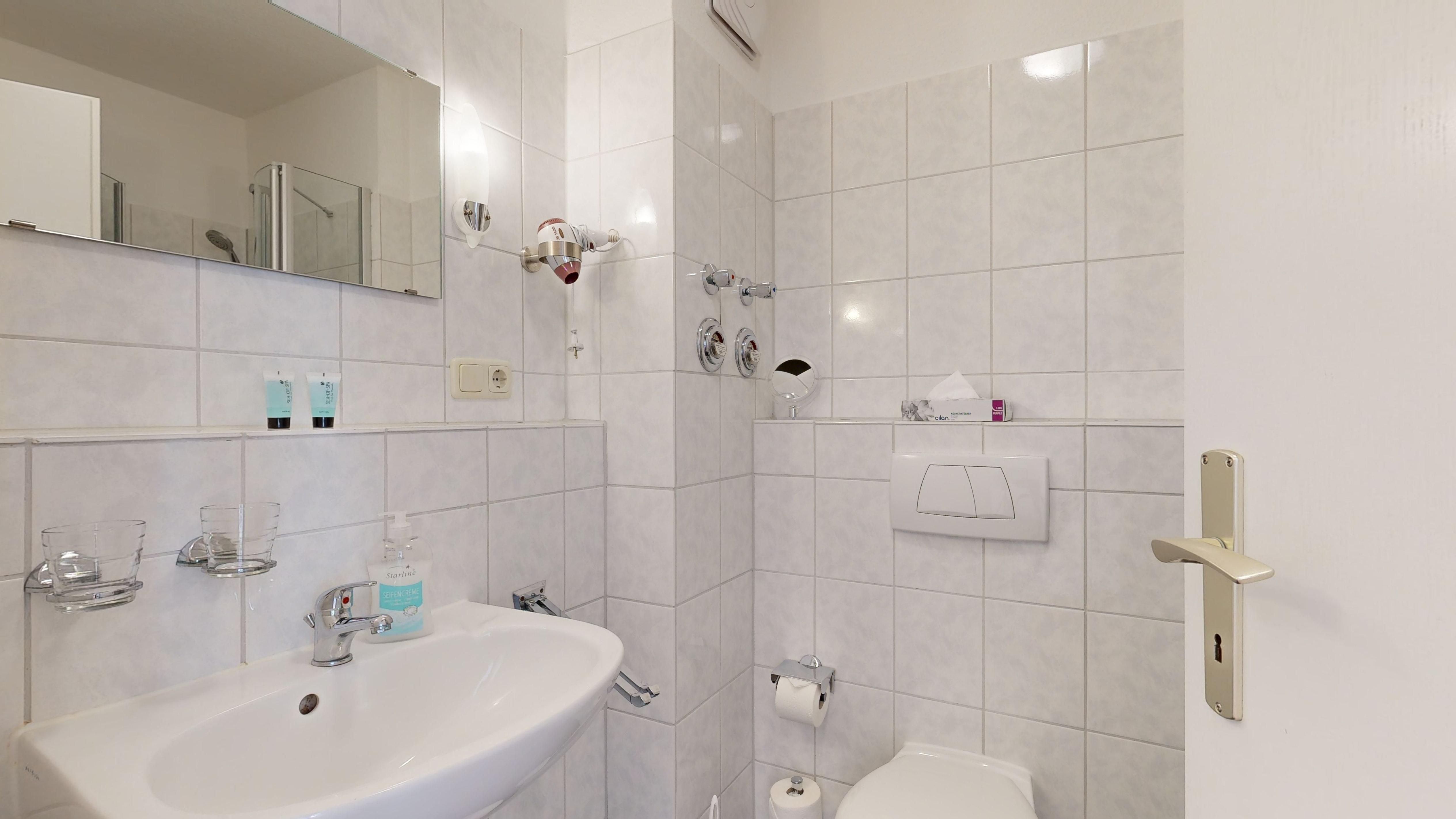 • Dusche (Tiefeinsteiger), WC, Haartrockner