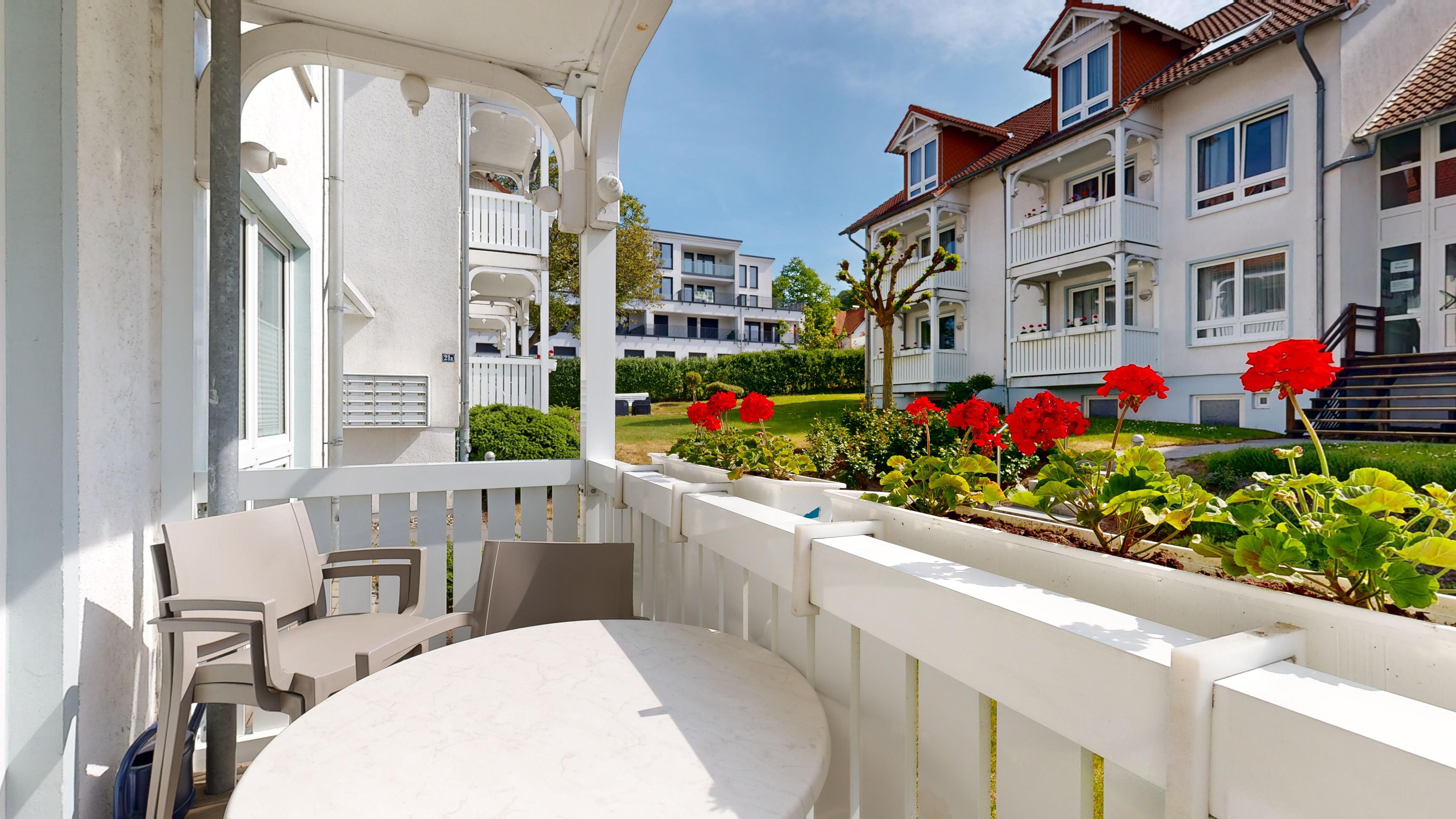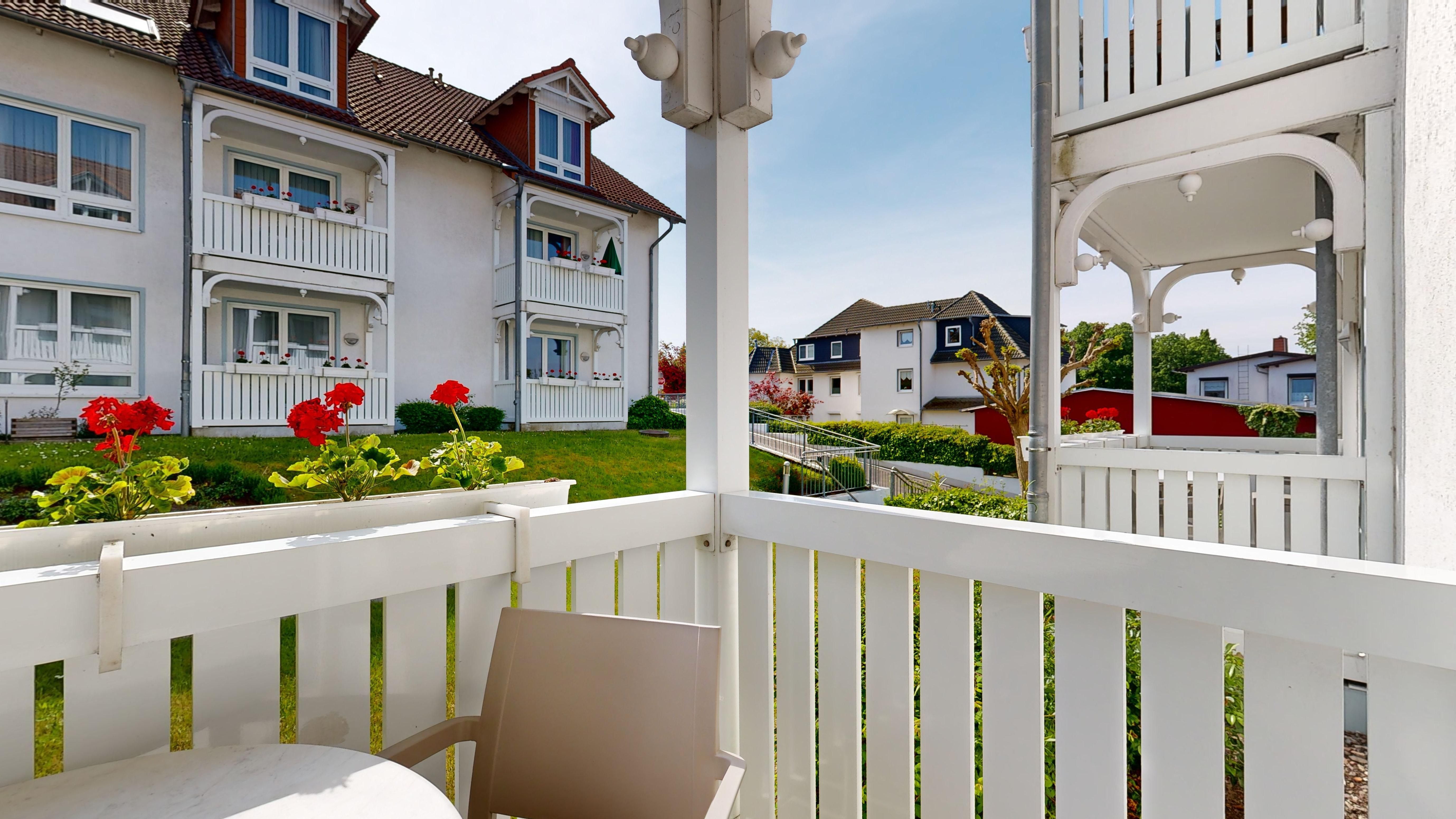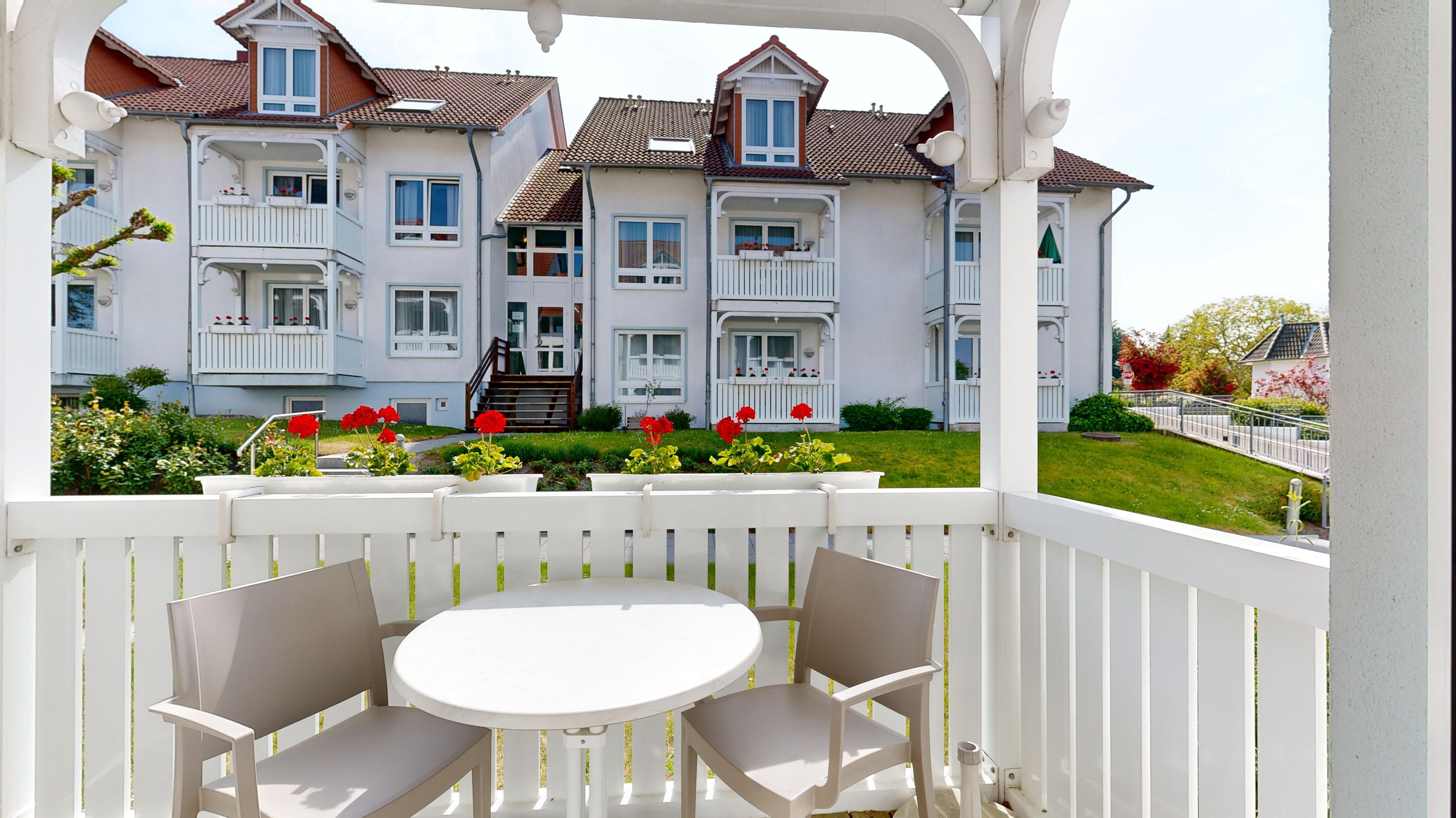 Genießen Sie die gepflegte, parkähnliche Außenanlage (Rasenflächen mit Sitzgruppe, Gartenbänken und Blumenschmuck) und entspannen Sie in unseren kostengünstigen Unterkünften, fernab vom Strandtrubel.