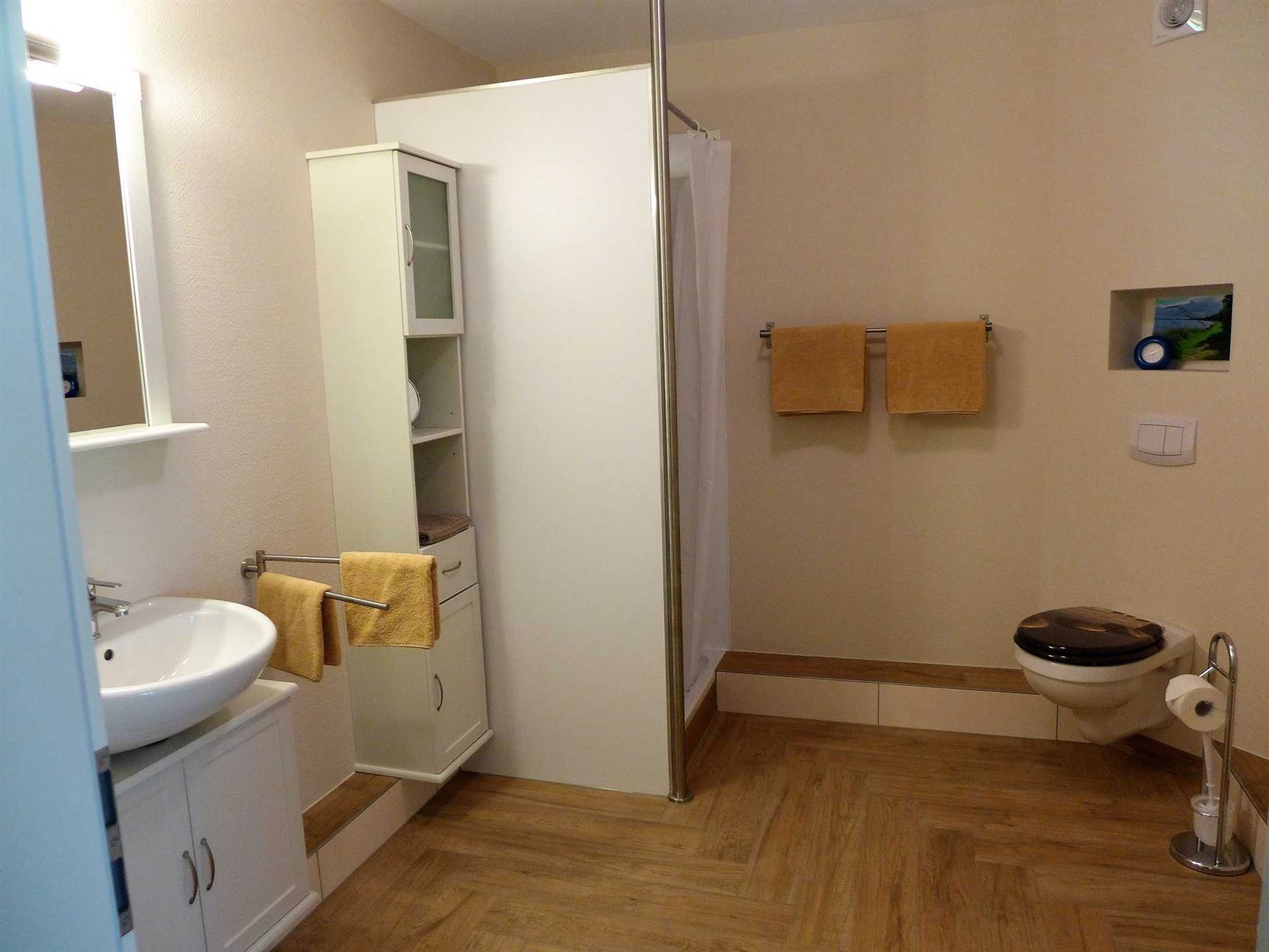 Die Einbauküche ist ausgestattet mit einem Geschirrspüler, Kühlschrank mit Gefrierfach, Ceranfeld mit 4 Kochstellen, Backofen, Kaffeemaschine , Mikrowelle, Wasserkocher und Toaster. Ein separates Schlafzimmer mit Doppelbett in Komforthöhe (180 x 200), Bad mit Dusche und WC.