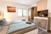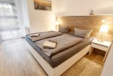 Die beiden Schlafzimmer sind mit Doppelbett (180x200; getrennte Matratzen, einzeln stellbar), Smart-TV, Kleiderschrank und Sessel ausgestattet. Die Fenster sind mit elektrischen Außenjalousien verdunkelbar und mit Insektenschutz versehen.