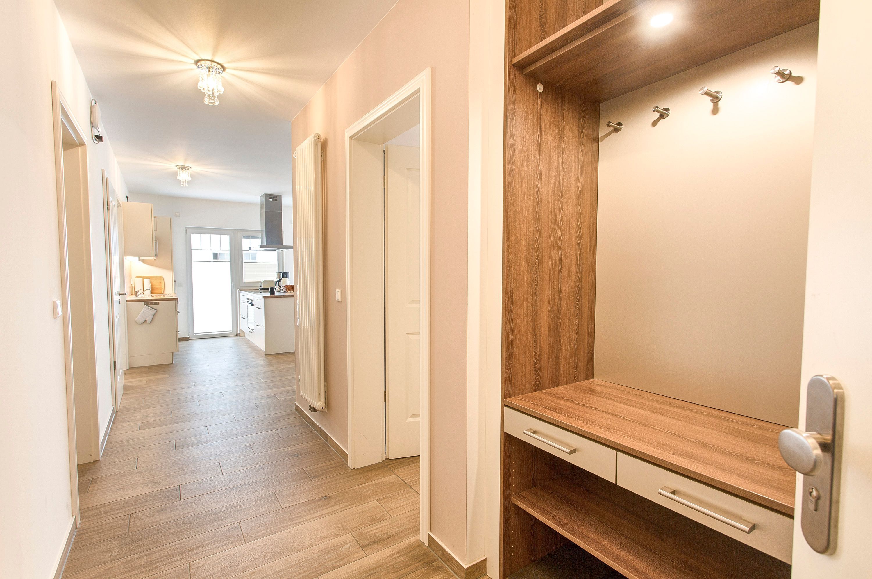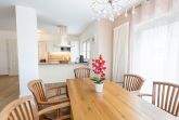 Die 92m² große Ferienwohnung Greifswalder Oie befindet sich im Erdgeschoss der Villa Vier Inselblick. Sie verfügt über eine große Wohnküche, 2 Schlafzimmer, 2 Bäder, Kamin, Sauna, Waschmaschine und Terrasse.