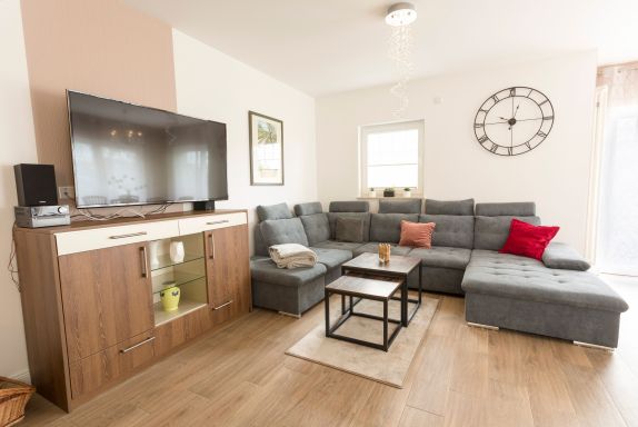 Die 92m² große Ferienwohnung Ruden befindet sich im Erdgeschoss der Villa Vier Inselblick. Sie verfügt über eine große Wohnküche, 2 Schlafzimmer, 2 Bäder, Kamin, Sauna, Waschtrockner und Terrasse.